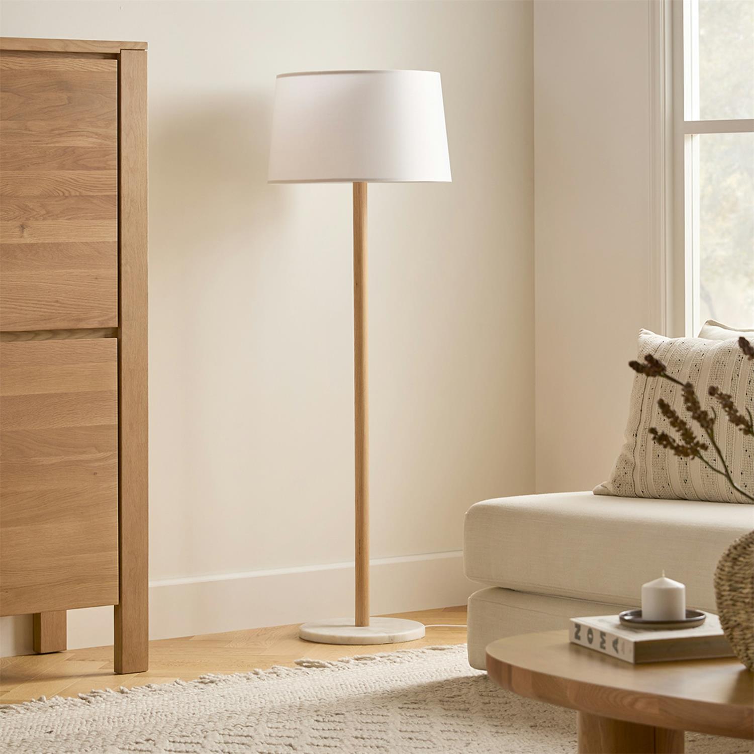 Solid oak base / Premium linen shade
