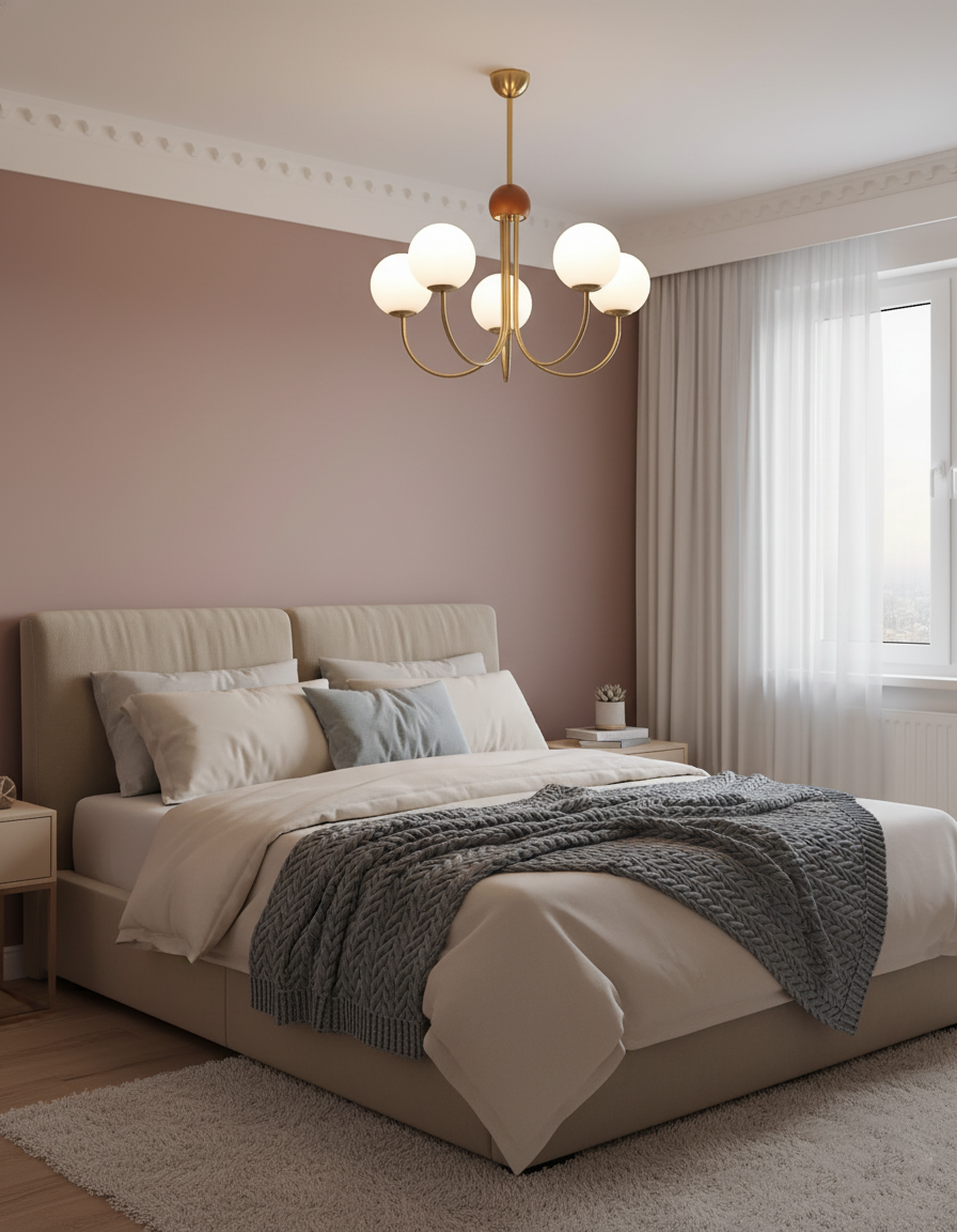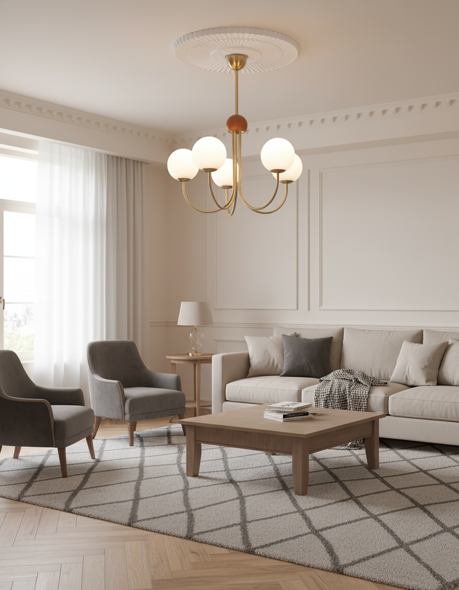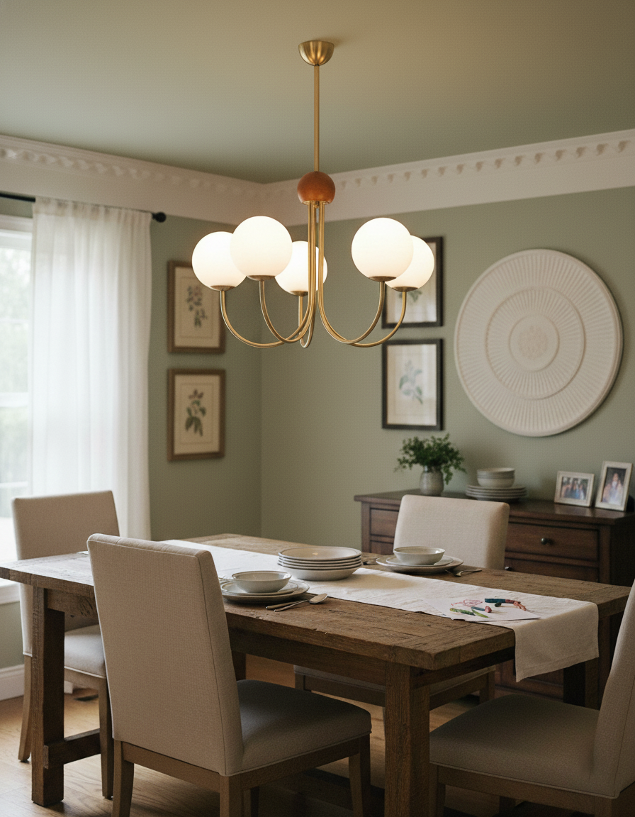 Crafted with precision, the Valentina Chandelier is designed to be not just a source of light but also a centerpiece that draws the eye. It balances form and function with its durable construction and compatibility with energy-efficient bulbs, ensuring that this piece is as practical as it is beautiful. The combination of warm metal tones and the glow from the glass spheres creates a welcoming atmosphere in dining rooms, entrance halls, or over a grand staircase.