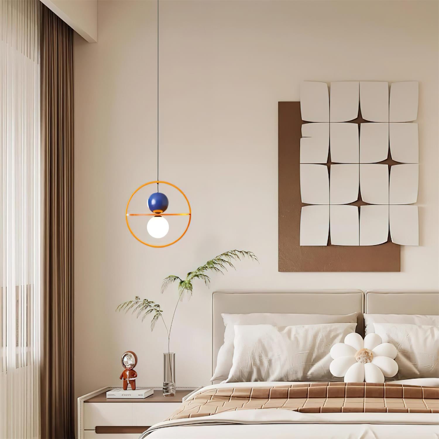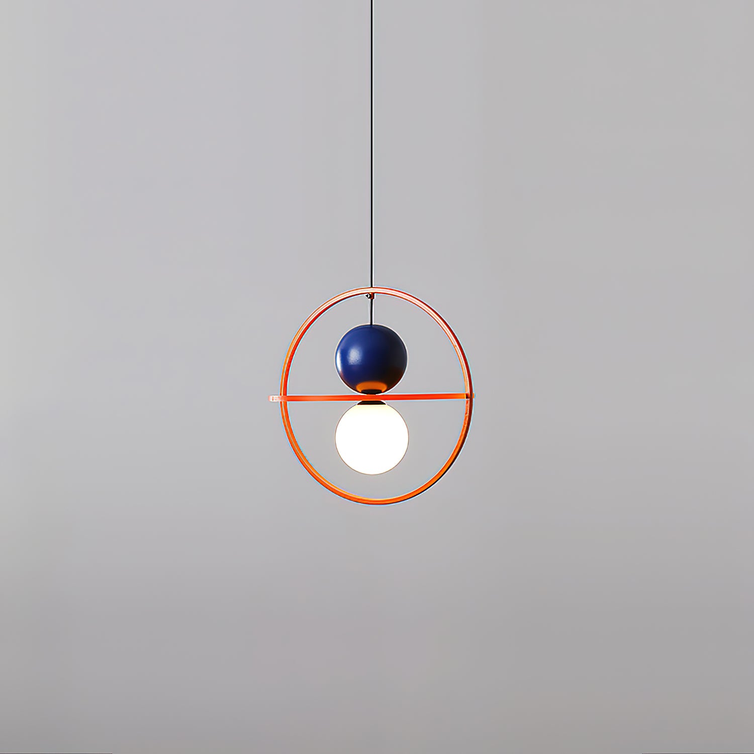 The Halo Duo Pendant Lamp transforms simple geometry into a poetic statement. Encased in a perfect circle, two spherical elements—one aglow and one glossy—balance like celestial bodies in orbit. The contrast of matte and shine, color and light, adds a sculptural elegance ideal for dining rooms, foyers, or creative interiors seeking a modern focal point with an artistic edge.