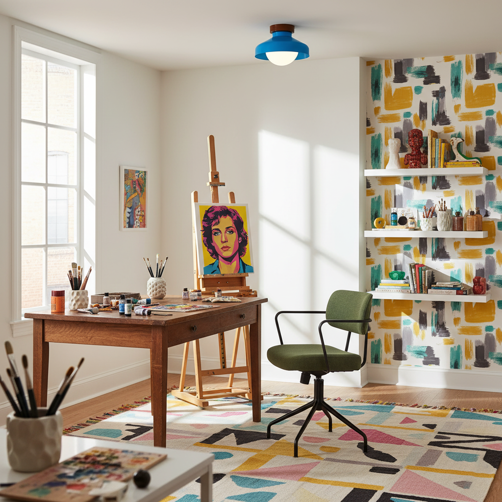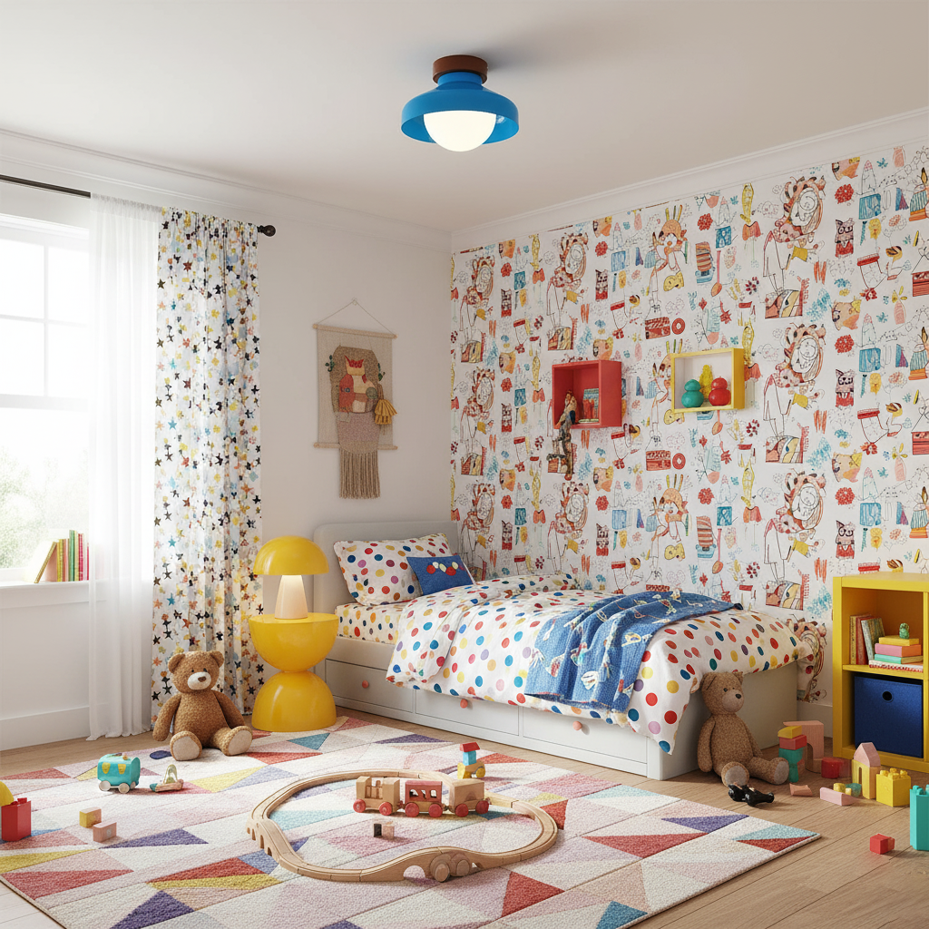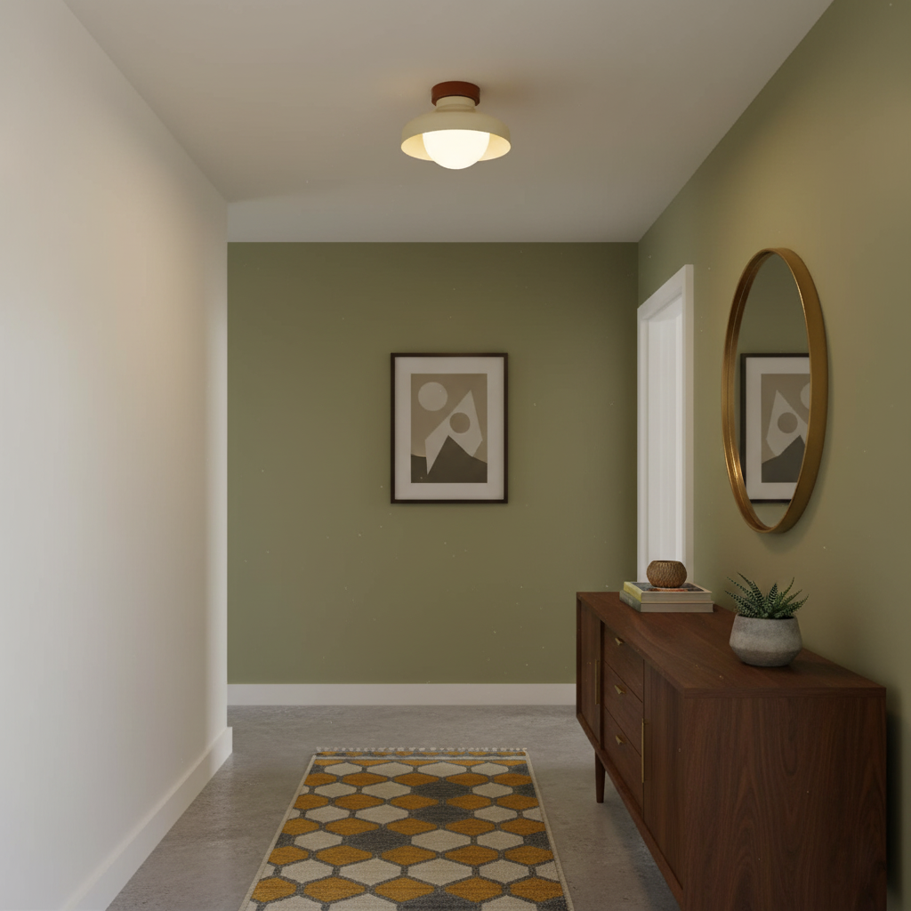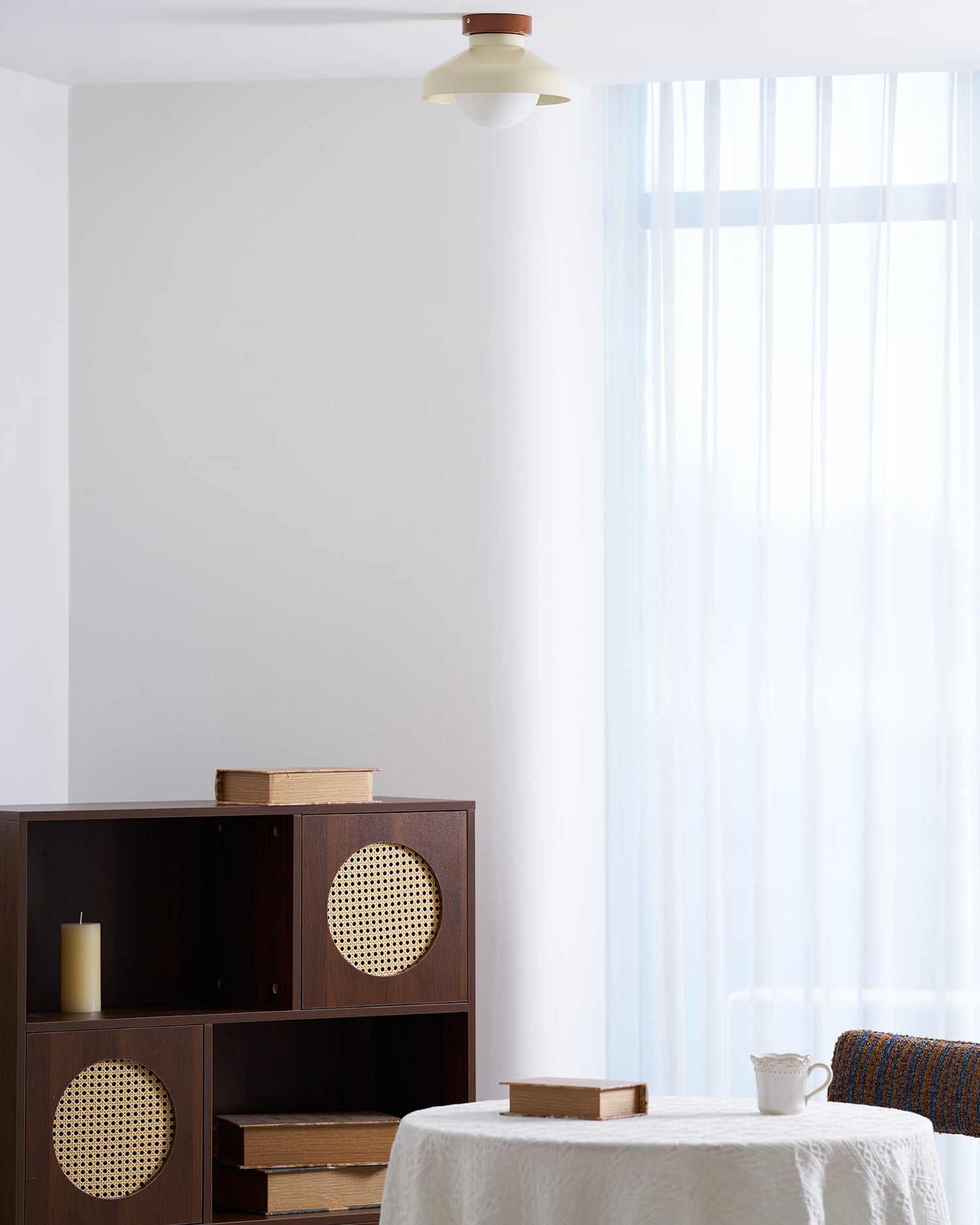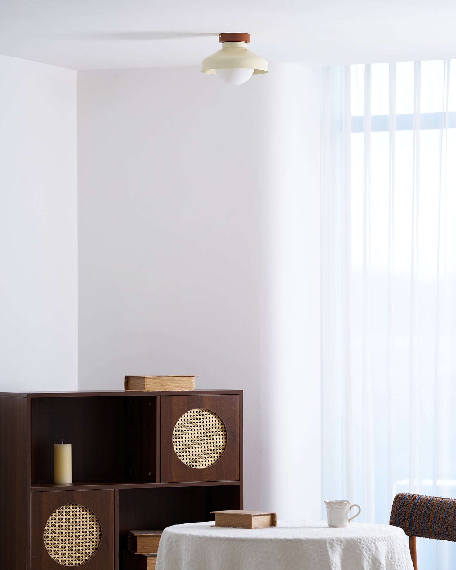 This Calico Ceiling Light features a minimalist yet modern design, perfectly blending practicality with an artistic touch. The leather trim at the top brings a warm, natural feel to the space, while the choice of vibrant colors adds vitality to any room. Whether it's for decorating a home kitchen or a contemporary office, this light provides soft and even illumination, creating a comfortable environment.