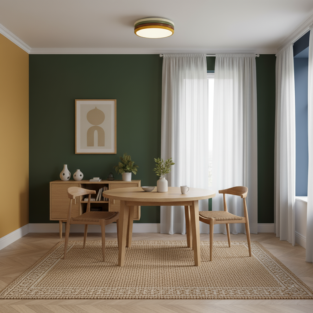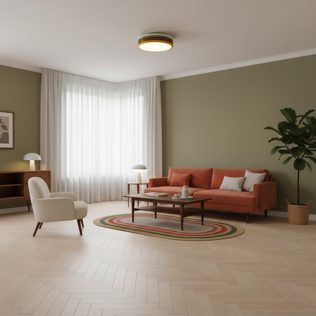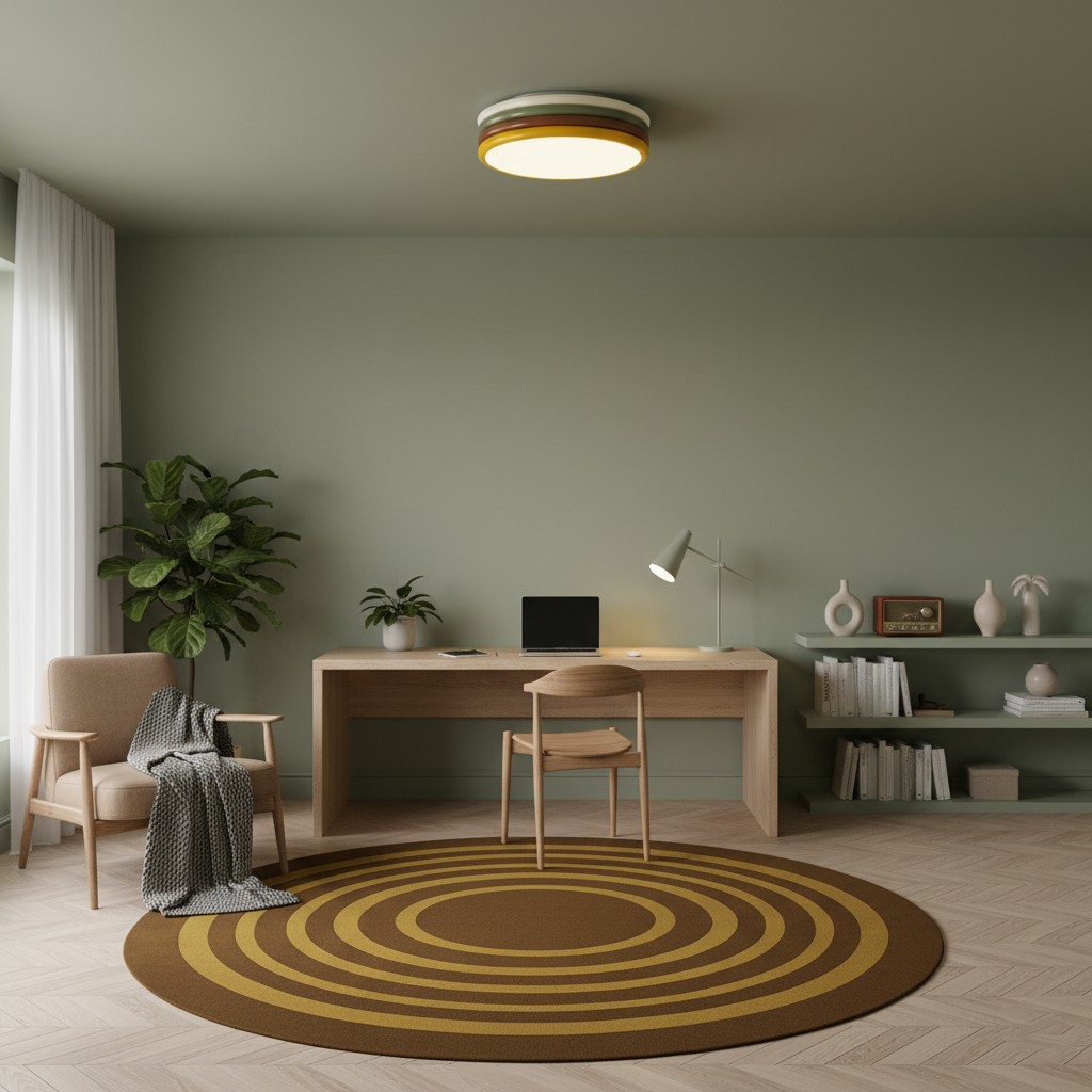 Inspired by the classic layers of a hamburger, this ceiling lamp combines quality metals in shades of green, mustard yellow, and brown. This playful yet sophisticated design adds a dash of culinary charm to any room. The unique layering not only reflects a lighthearted aesthetic but also enhances the lamp's functionality, casting a warm, inviting glow. Perfect for kitchen lighting or any space that benefits from a touch of whimsy and a splash of color.