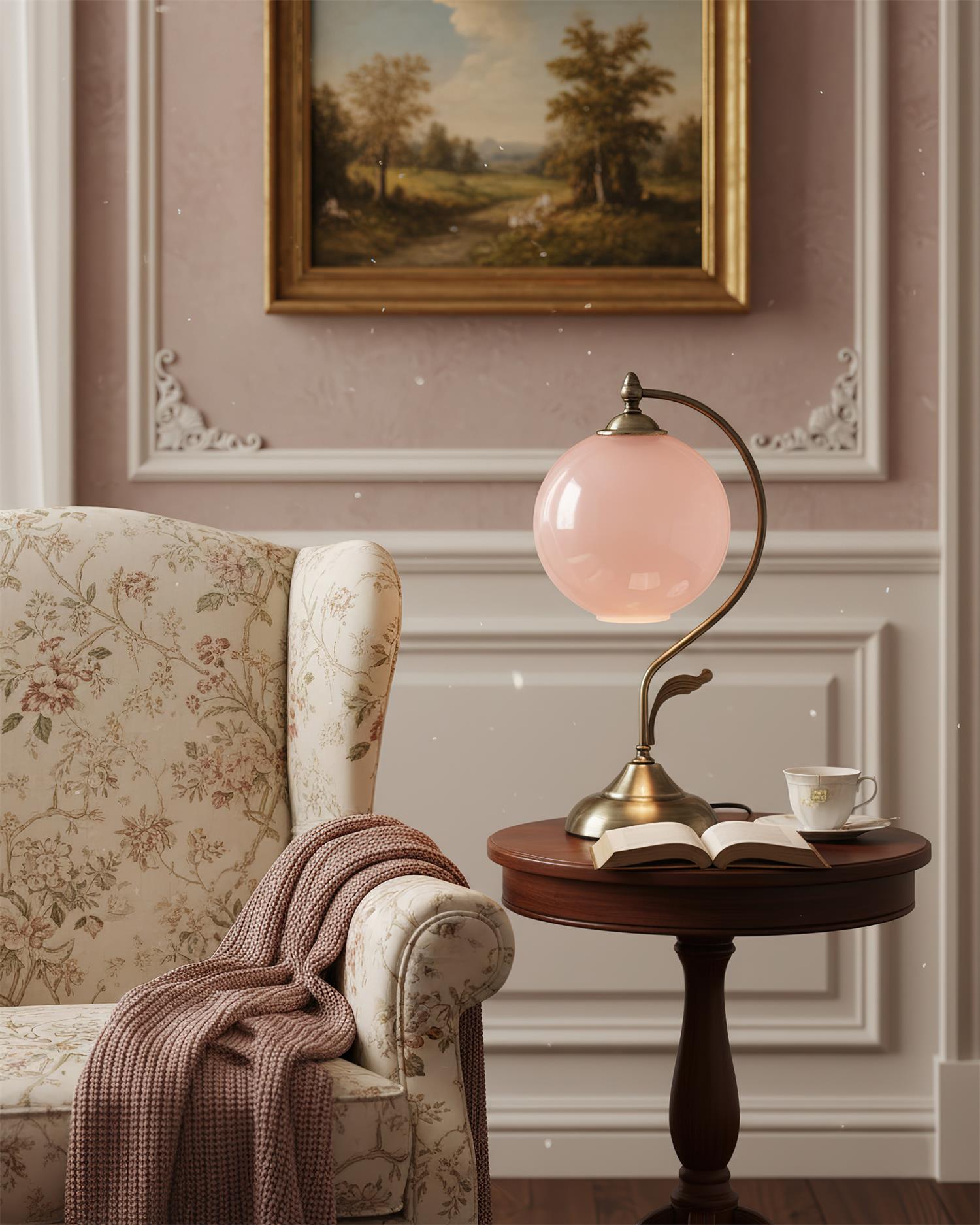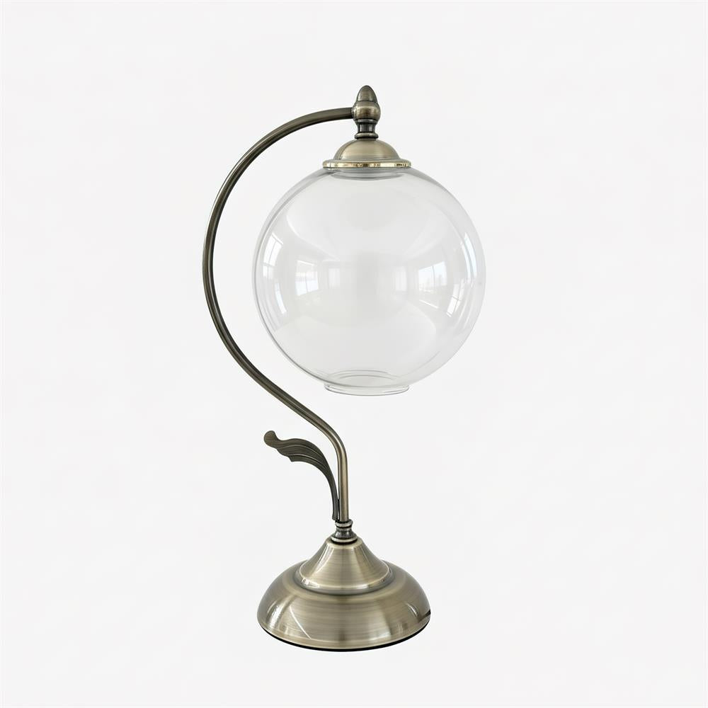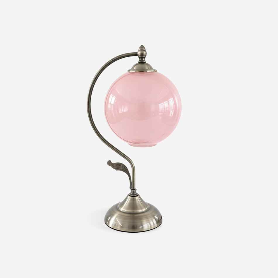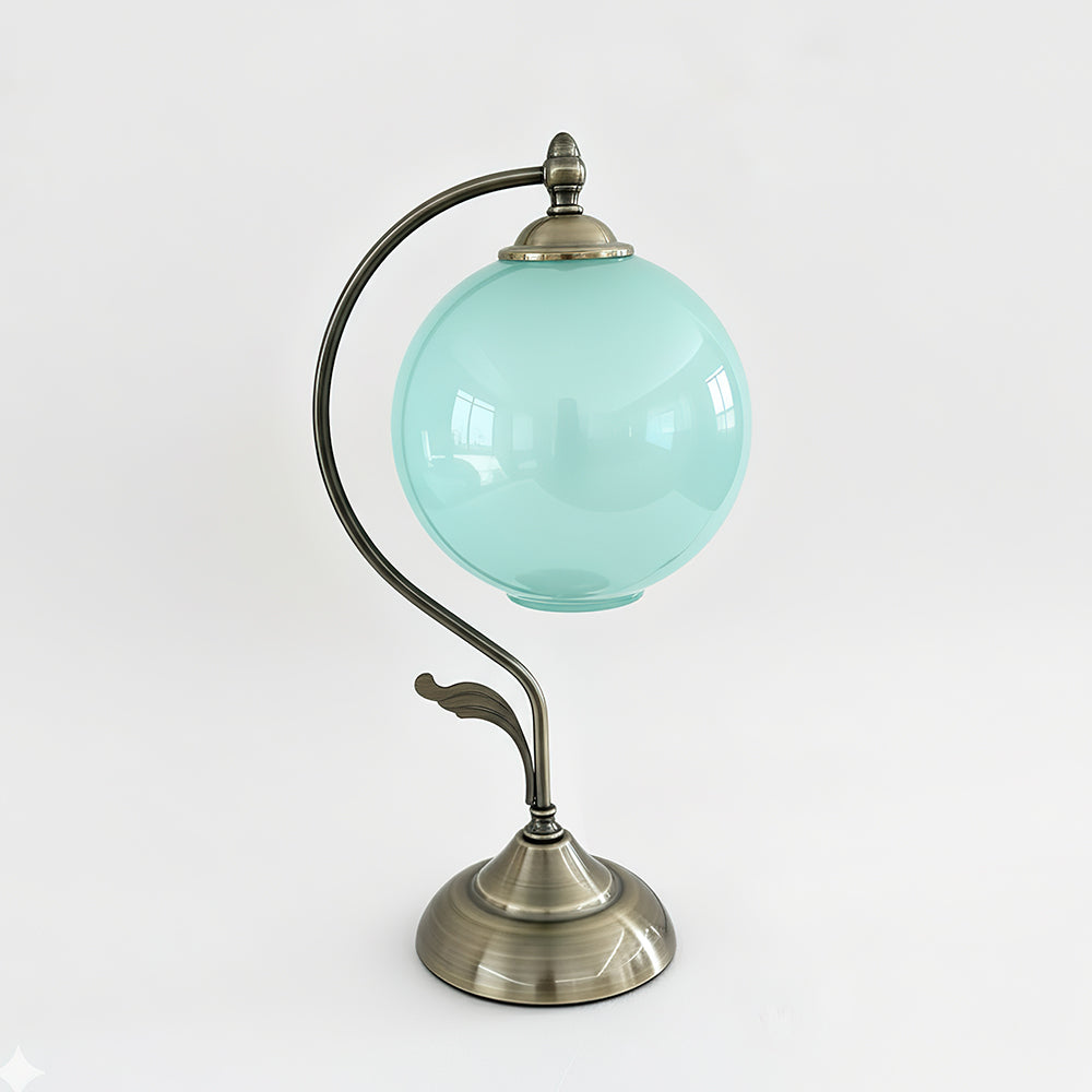 The Lunafleur Table Lamp balances vintage charm with sculptural elegance. Its arched brass frame curves gracefully around a luminous glass globe, evoking the image of a moon cradled in a Brass stem. Available in clear, aqua, and blush hues, the orb diffuses a soft, celestial glow that enhances both classic and contemporary interiors. A refined statement piece that transforms everyday lighting into an artful display of light and form.