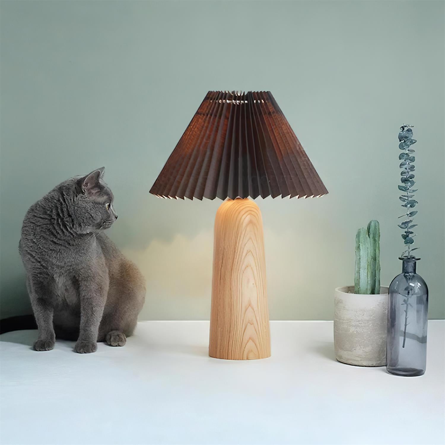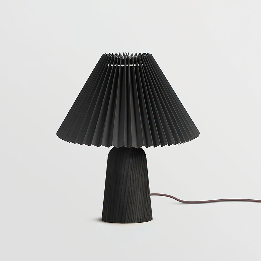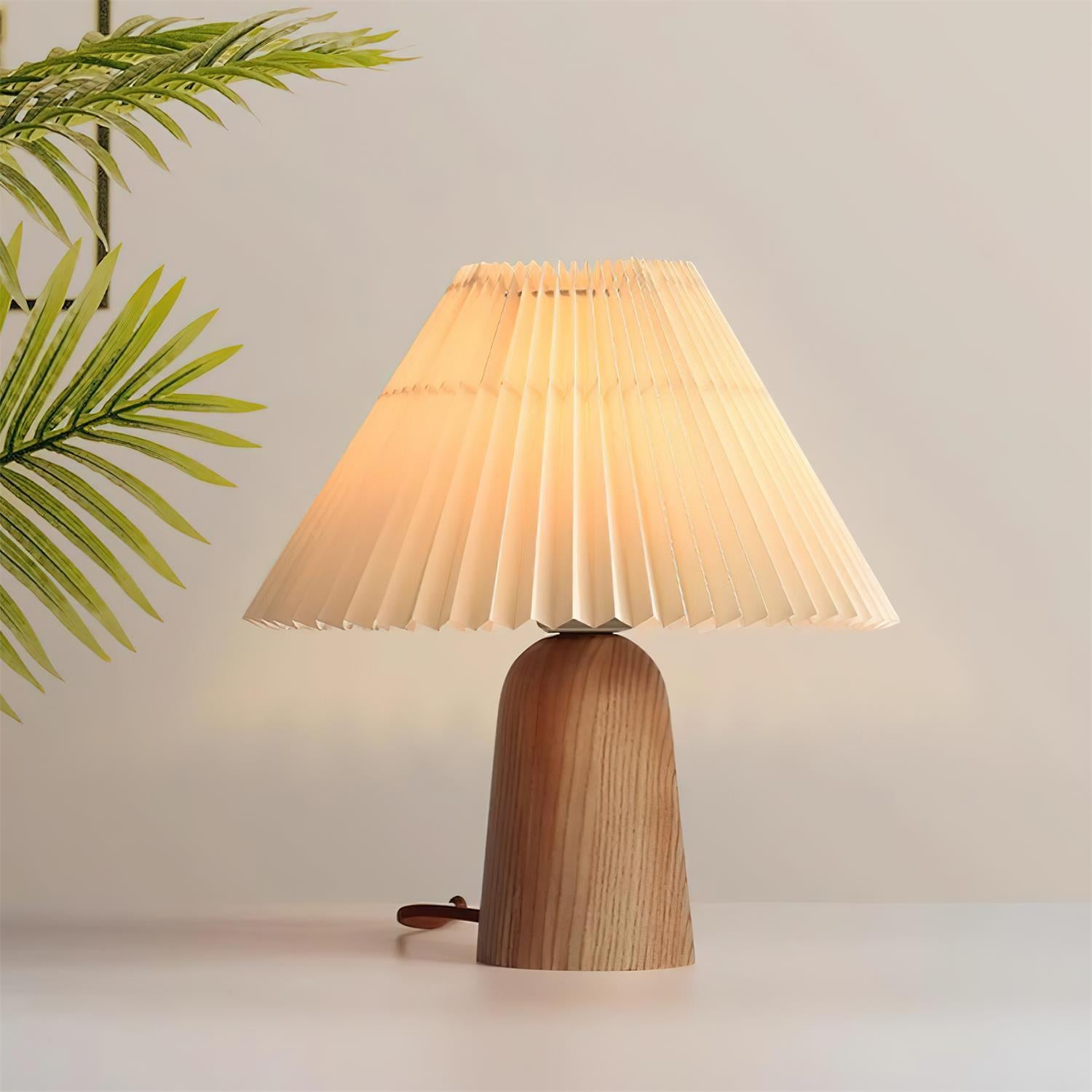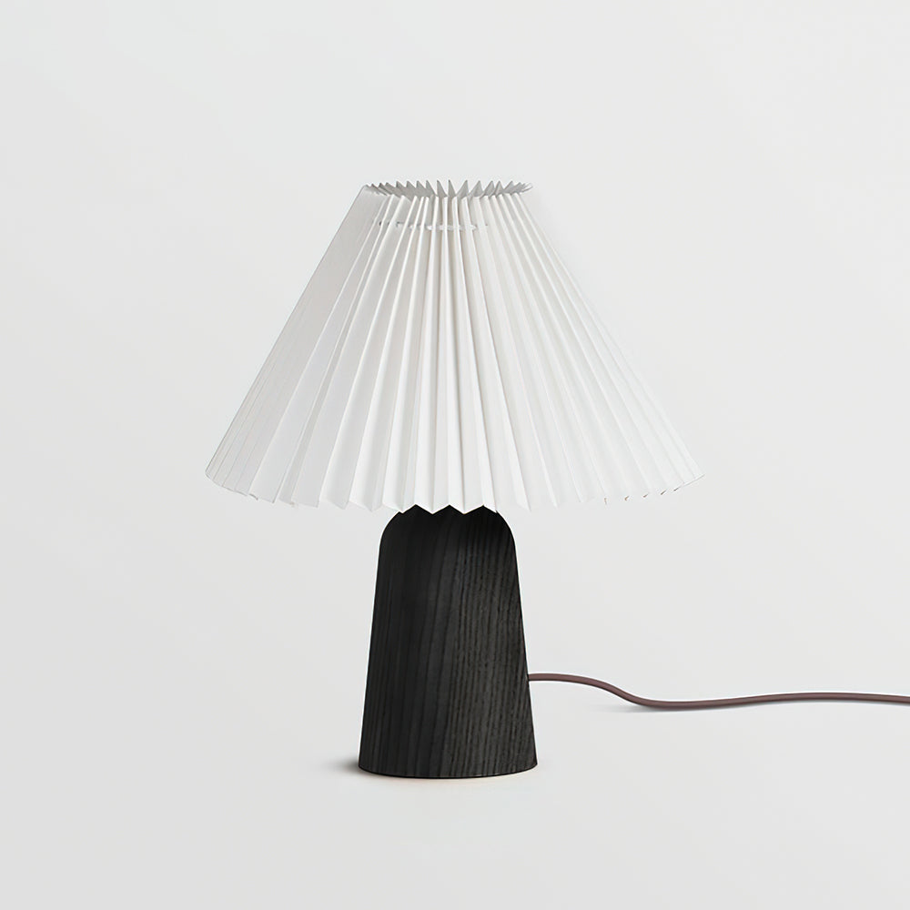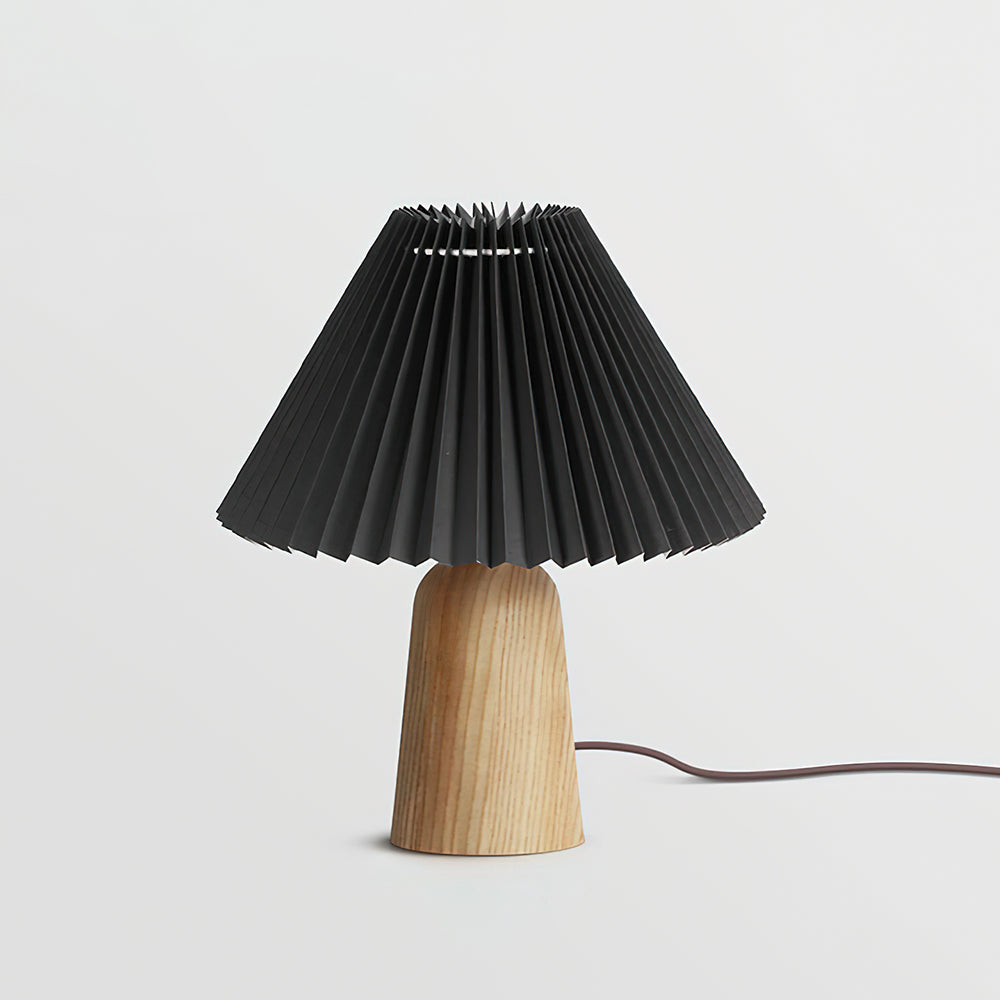 The Sylvan Pleat Table Lamp combines natural elegance with contemporary design. The lamp's pleated white shade, crafted from crisp, textured paper, creates a soft and inviting glow. Paired with a sleek, wooden base, its minimalistic design makes it a perfect addition to any modern or rustic-inspired space. The cylindrical wooden base, with its warm, organic tones, contrasts beautifully with the bright shade, offering a balance of light and structure.