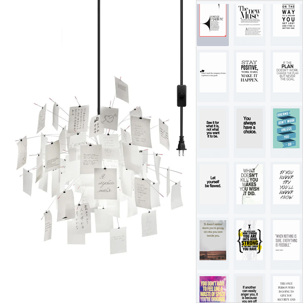 Introducing the "Mina Paper Chandelier" from Docos, where whimsy and creativity intertwine in an enchanting display of light and art. Each carefully curated piece floats ethereally in your space, featuring a myriad of playful illustrations—from vibrant botanicals to abstract designs—etched on lightweight, translucent paper. Ideal for brightening a creative studio or adding a unique touch to a modern living room, the Mina Paper Chandelier promises to transform any environment into a haven of artistic expression.