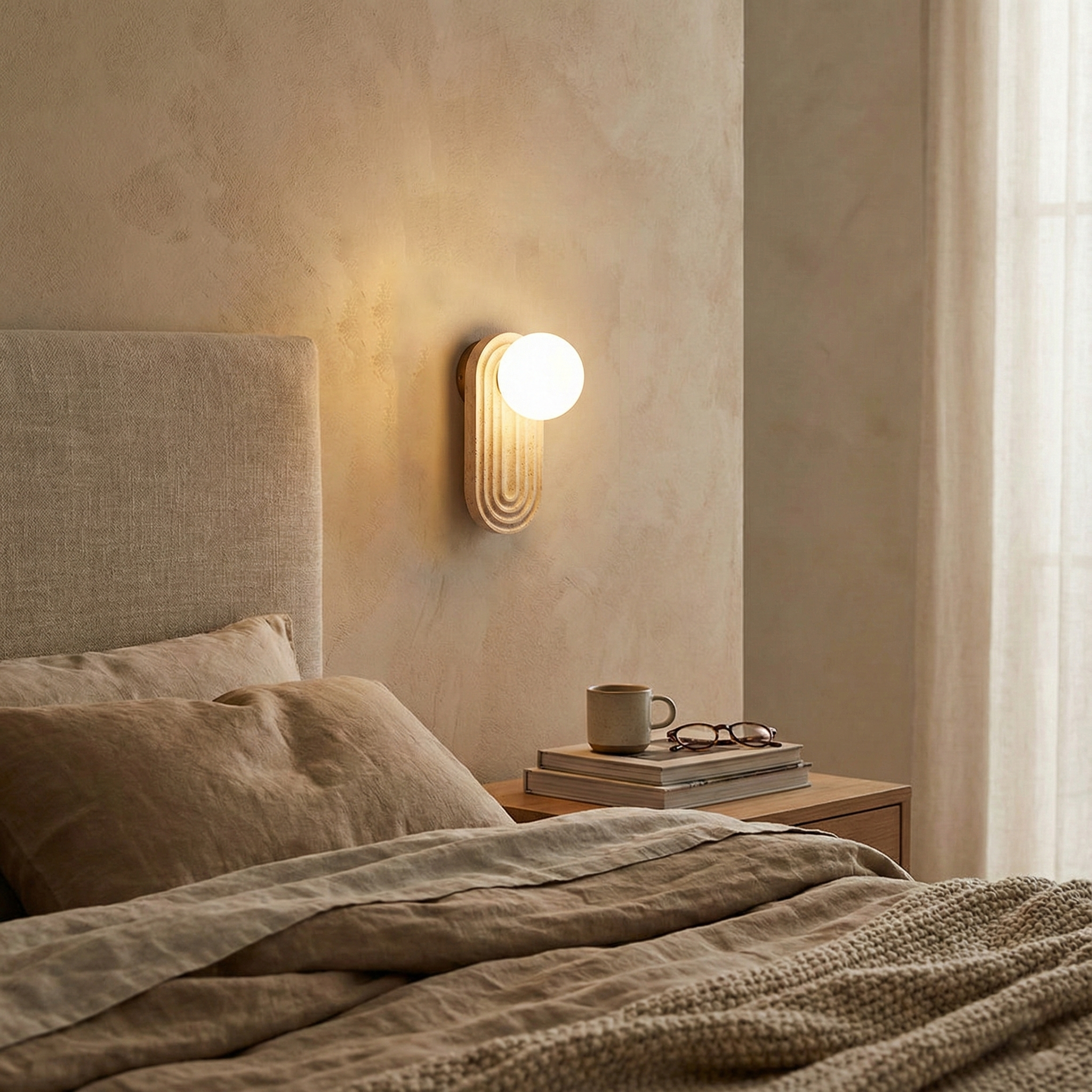 Presenting the Pearla Wall Lamp – a design that perfectly combines minimalist beauty with natural textures. The intricately carved stone-textured base has a layered, refined softness, reminiscent of the rings of nature extending across the wall. The soft, glowing orb at the top emits a warm and even light. Whether in a modern setting or a vintage-inspired room, the Pearla Wall Lamp brings a unique artistic charm, allowing every detail to exude a distinctive elegance.