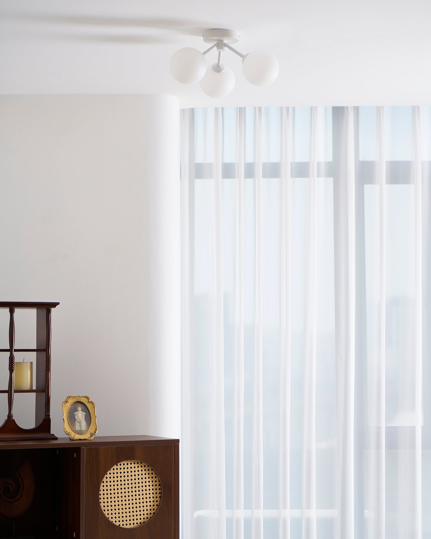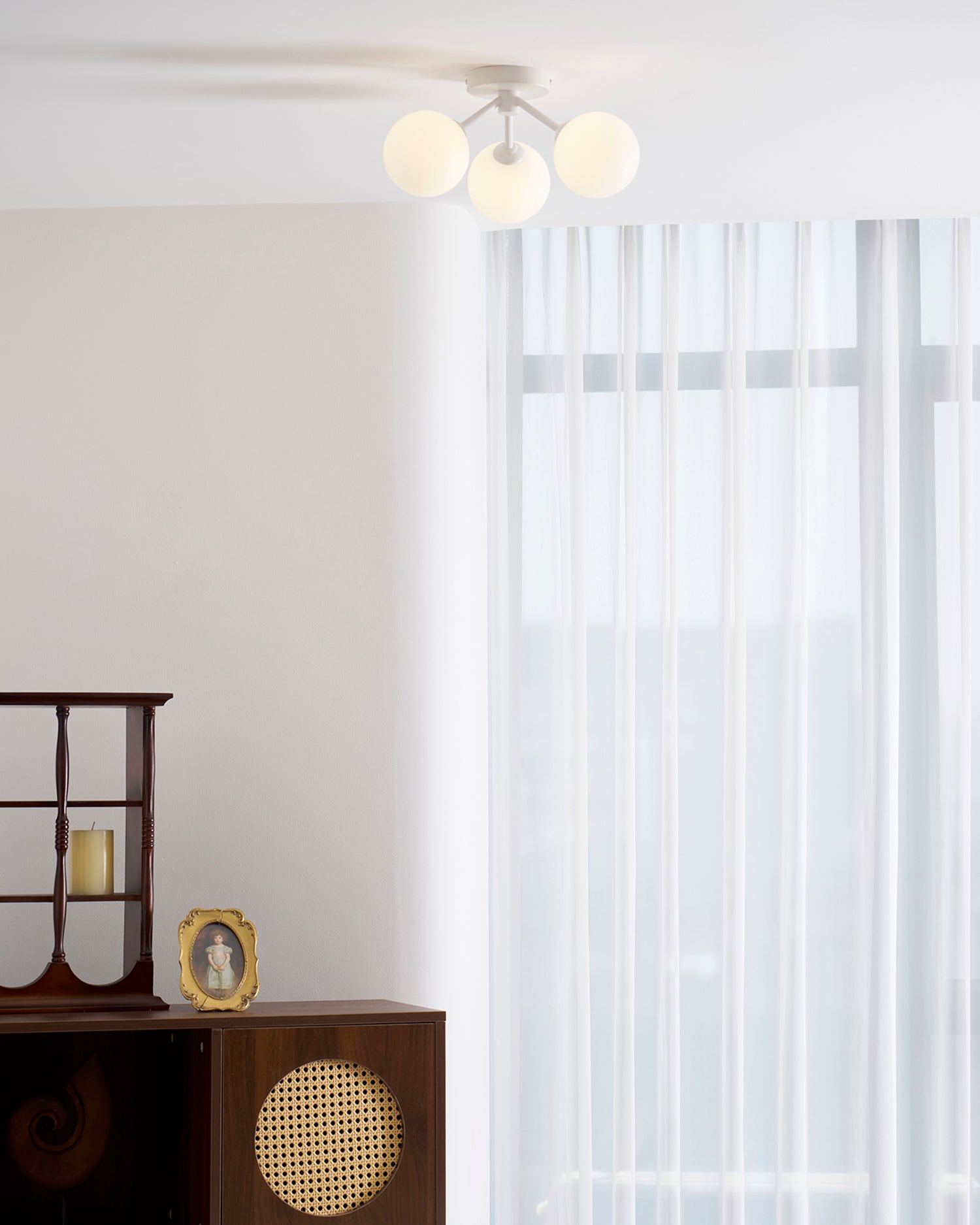 يعد مصباح السقف Lorelai تحفة فنية في تصميم الإضاءة الذي يمزج بشكل مثالي بين الأداء الوظيفي والجمال الجمالي. تُعد وحدة الإضاءة "Magic Bean" ثلاثية الرؤوس خيارًا مثاليًا للمداخل والبهو، حيث ترحب بالضيوف بوهجها الدافئ والجذاب. مستوحى من الجوهر الكريمي الهادئ، تصميم السقف الأبيض ينضح بأجواء هادئة وأنيقة.