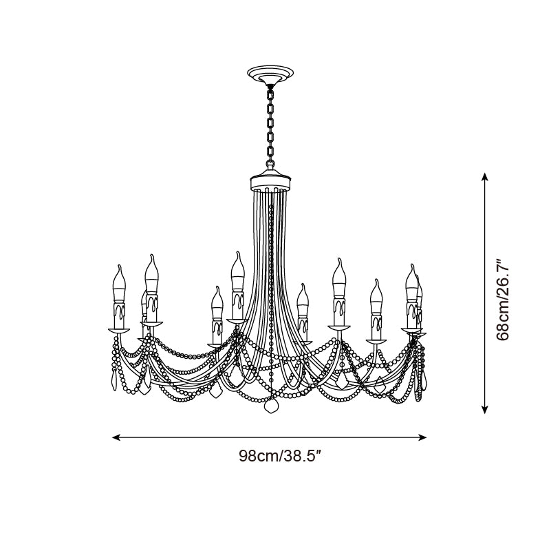 A dramatic fusion of vintage elegance and modern edge, the Beaudra Chandelier captivates with its contrast of matte black arms, cascading faux pearls, and bold black crystal drops. Candle-style lights evoke classic grandeur, while the draped beading adds a soft, ornamental rhythm. Perfect over a dining table or in an entryway that deserves a touch of theatrical flair, Beaudra is unapologetically expressive—an instant icon in any space.
