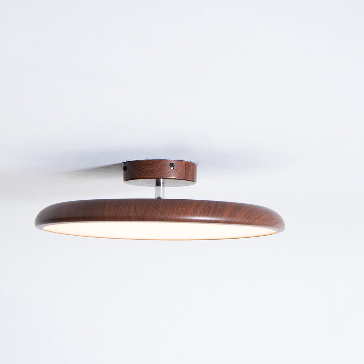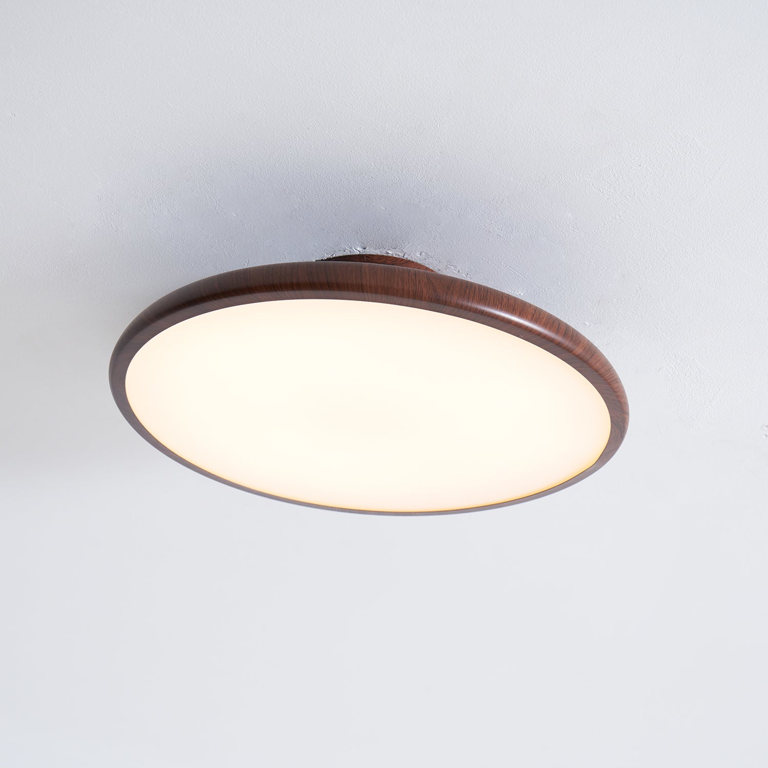 The Ellos Ceiling Light features a sleek, circular metal frame with a sophisticated wood-grain look achieved through advanced water transfer printing technology. Its soft, diffused light adds warmth and elegance to any space, making it ideal for living rooms, dining areas, or bedrooms. The slim design and refined finish make it a versatile choice for modern and classic interiors alike.
