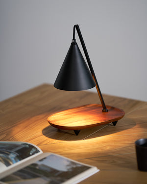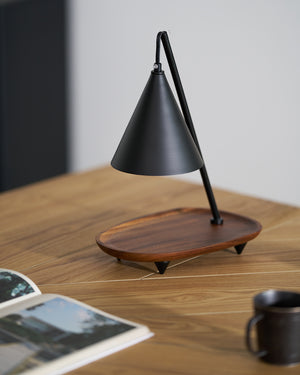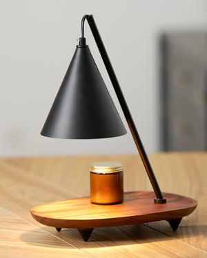 The Mikasa Candle Warmer Lamp is a perfect fusion of minimalist design and cozy ambiance. Featuring a sleek black metal frame with brass accents, it exudes modern elegance. The adjustable conical shade directs soft, focused warmth, melting candles evenly without an open flame, ensuring a safer and longer-lasting fragrance experience. The solid wooden base adds warmth and stability, making it an ideal addition to bedrooms, living spaces, or meditation corners.