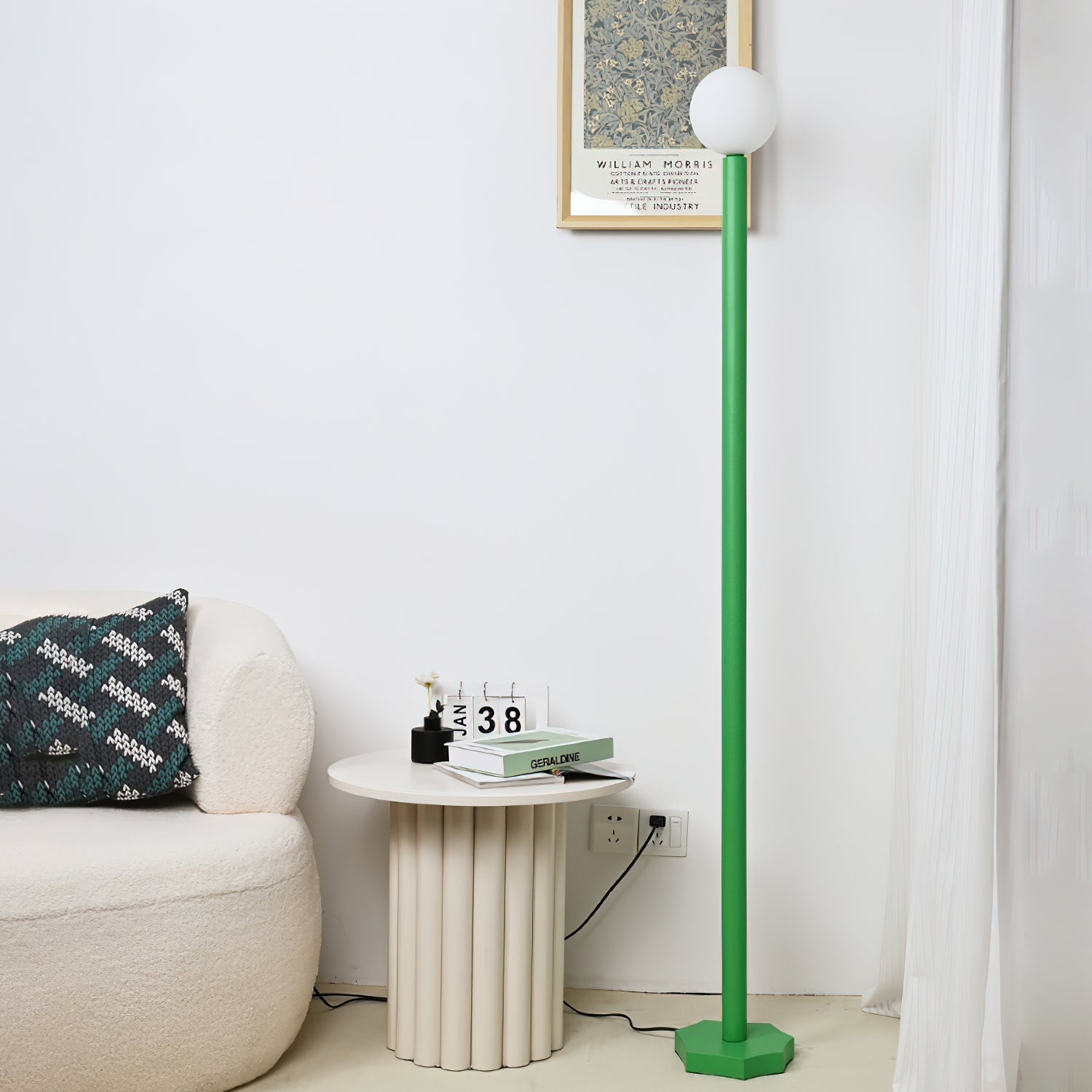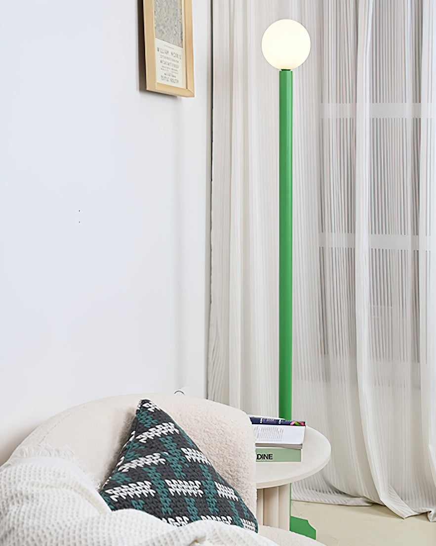 Minimalist yet vibrant, the Dotline Floor Lamp blends graphic simplicity with bold, modern color. Its slender cylindrical body rises from an octagonal base, crowned by a softly glowing glass globe. Available in a palette of playful shades—from pastel pink to deep green—Dotline stands tall as both a lighting solution and a sculptural accent, perfect for contemporary interiors seeking a touch of geometric charm.