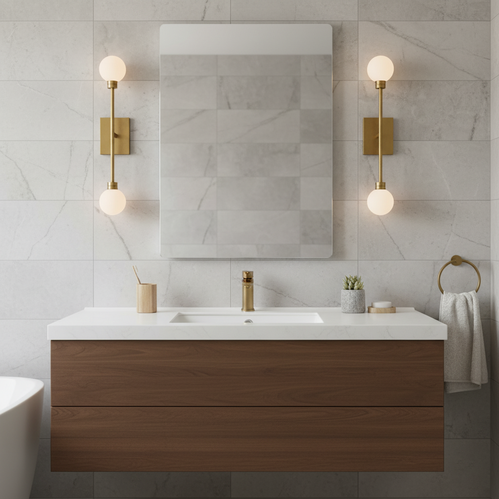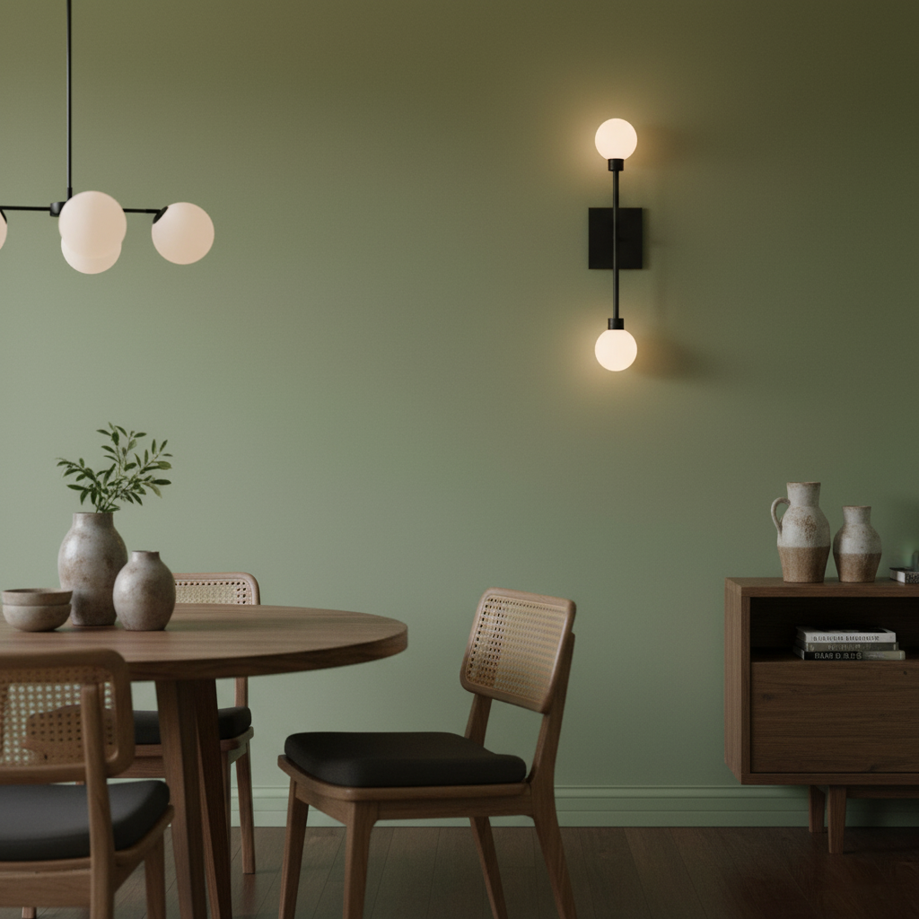 Sleek, symmetrical, and effortlessly modern — the Mara Wall Lamp is a study in refined geometry. Featuring a dual globe design suspended on a slender metal rod, this fixture merges clean lines with soft diffusion, offering ambient lighting that feels both sophisticated and approachable. Available in multiple finishes including matte black, brushed brass, chrome, and satin nickel, it seamlessly integrates into contemporary interiors — from chic bathrooms to understated hallways.