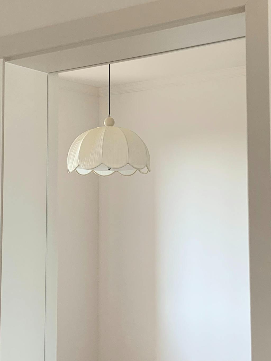 The Ruffle Pendant Lamp is a stunning fusion of soft elegance and contemporary charm. Inspired by the delicate folds of fabric, its pleated design creates a sense of movement and texture, enhancing any room with a sophisticated yet playful look. The lamp's creamy ivory hue and smooth, sculptural shape evoke the beauty of natural forms, making it an ideal choice for both modern and vintage-inspired interiors.