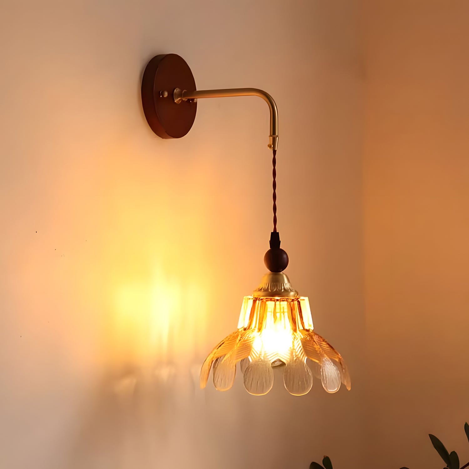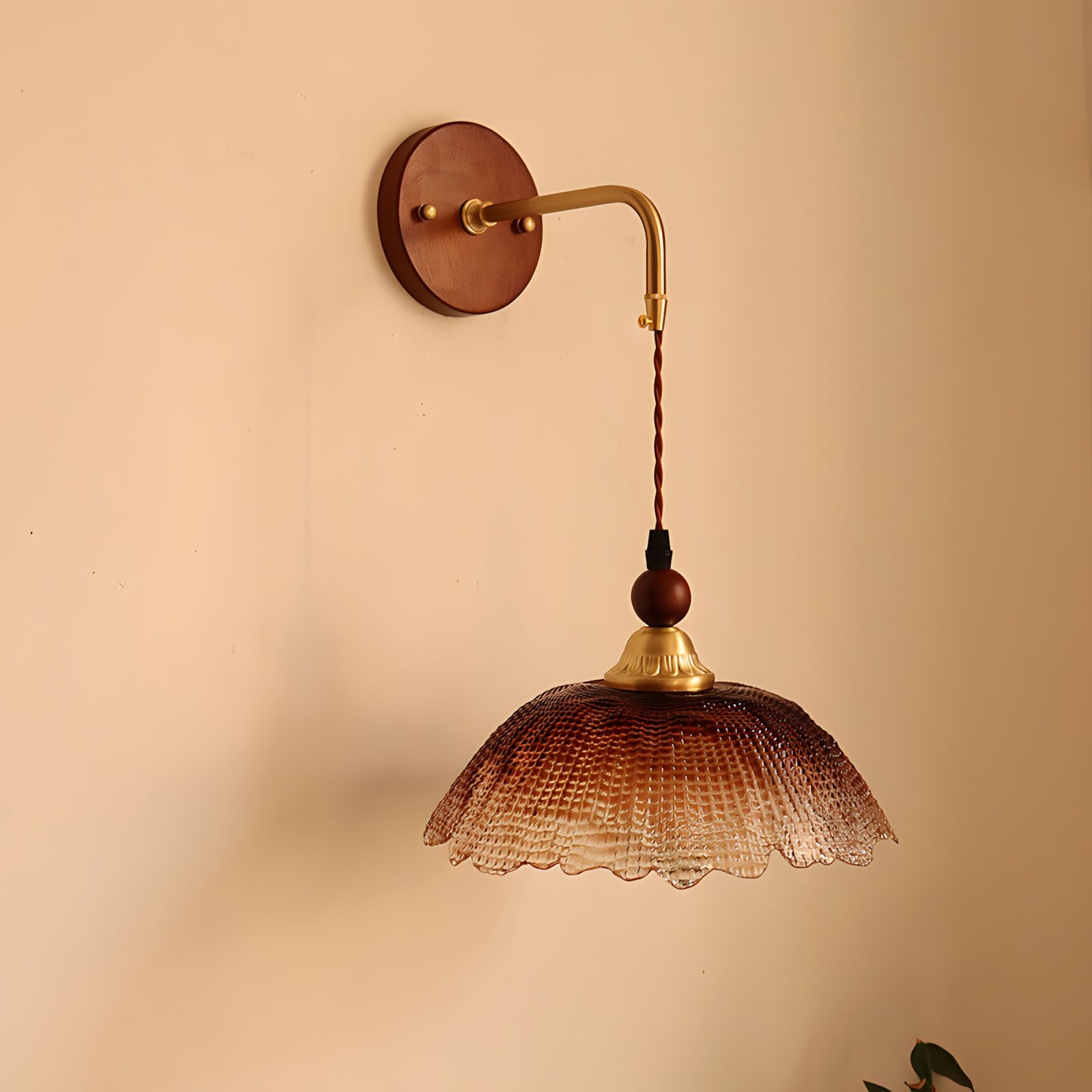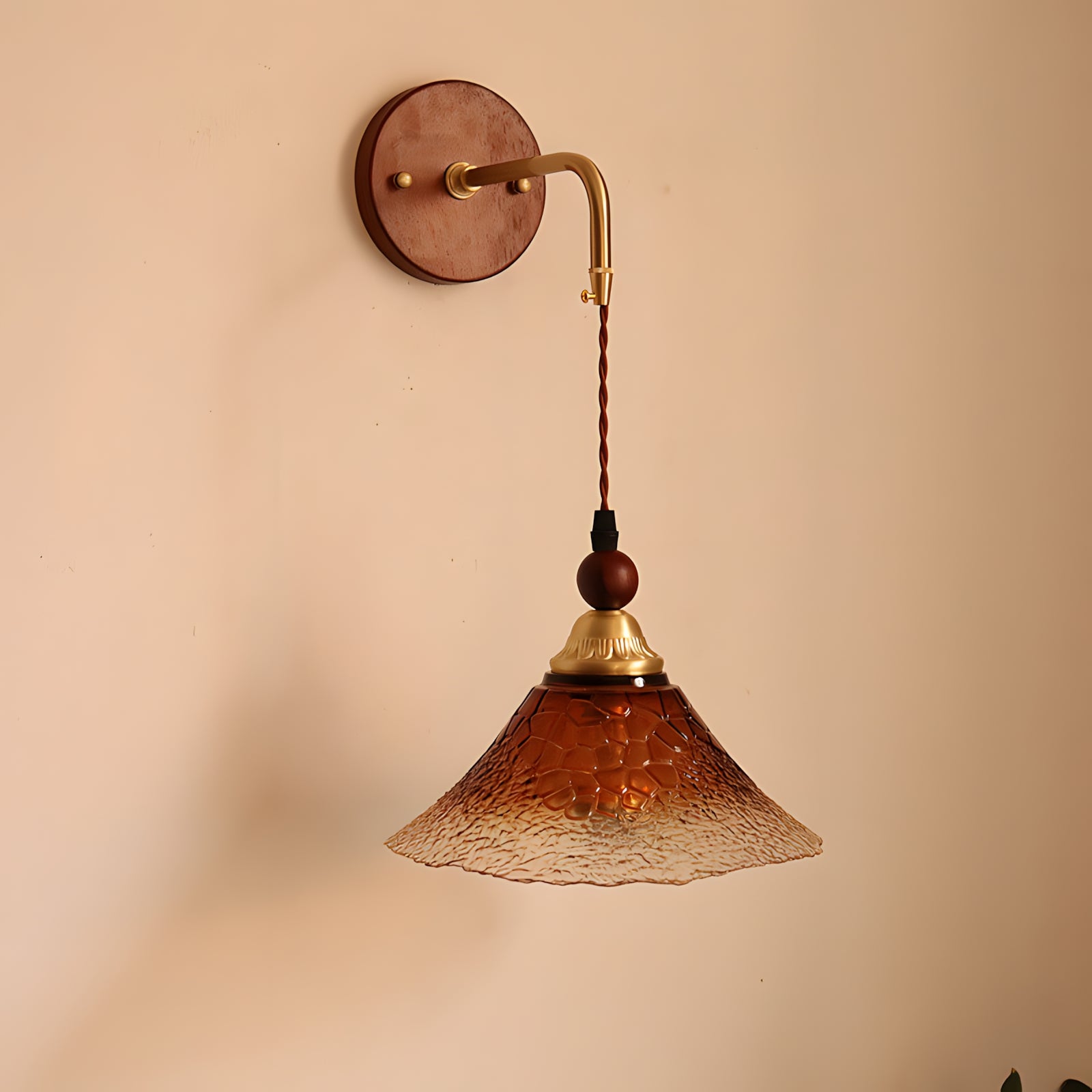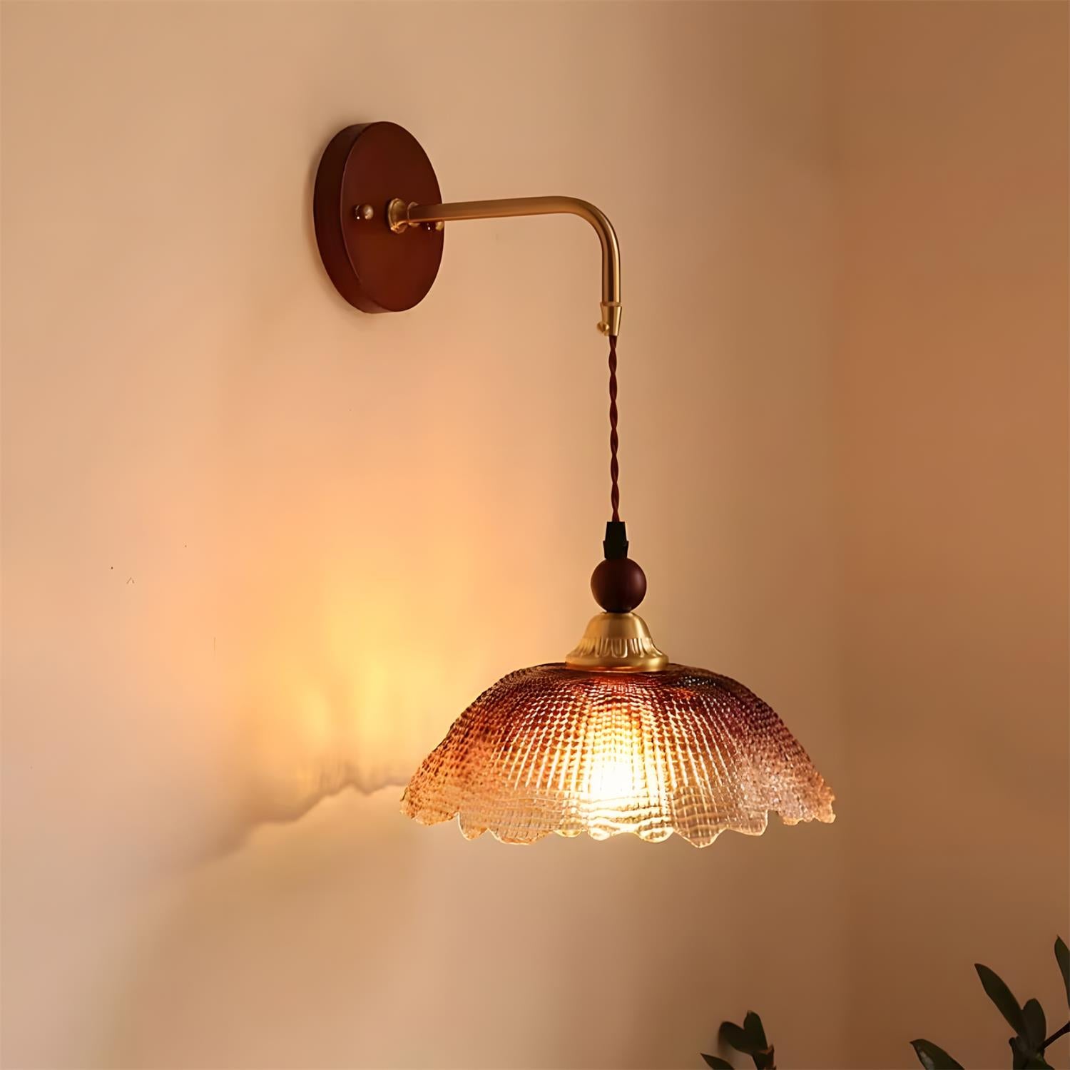 The Bruma Wall Lamp reimagines a classic wall light through a refined, contemporary lens. Its gracefully curved metal arm supports a delicately suspended shade, creating a sense of lightness and visual balance. The textured glass diffuser softly scatters light, casting a warm, atmospheric glow that gently washes over the wall like a veil of mist. Both functional and decorative, Bruma brings together subtle vintage charm and modern elegance.