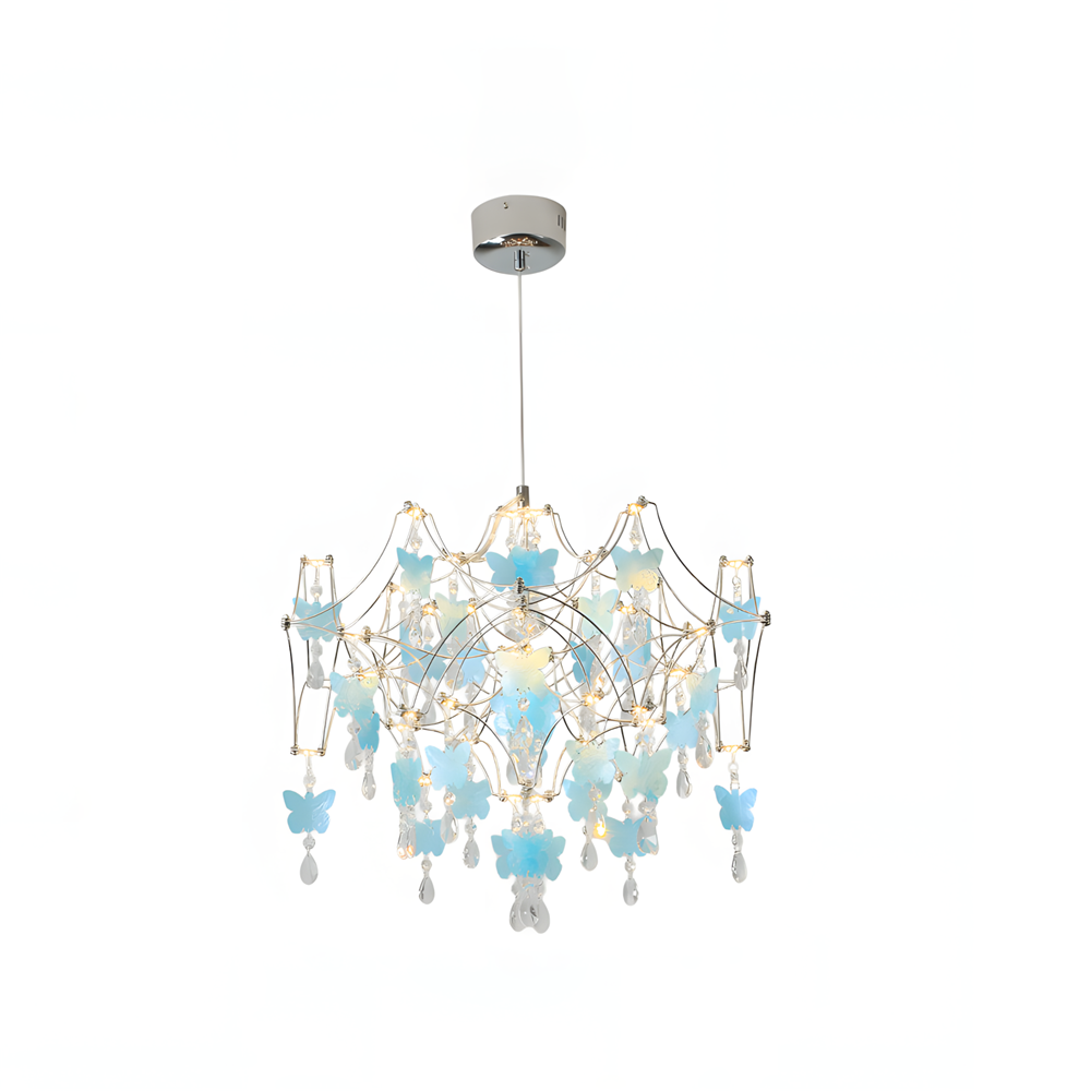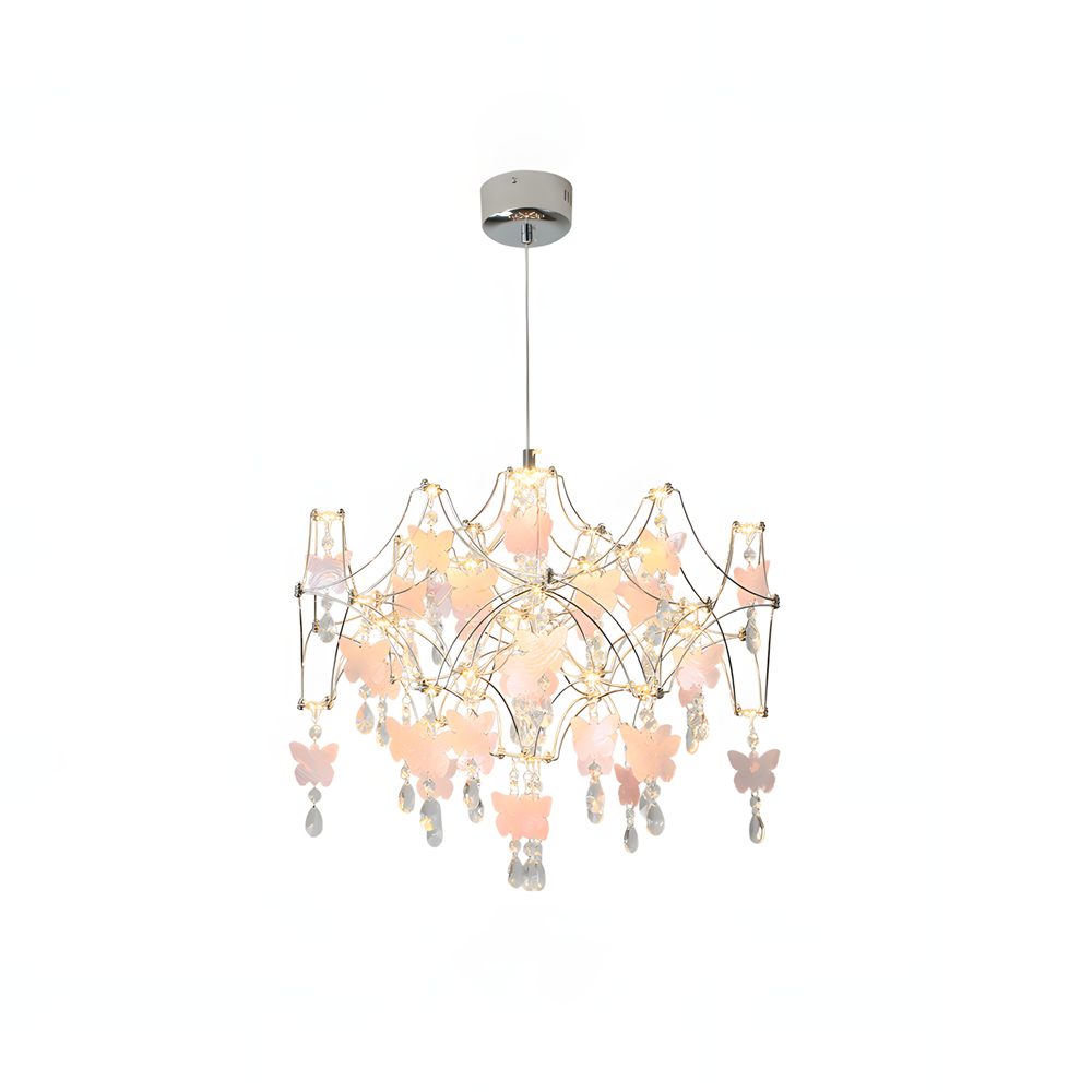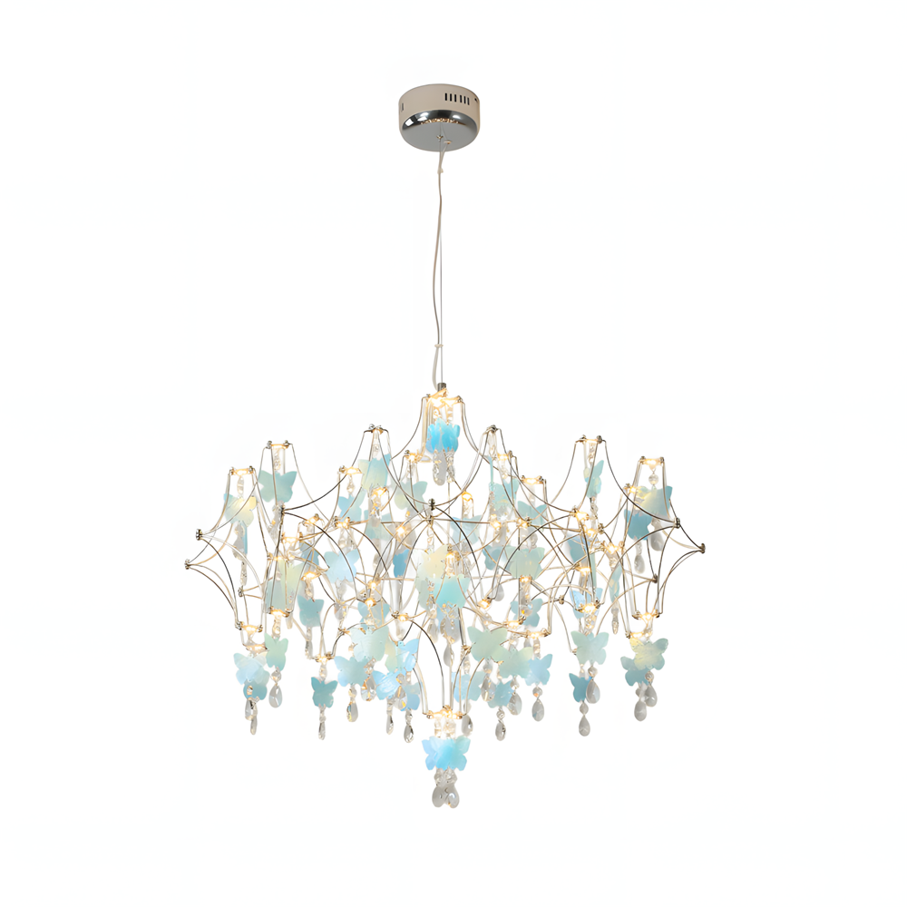 The Butterfly Dream Chandelier is a breathtaking fusion of light and nature, designed to evoke a sense of ethereal wonder. It artfully captures the fleeting movement of a fluttering kaleidoscope of butterflies, woven into a suspended garden by a delicate metallic framework. Each handcrafted butterfly, accented by shimmering crystal droplets, catches and refracts light like morning dew, freezing the poetic vitality of springtime within your home.