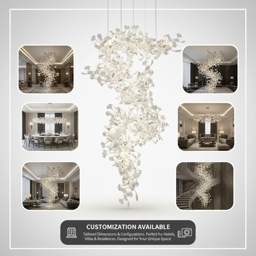 The Gingko Chandelier F Style  Inspired by the natural beauty of ginkgo leaves and branches, this pendant lamp seamlessly blends the beauty of nature into interior decor. Each ginkgo leaf and branch shape seems to radiate the harmonious beauty of the outdoors indoors.