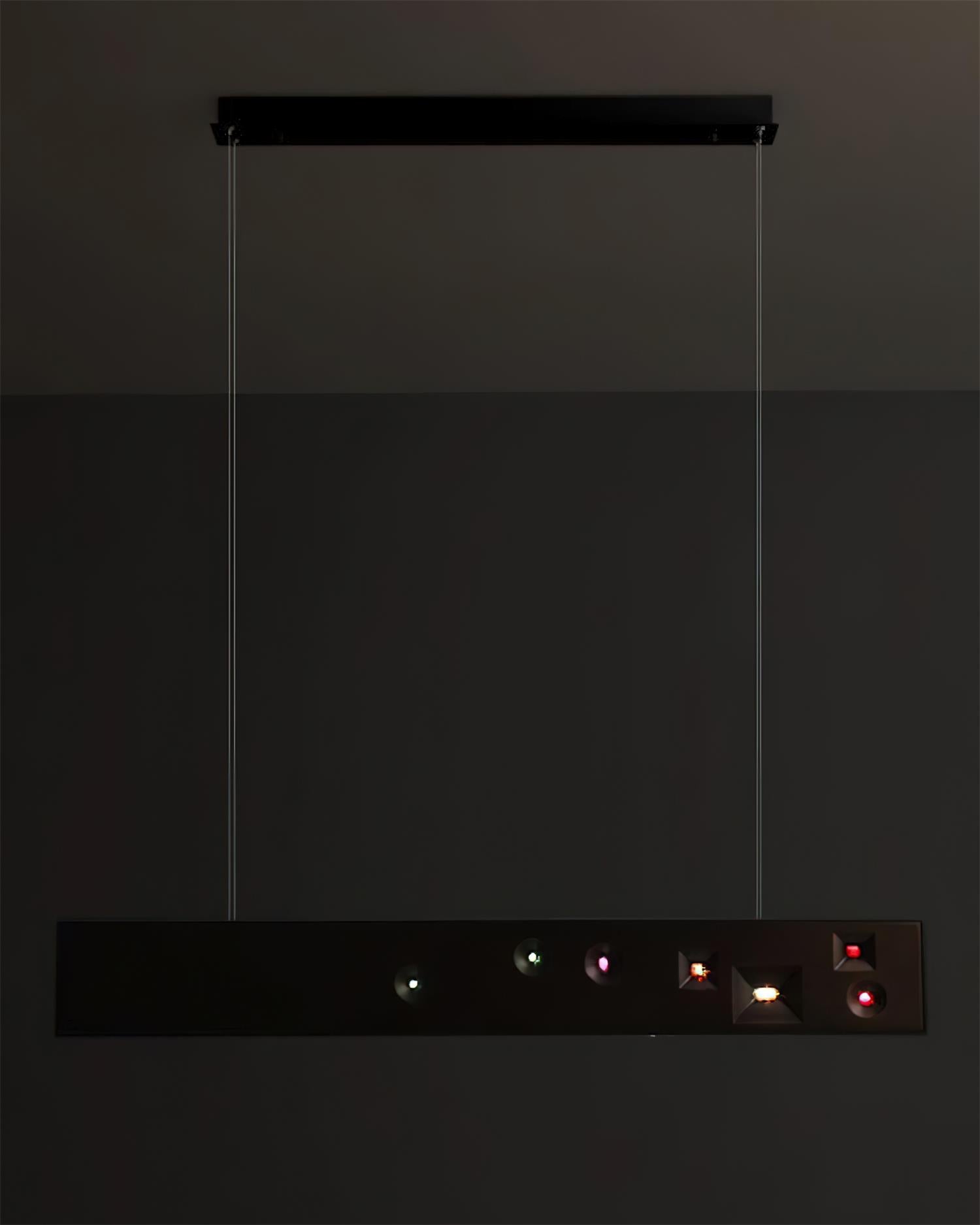 The Inlaid Constellation Chandelier merges craftsmanship with celestial imagination. A linear wooden beam becomes a cosmic canvas, where precisely inlaid geometric crystals glow like scattered stars across a dark horizon. Each facet refracts light uniquely, creating a constellation of reflections that shift with every glance. Balancing minimalism and artistry, this chandelier transforms contemporary interiors into serene, luminous galaxies — a statement piece that feels both architectural and poetic.