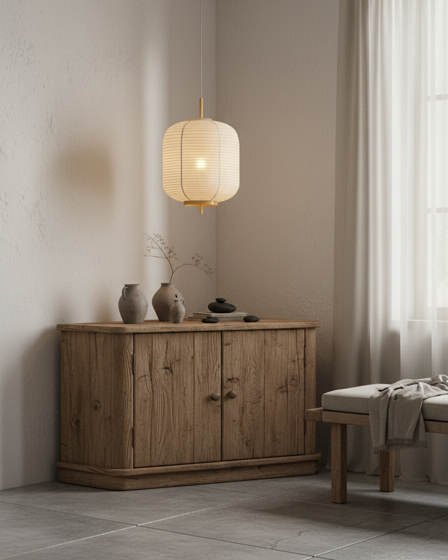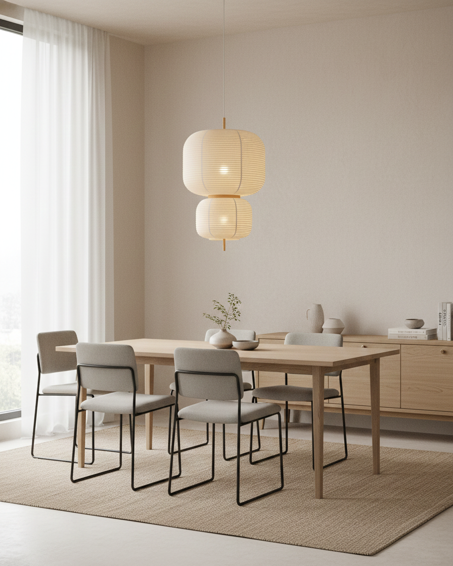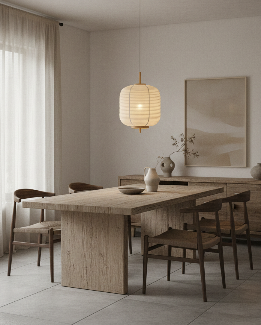 The Komorebi Pendant Lamp beautifully encapsulates the Japanese concept of sunlight filtering through trees, offering a serene and natural aesthetic. With its delicate Water transfer printing wooden frame and layered Fabric shades, this lamp exudes warmth and tranquility. The minimalist design, combined with its soft illumination, creates a calming atmosphere, perfect for dining rooms, living spaces, or reading corners. The Komorebi pendant lamp blends organic materials with contemporary craftsmanship, evoking the peaceful dance of light and shadow found in nature.