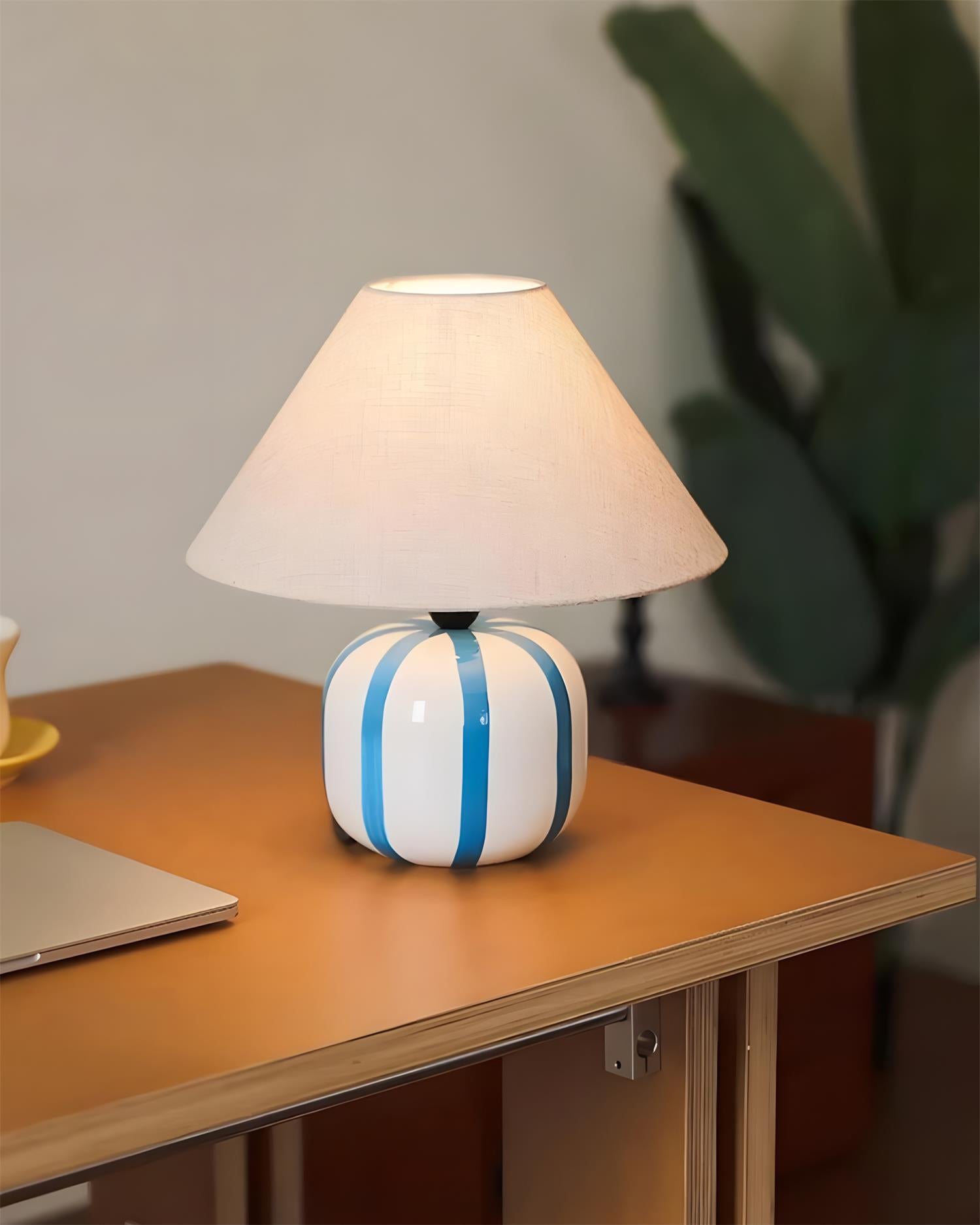 The Lollipop Bliss Table Lamp is a delightful infusion of playful charm and mid-century whimsy, designed to be the 'eye candy' of any interior. Its centerpiece is a plump, candy-striped ceramic base—available in bold cherry red or serene sky blue—that brings a nostalgic, confectionery-inspired energy to the room. With its unique 'lollipop' silhouette and joyful hand-painted aesthetic, this lamp effortlessly bridges the gap between sophisticated decor and cheerful personality, making it a sweet addition to eclectic, modern, or even children’s spaces.