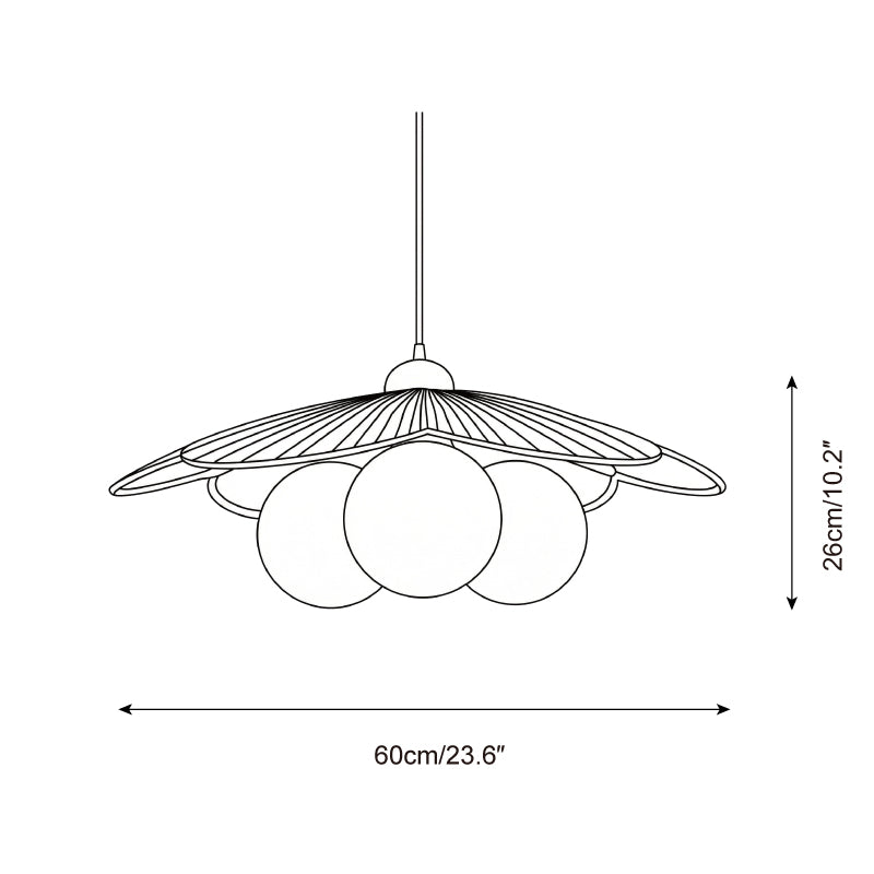 The Sculpted Blossom Pendant Lamp captures the delicate elegance of a flower in full bloom, where its intricate, textured petals are crafted from woven materials that elegantly encircle a trio of soft-glowing globe bulbs. The warm, organic feel of the woven shade contrasts beautifully with the smooth, modern finish of the globes, creating a dynamic interplay of textures and light. Its unique design offers both a statement piece and a source of ambient light, blending artistry and function effortlessly.