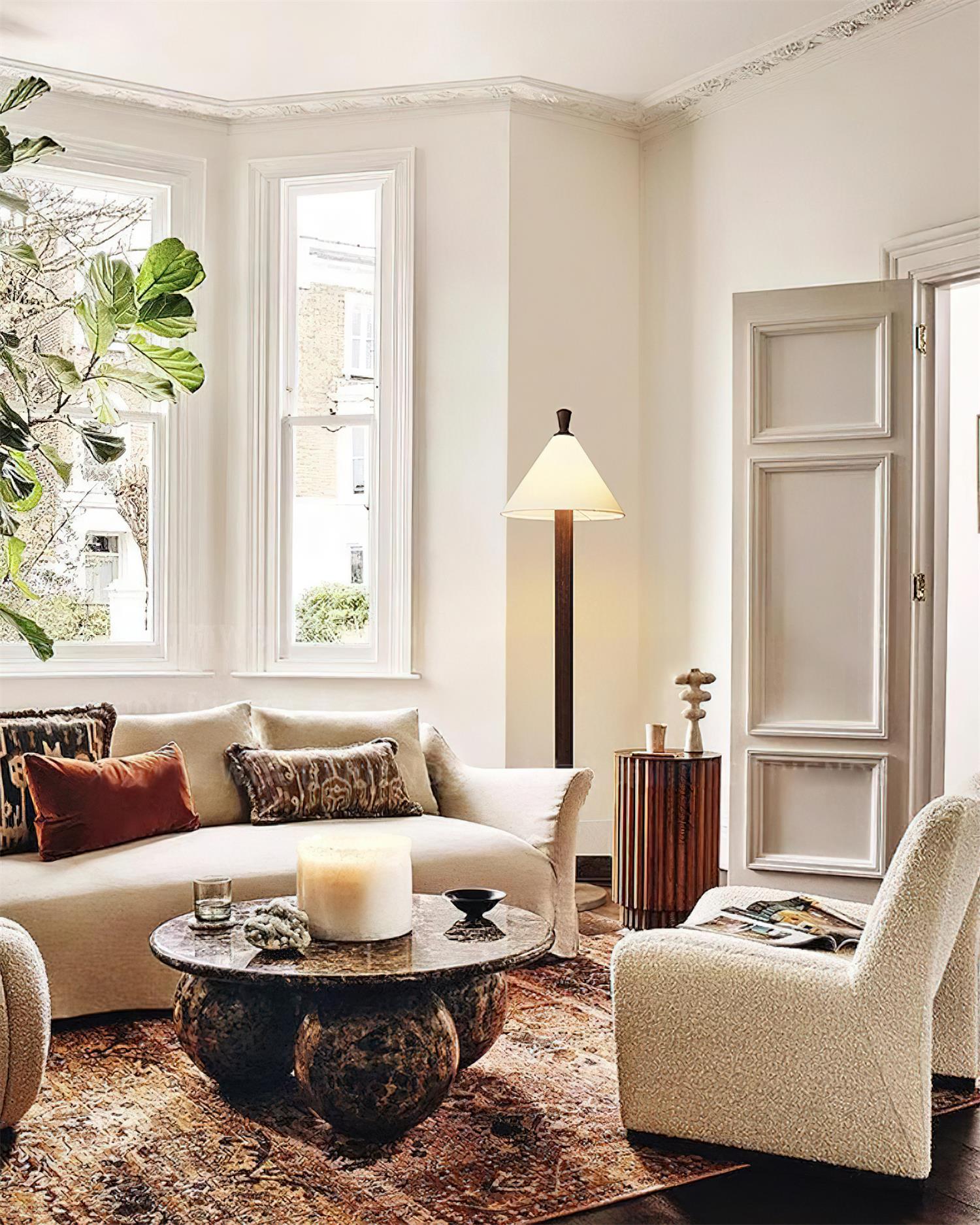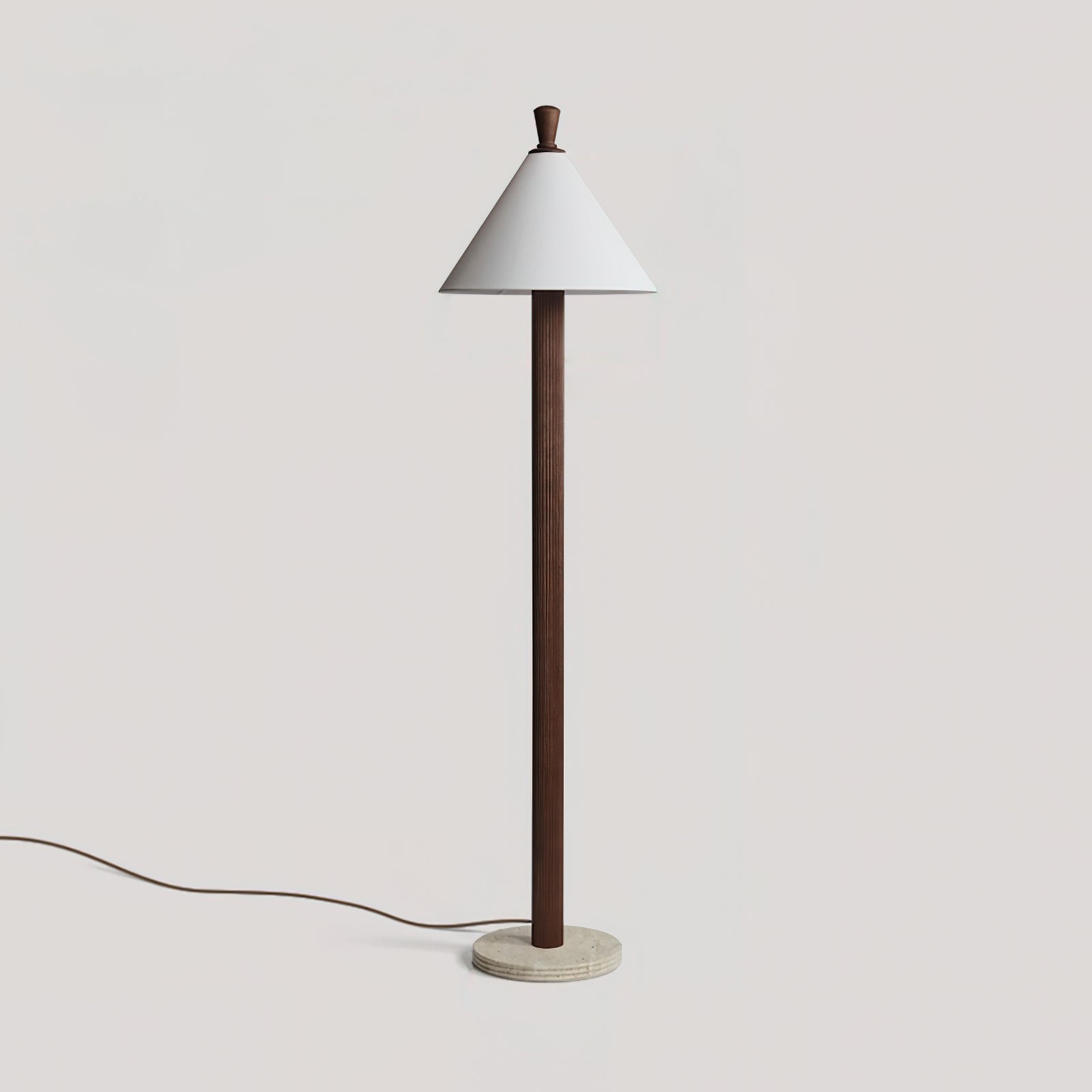 The Takumi Floor Lamp is a study in balance and restraint, merging Japanese-inspired minimalism with timeless elegance. Its clean conical shade rests atop a slender wooden stem, anchored by a solid stone base that grounds the design with quiet strength. Subtle variations in wood tones allow it to harmonize with diverse interiors, while its precise proportions bring both sculptural presence and soft illumination.