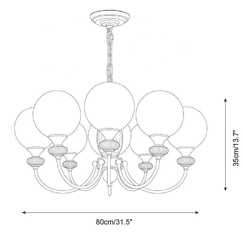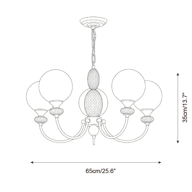 The Blanca Chandelier brings a light, candy-colored charm to classic chandelier form—soft white arms sweep outward to hold glowing opal globes, while blush-pink accents and textured centerpiece details add a playful, sculptural touch. The result feels airy and cheerful rather than formal, with a warm, even glow that flatters the whole room. perfect when you want something sweet, modern, and quietly whimsical.