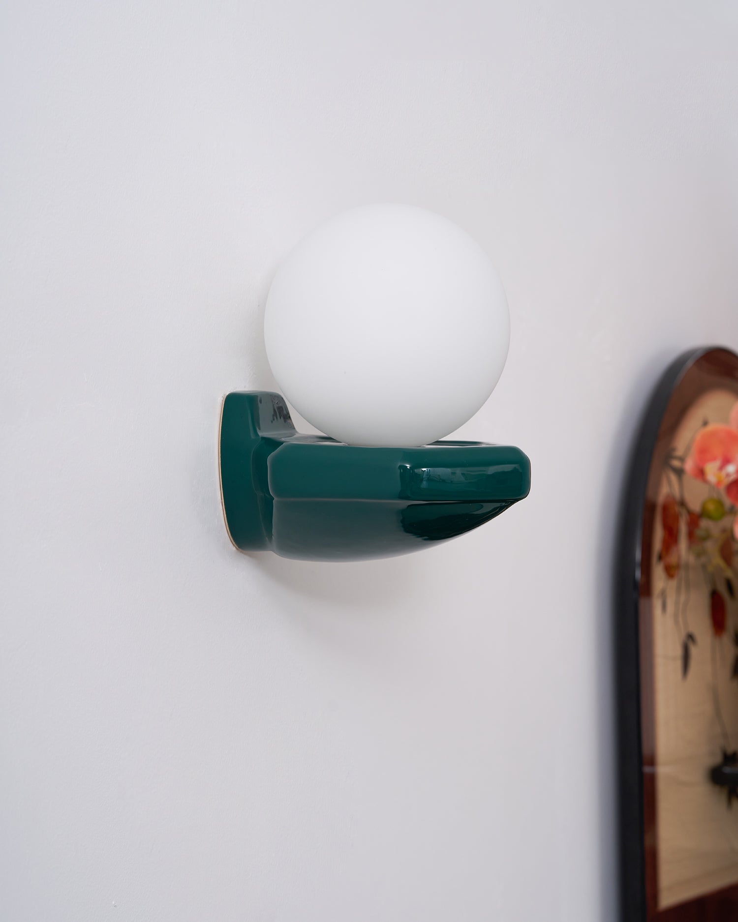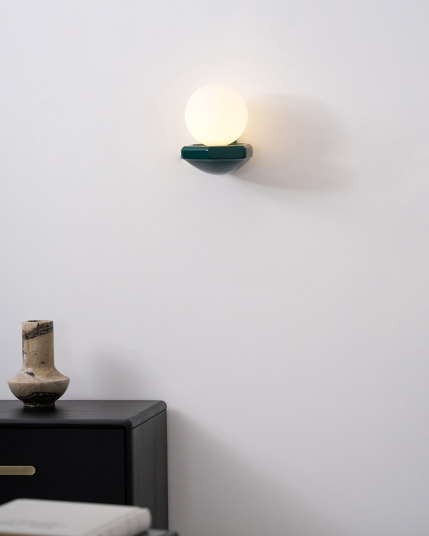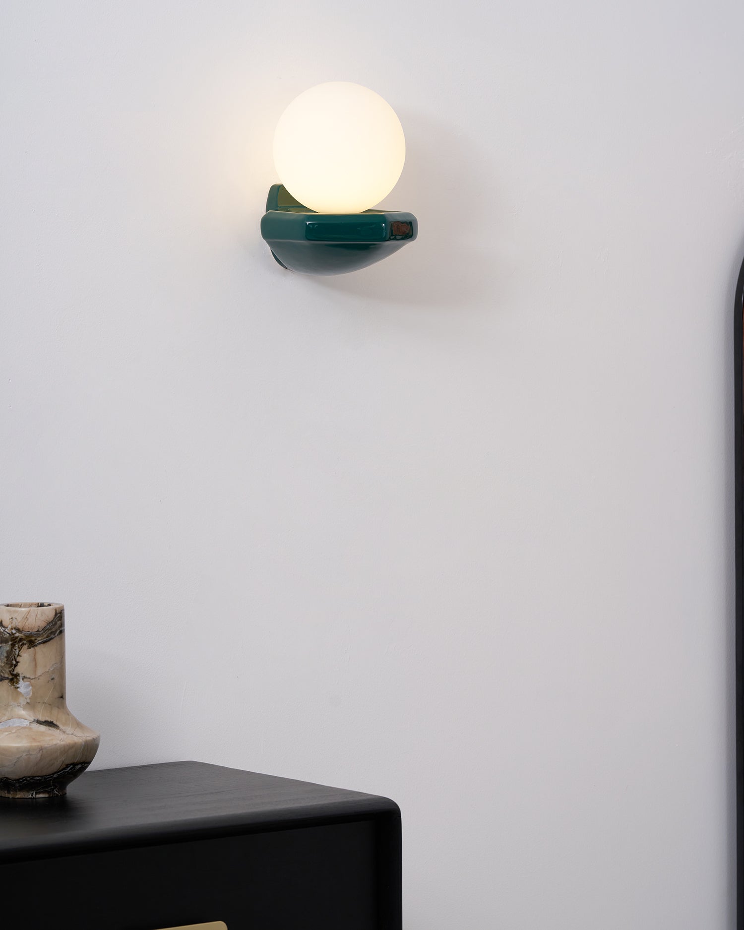 The Bluora Wall Lamp embodies playful modernity with its smooth, glossy blue base cradling a luminous frosted glass orb like a rising moon. Its clean geometry and gentle curves create a harmonious balance of color and light, making it both a functional fixture and a statement piece. Ideal for adding a pop of character to living rooms, bedrooms, or creative spaces, it brings a fresh and artistic glow to contemporary interiors.