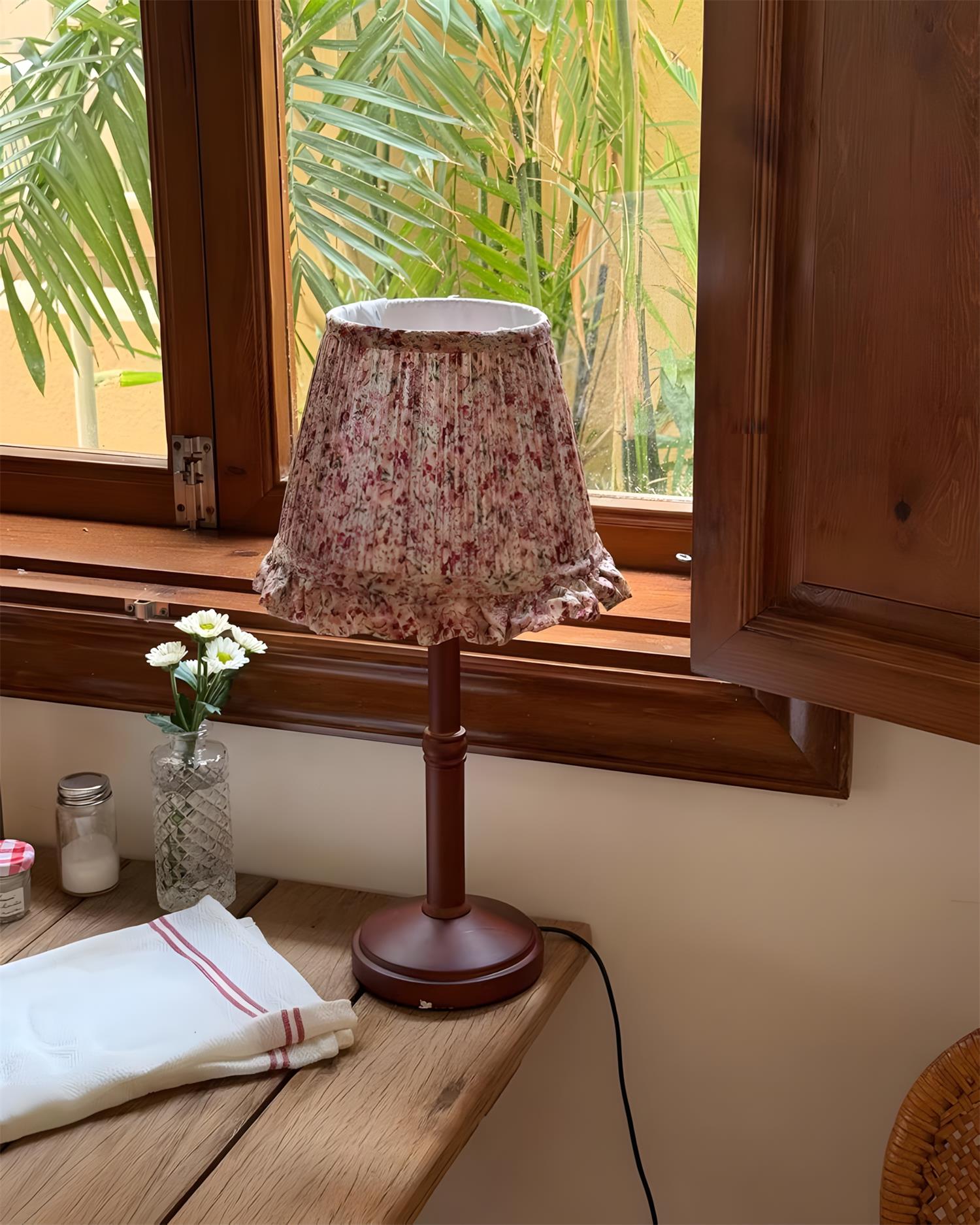 Briarfield Table Lamp brings a sense of quiet nostalgia into the home, blending cottage-inspired charm with a refined, lived-in elegance. The softly pleated fabric shade, finished with a delicate floral pattern and subtle ruffled edge, diffuses light into a warm, comforting glow. Paired with a classic turned wood base, the design feels timeless yet intimate—evoking sunlit mornings by the window and the calm rhythm of everyday life.