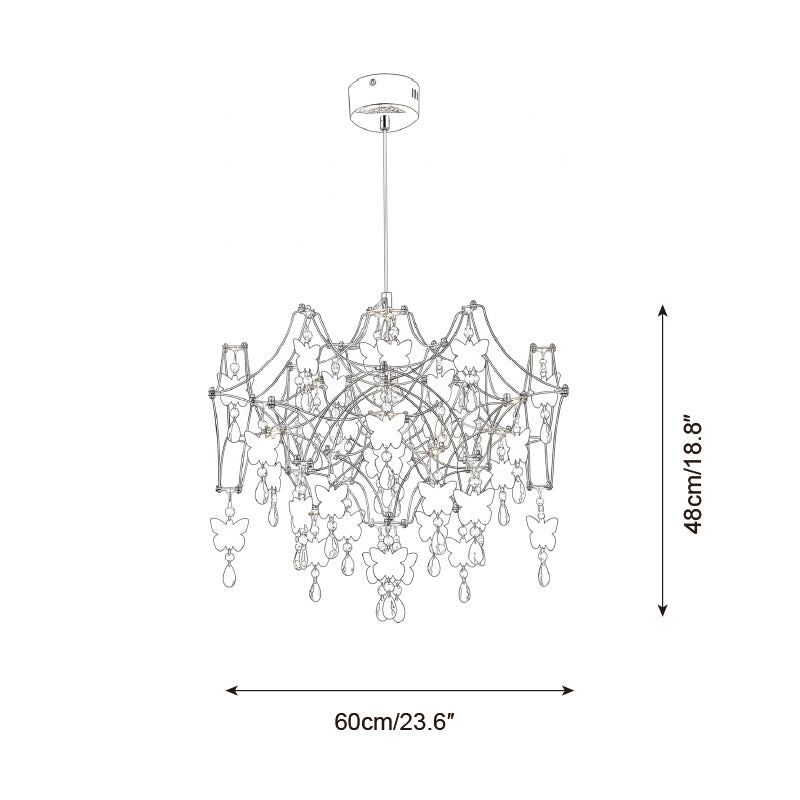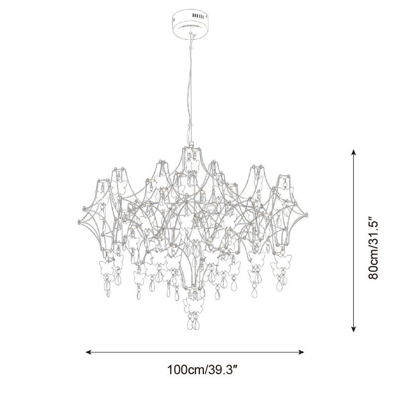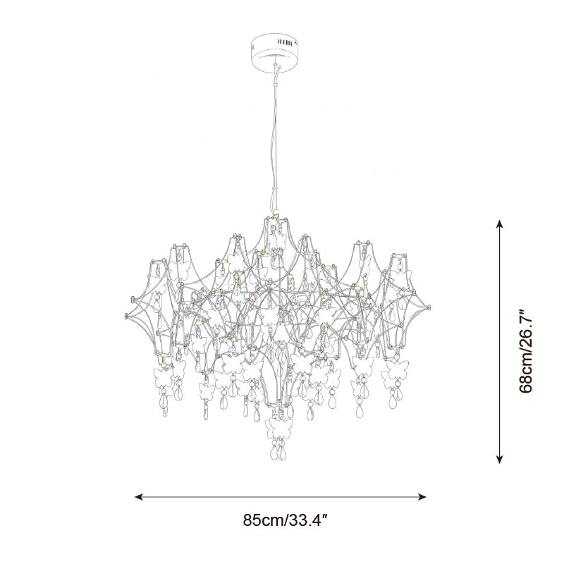 The Butterfly Dream Chandelier is a breathtaking fusion of light and nature, designed to evoke a sense of ethereal wonder. It artfully captures the fleeting movement of a fluttering kaleidoscope of butterflies, woven into a suspended garden by a delicate metallic framework. Each handcrafted butterfly, accented by shimmering crystal droplets, catches and refracts light like morning dew, freezing the poetic vitality of springtime within your home.