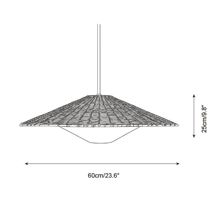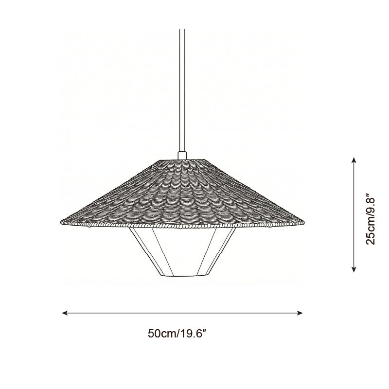 The Eastern Pendant Lamp embodies a perfect fusion of natural elements and modern design. Its minimalist woven rattan shade, inspired by traditional Asian artistry, casts a warm, inviting light, while the sleek white Fabric adds a contemporary touch. The geometric simplicity and light, airy form of the lamp create a sophisticated ambiance, making it an ideal statement piece for dining areas, living rooms, or entryways.