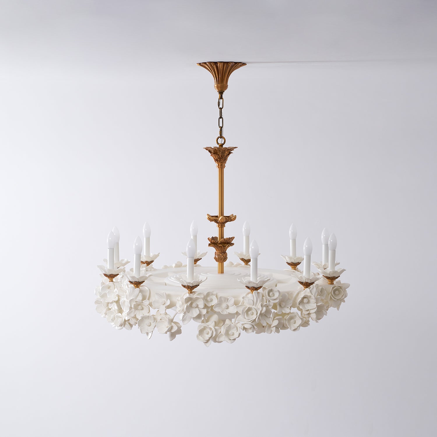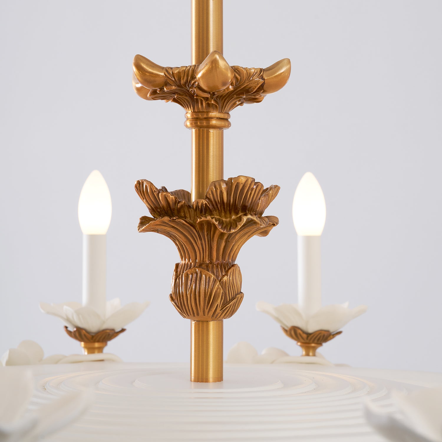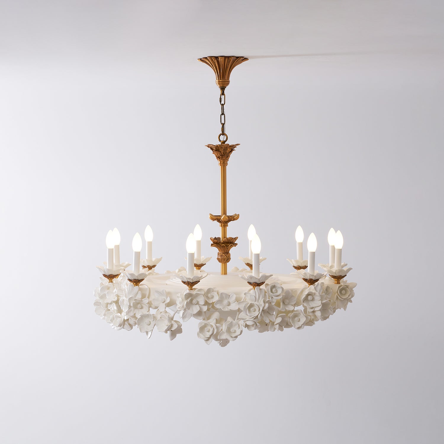What I appreciate most is how balanced the design feels. The gold adds a classic accent, while the white floral structure feels airy and bright. It ties together our traditional-style room beautifully.