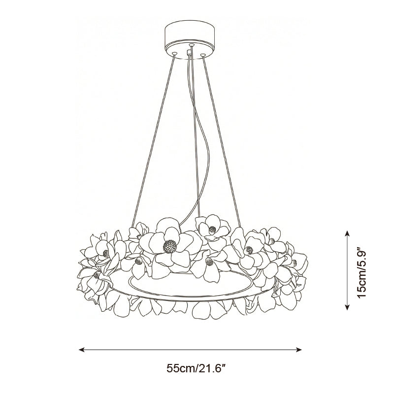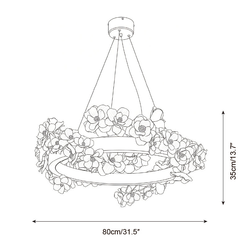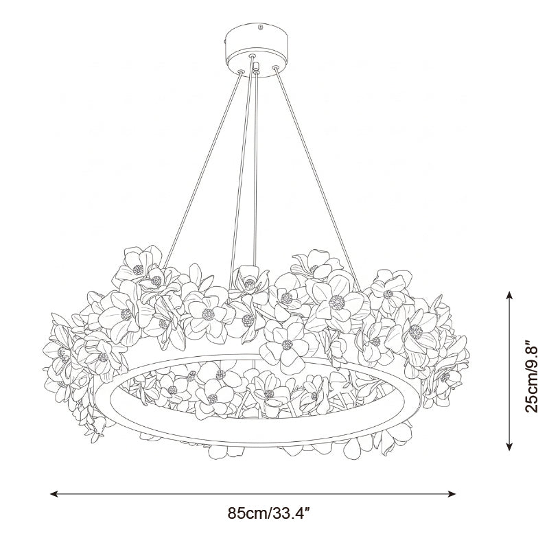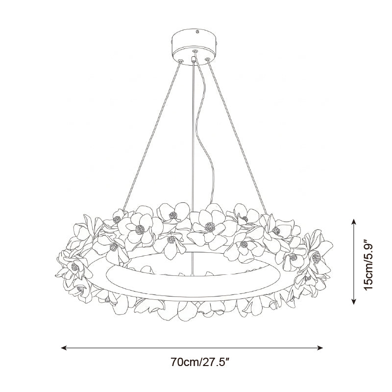 The Gardenia Loop Chandelier is an exquisite fusion of nature and modern design, where delicate, handcrafted floral petals encircle a glowing ring of light. Inspired by the timeless beauty of gardenias, each petal is meticulously sculpted, creating a soft, organic aesthetic. The warm, ambient glow emanates from the ring, softly illuminating the room while accentuating the elegance of the flowers. Suspended gracefully from thin wires, the chandelier offers a light and airy feel, making it a stunning focal point in any contemporary space.