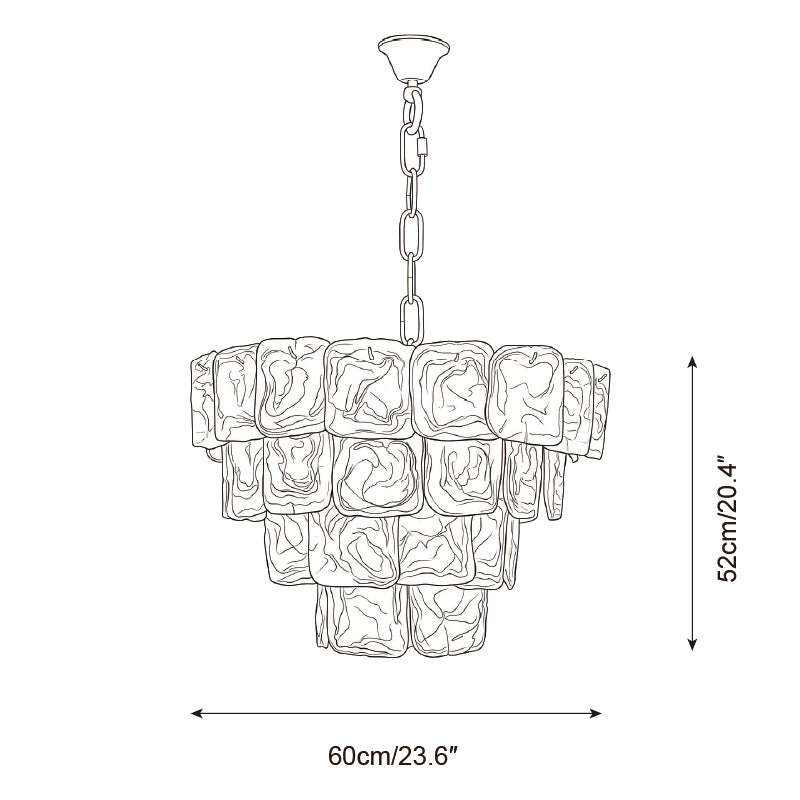 The Glazed Tier Chandelier is a masterclass in balanced proportions, Its tiered architectural silhouette creates a mesmerizing 'floating' effect, where the sleek metallic finish anchors the space while the glazed outer ring diffuses a soft, multidimensional glow. This interplay of solid and transparent materials evokes a Modernist charm, transforming a functional light fixture into a sculptural centerpiece.