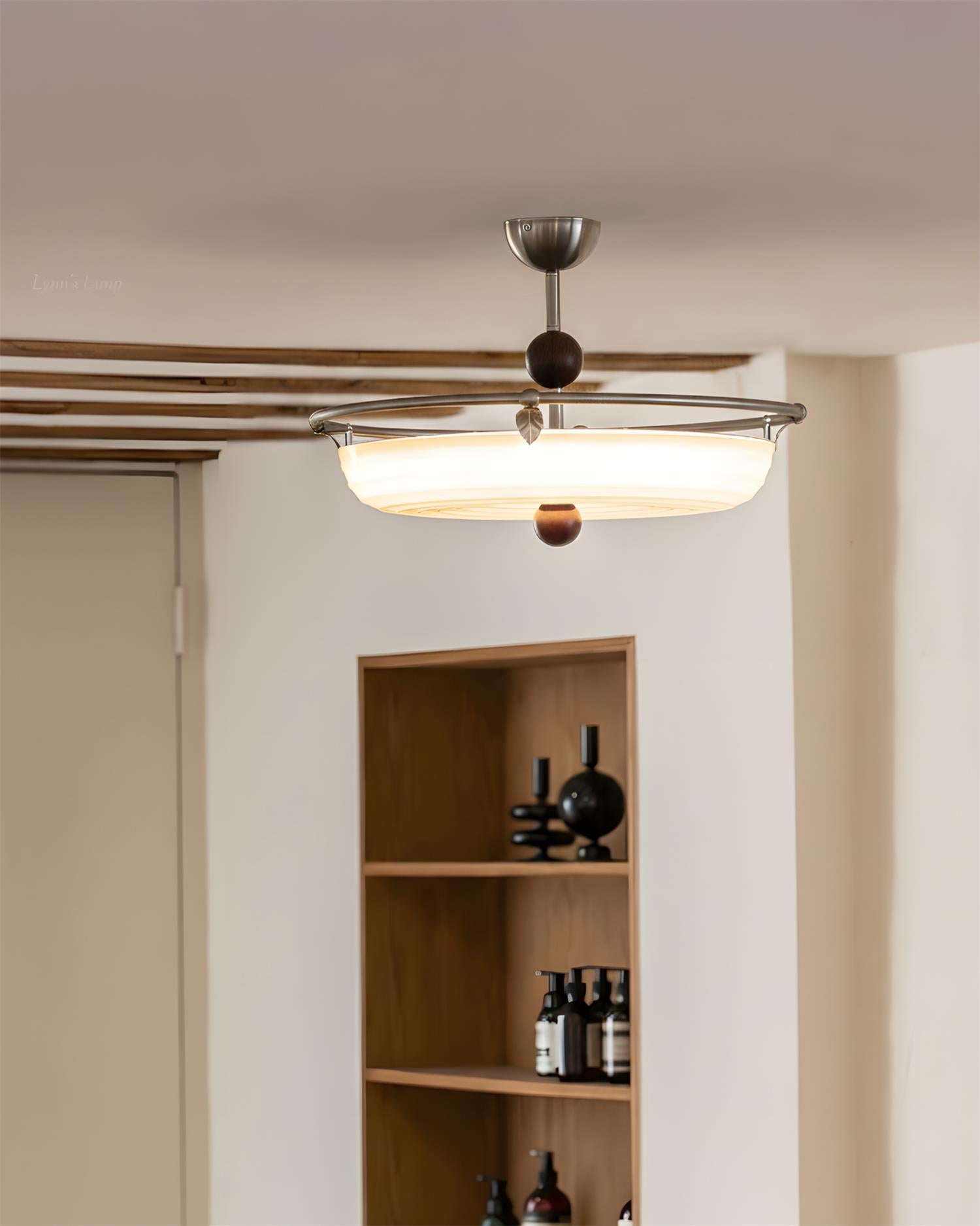 The Belden Ceiling Lamp blends classic restraint with subtle sculptural detail. Its softly layered glass shade creates a calm, diffused glow, while the slim metal frame and balanced spherical accents introduce a sense of architectural order. The circular form feels grounded yet elegant, echoing mid-century influences with a contemporary refinement. Designed to feel composed rather than decorative, Belden brings warmth, symmetry, and quiet sophistication to dining areas, living rooms, or thoughtfully curated interiors.