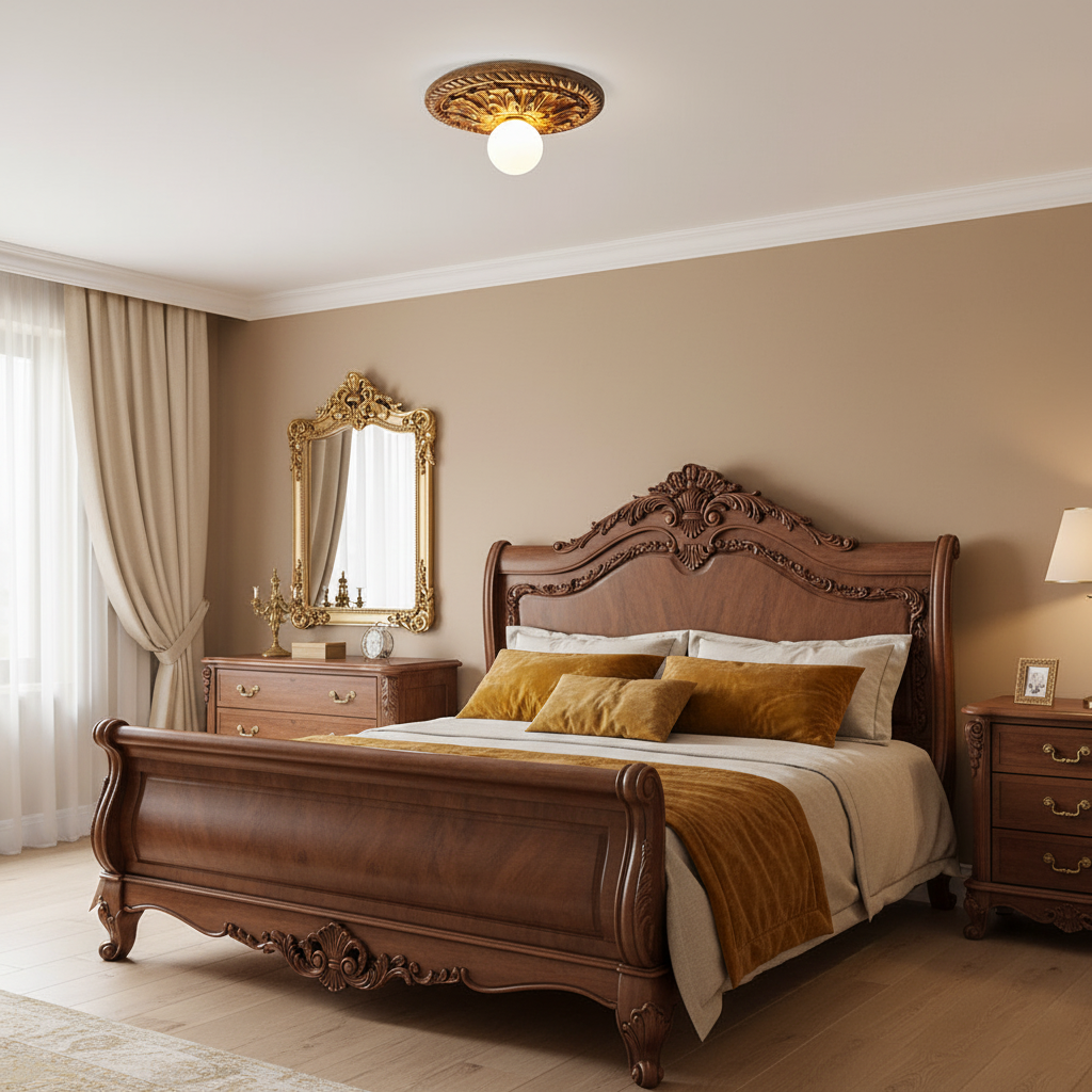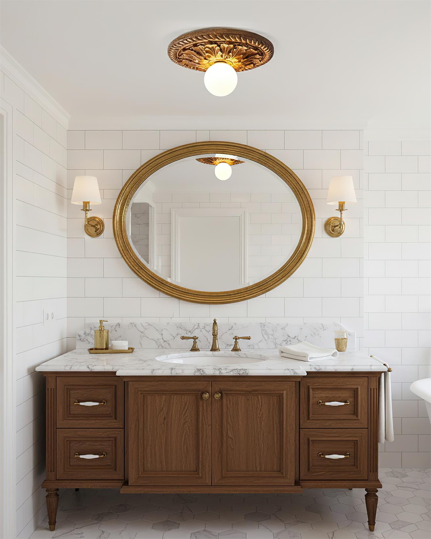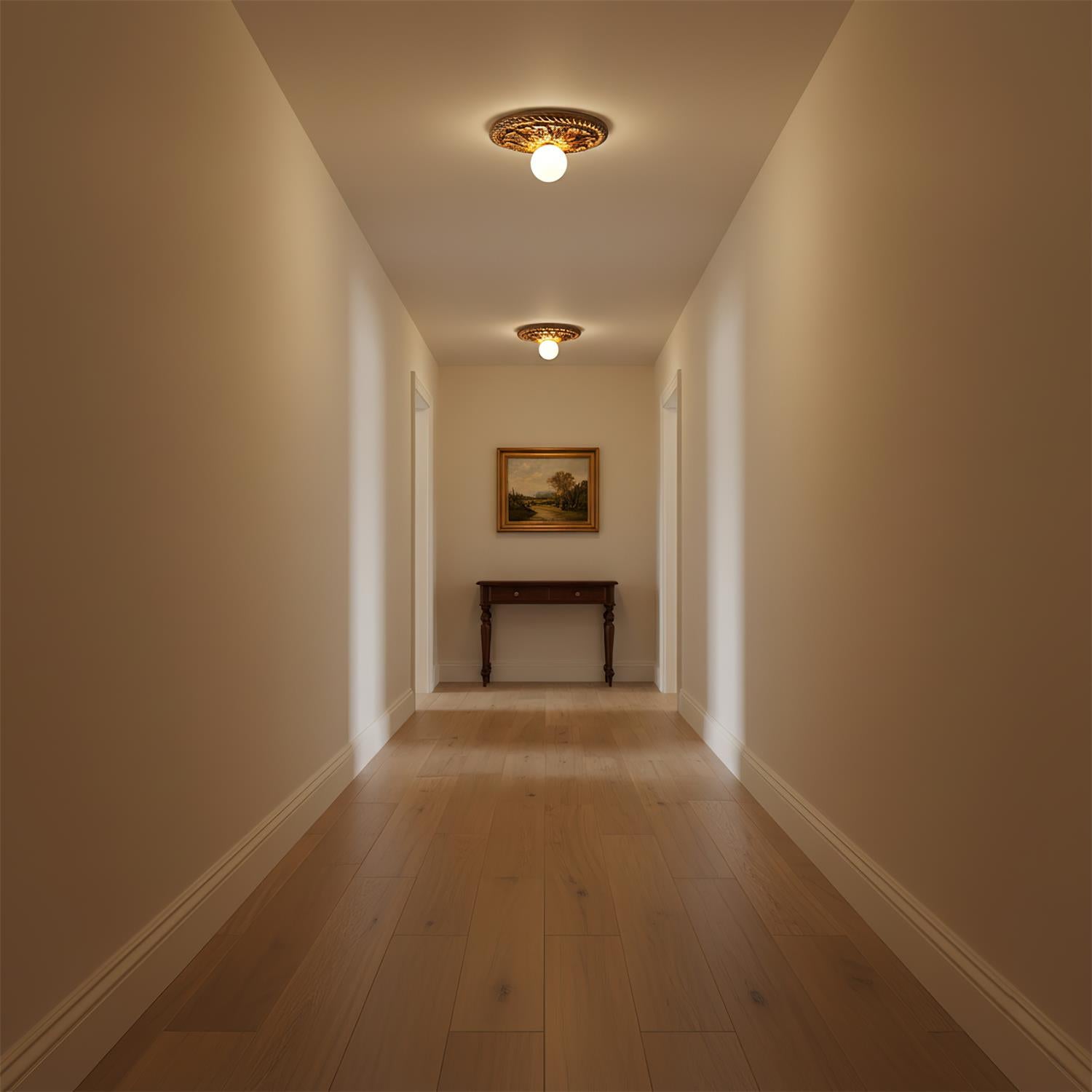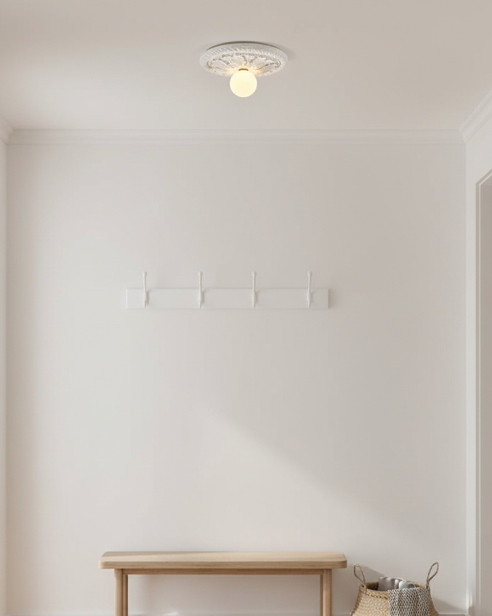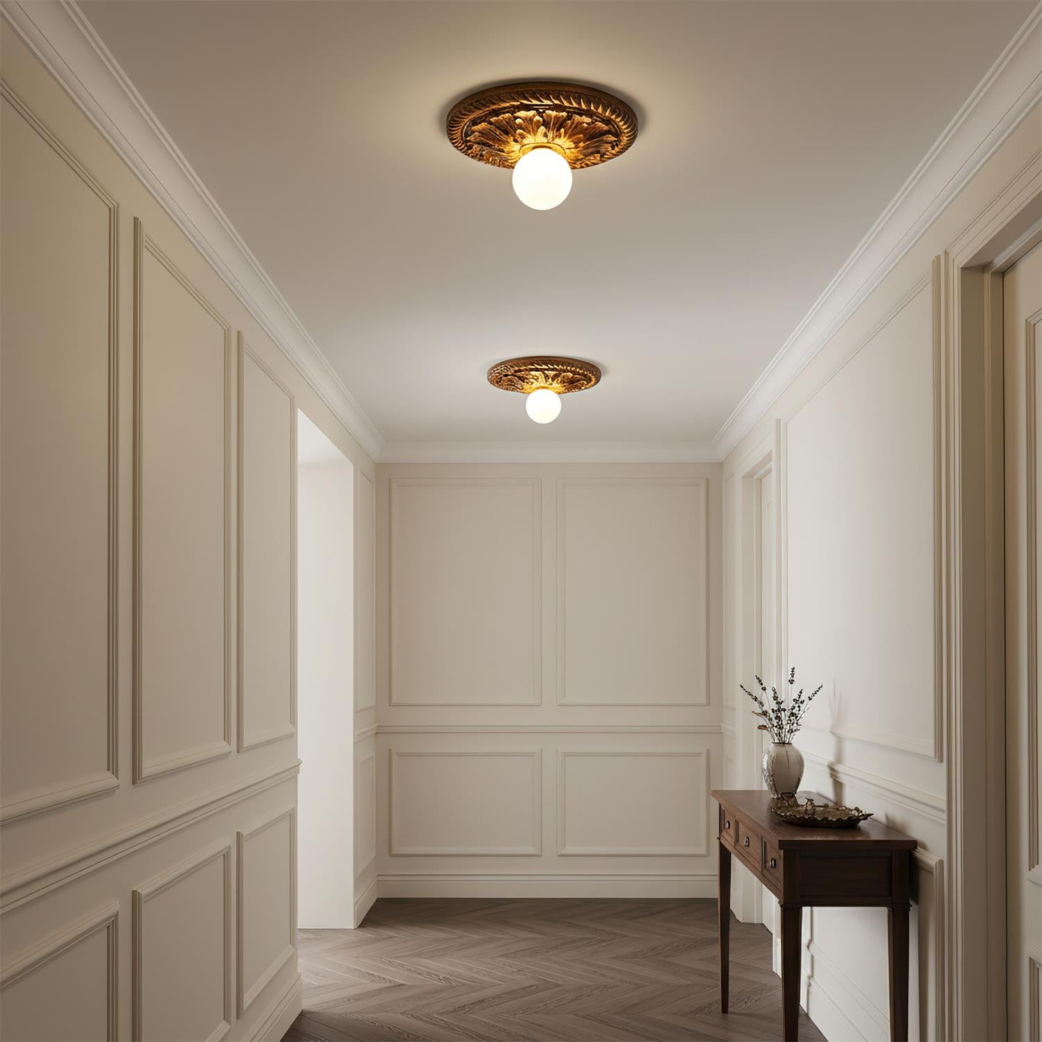 The Circa Ceiling Light brings a touch of French elegance to any space with its exquisite cream-colored relief design. This fixture skillfully combines classic artistry with modern functionality, suitable for use as both a ceiling light and a wall sconce. The detailed embossing on the rim adds a luxurious depth to the piece, making it a standout addition to any room.