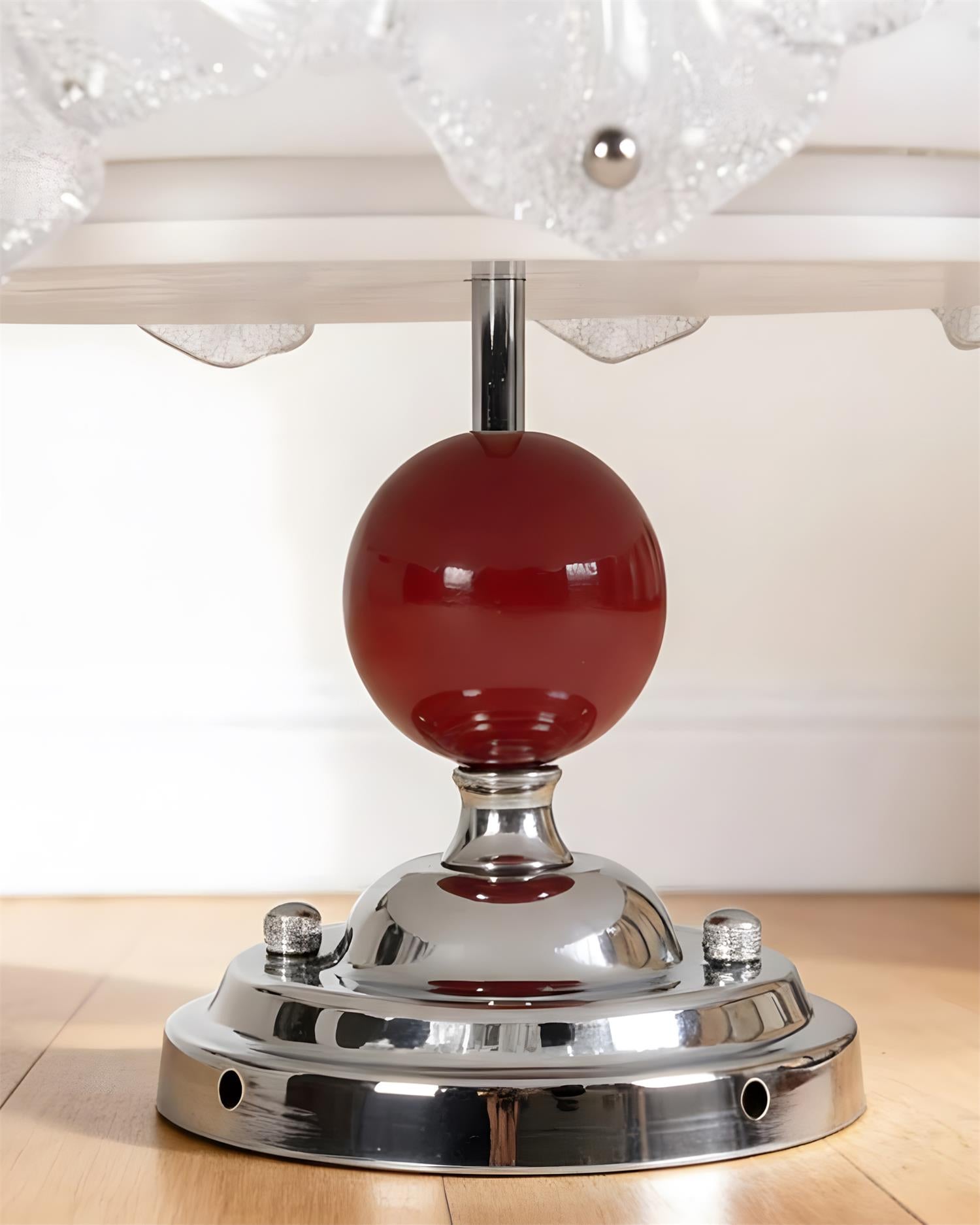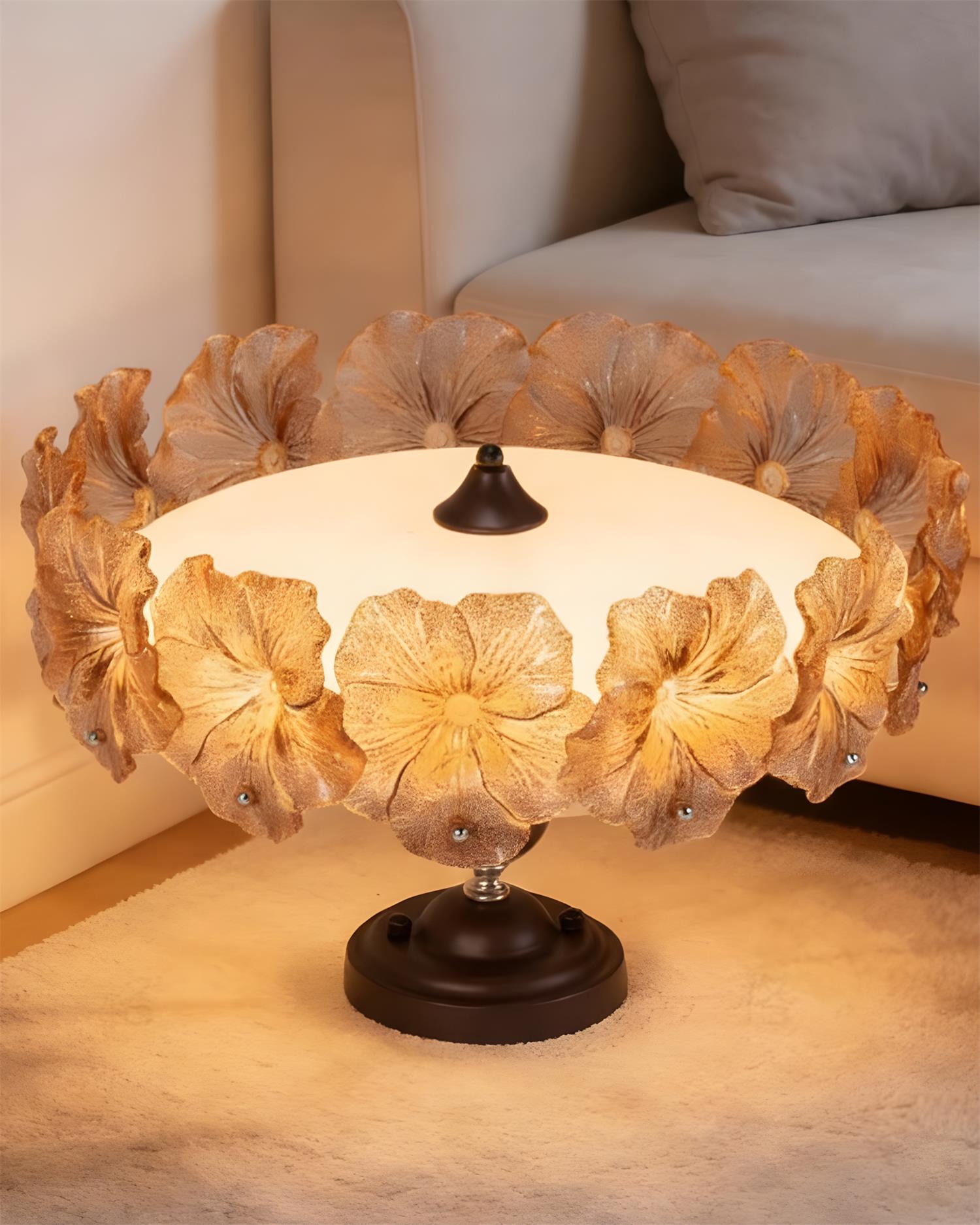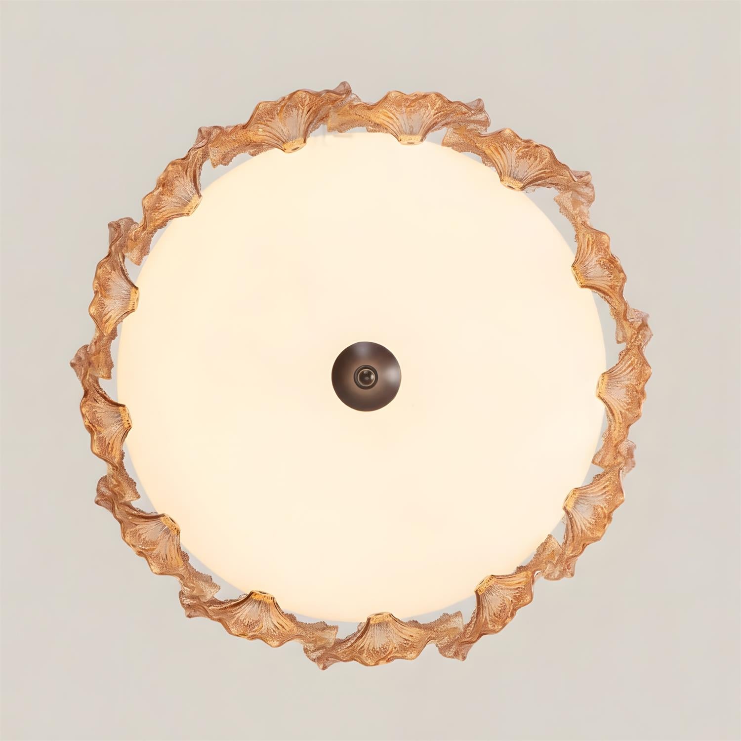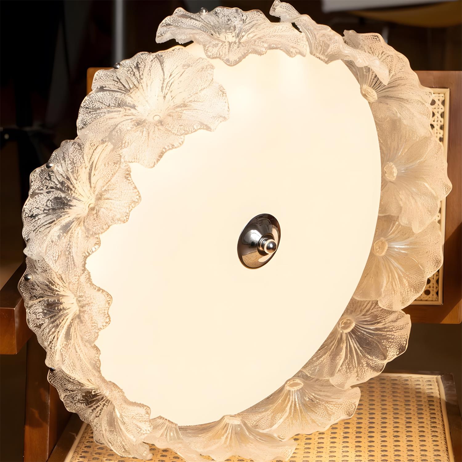 The Coralia Ceiling Lamp is inspired by organic forms found in nature, featuring delicately textured glass petals arranged in a continuous floral ring. Each translucent bloom softly diffuses light, creating a warm, layered glow that feels both decorative and atmospheric. Accented with subtle metal details and a sculptural central structure, Coralia balances romantic elegance with artistic craftsmanship—making it a striking statement for dining rooms.