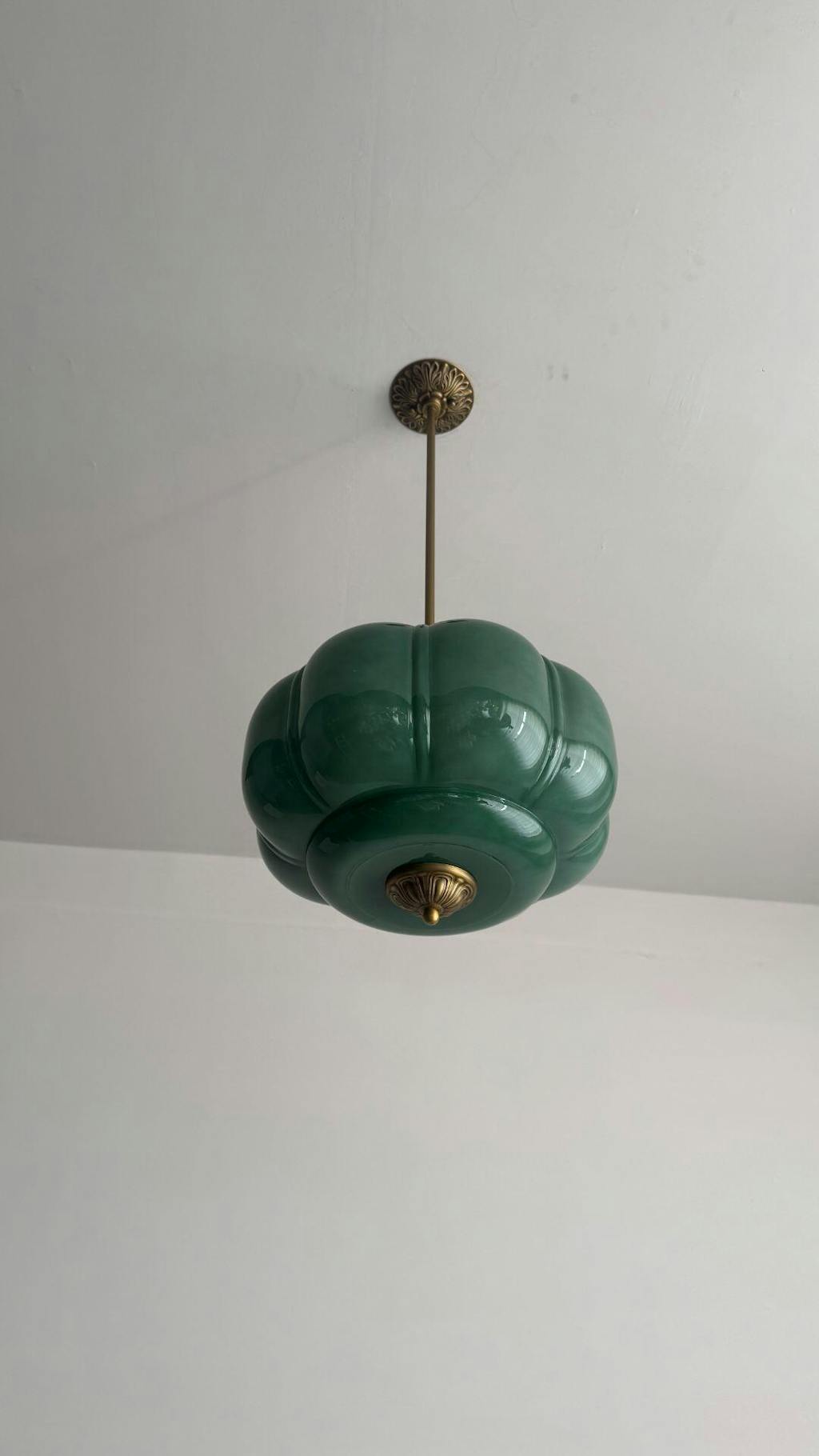 The Maravine Ceiling Lamp blends vintage artistry with timeless grace. Its sculpted glass shade—reminiscent of rippling jade—radiates a soft, luminous glow that transforms any space into a scene of quiet sophistication. Accented with intricately detailed brass fittings, the lamp celebrates the harmony between craftsmanship and form, evoking the elegance of old-world interiors reimagined for the modern home.