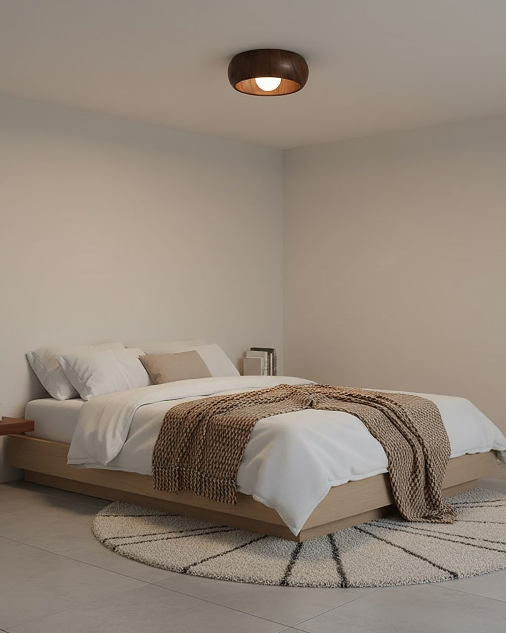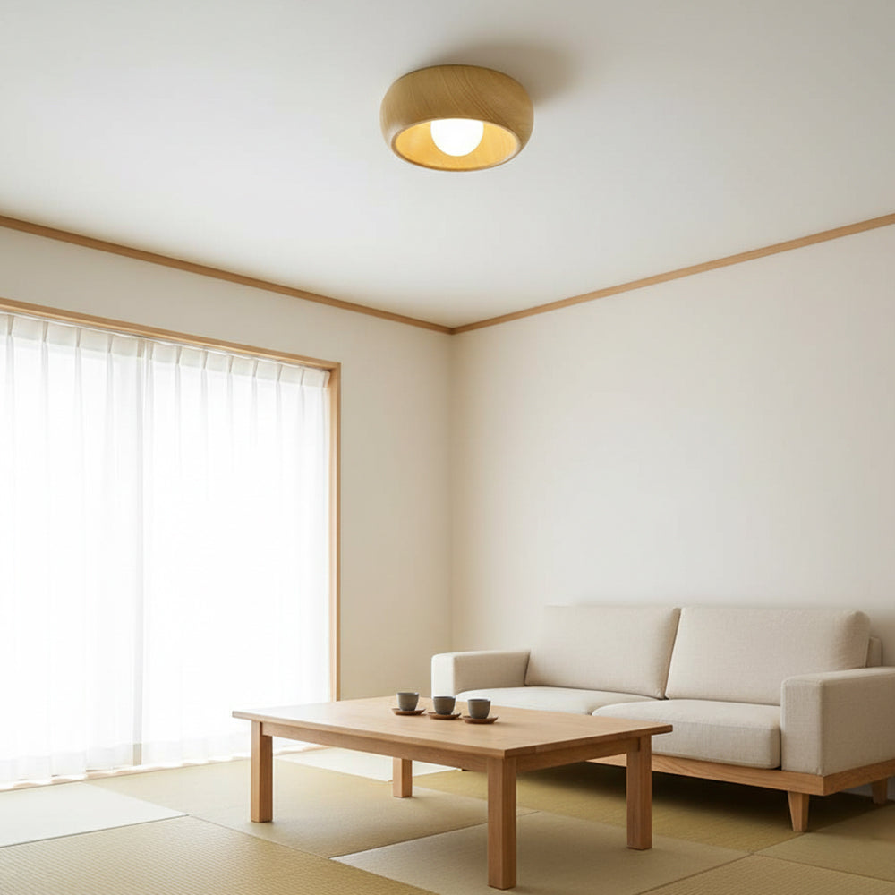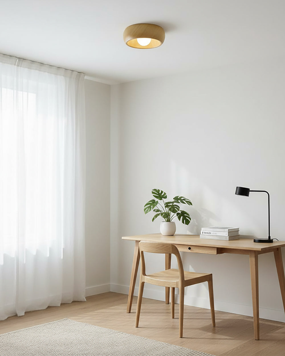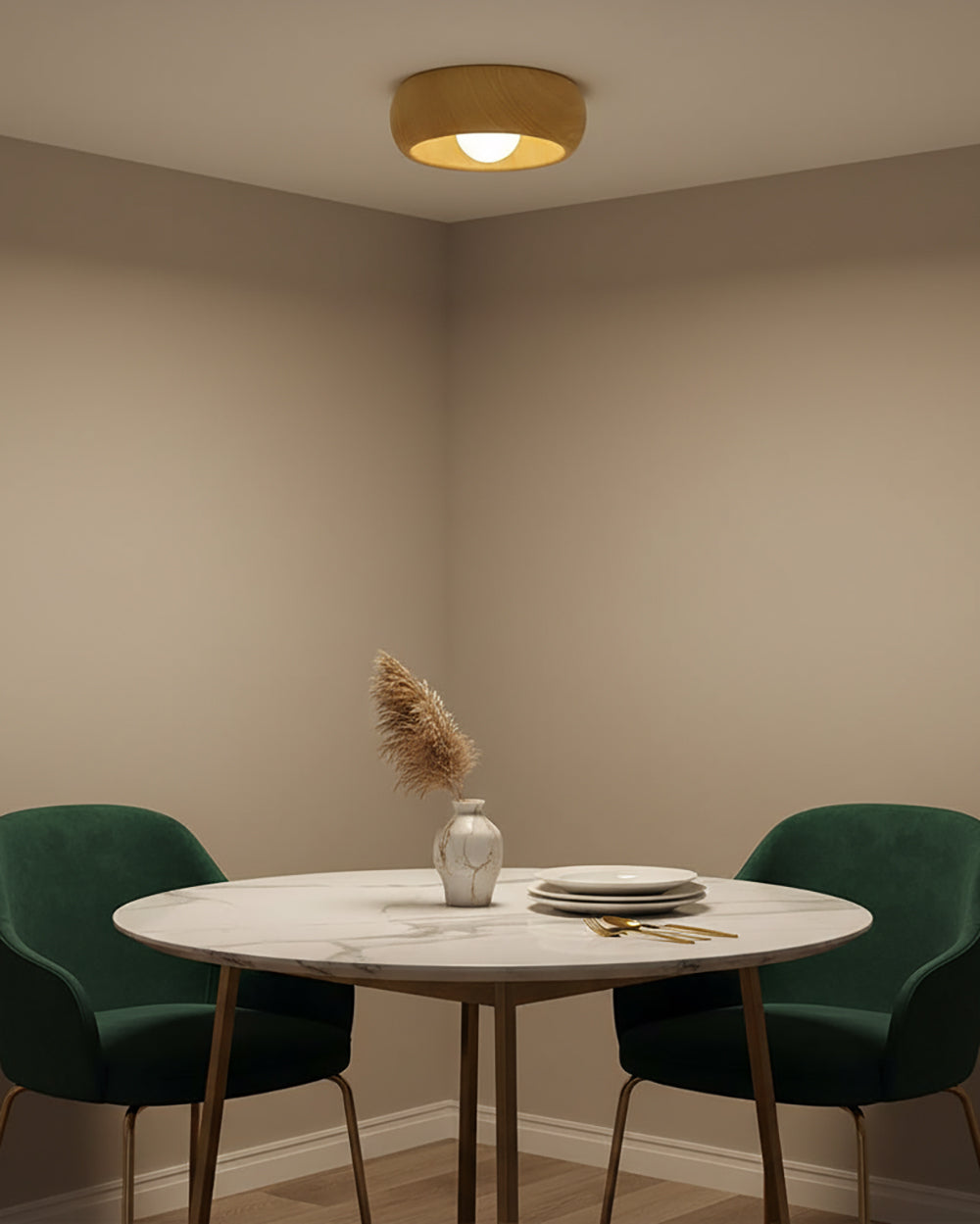 The Zuwa Ceiling Light showcases modern elegance with its advanced iron art water transfer printing technology, creating a realistic wood-like finish in Walnut and natural Wood tones. Its sleek, curved design encircles the light source, providing warm and even illumination. Perfect for living rooms, bedrooms, and hallways, the Zuwa Ceiling Light combines artistic beauty with practical functionality, making it a stylish and versatile addition to any interior.