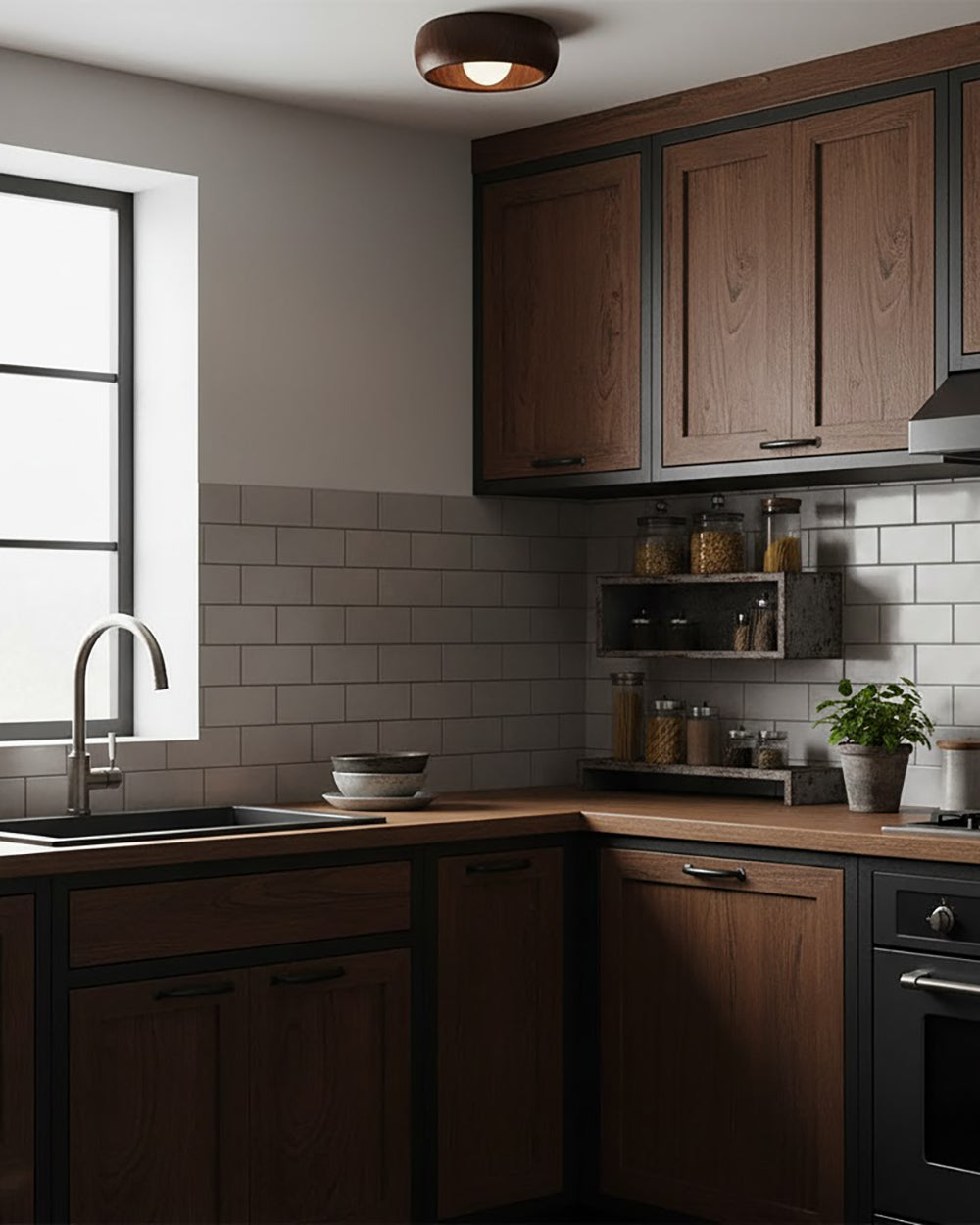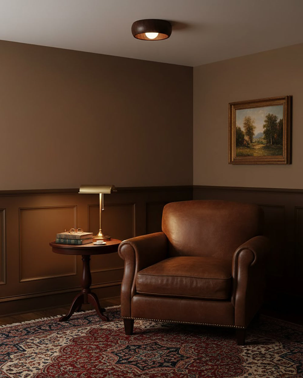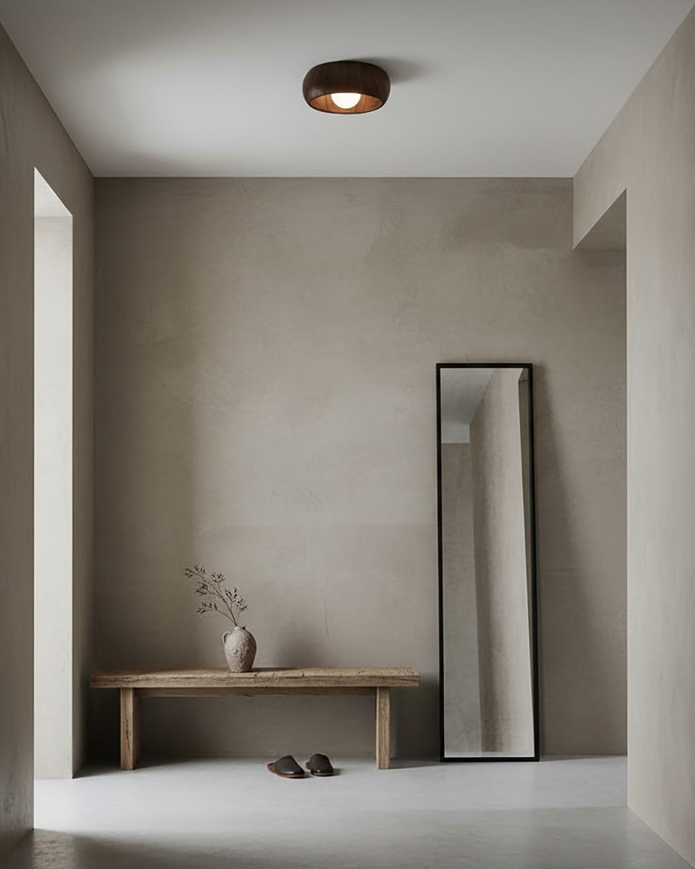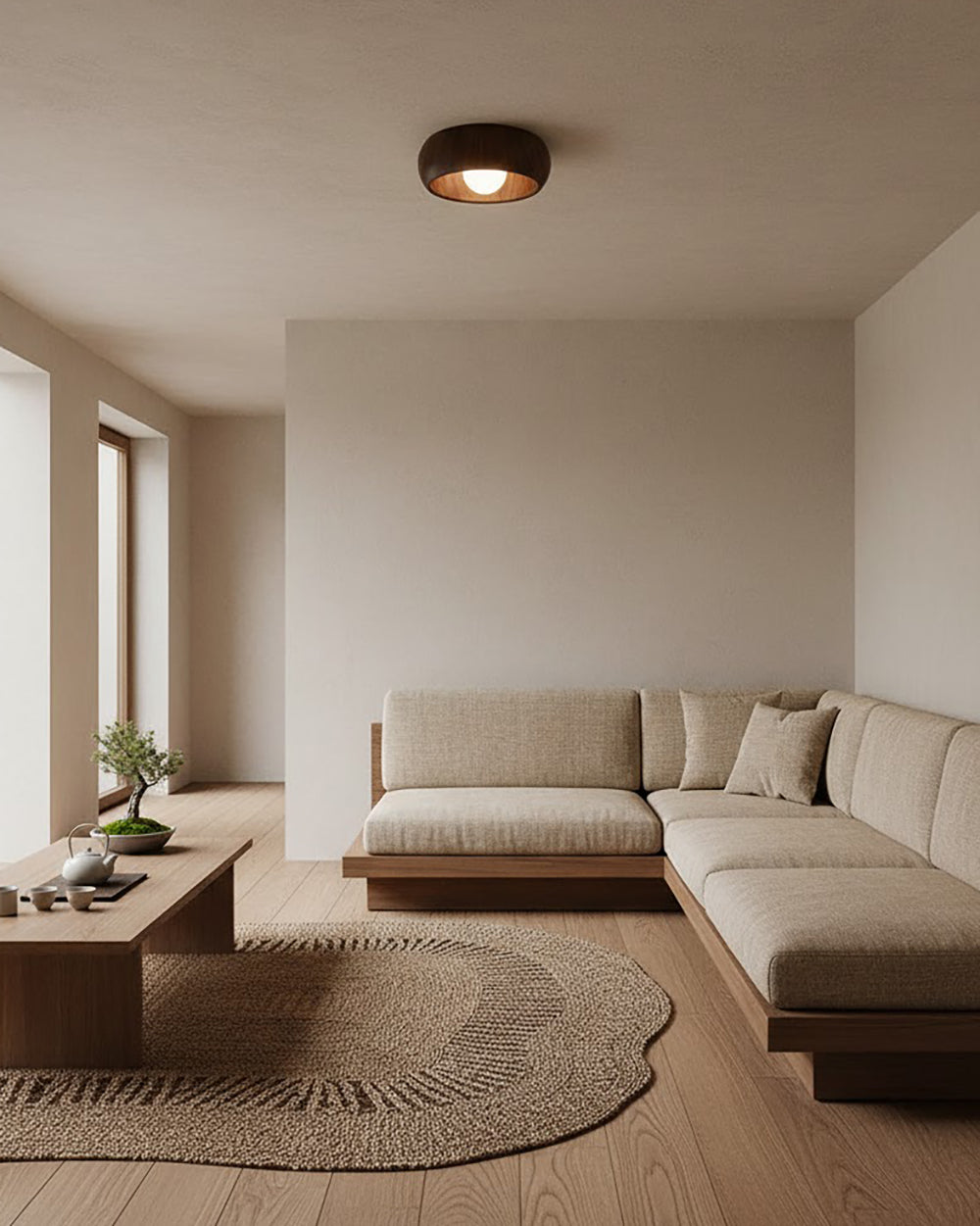 The Zuwa Ceiling Light showcases modern elegance with its advanced iron art water transfer printing technology, creating a realistic wood-like finish in Walnut and natural Wood tones. Its sleek, curved design encircles the light source, providing warm and even illumination. Perfect for living rooms, bedrooms, and hallways, the Zuwa Ceiling Light combines artistic beauty with practical functionality, making it a stylish and versatile addition to any interior.