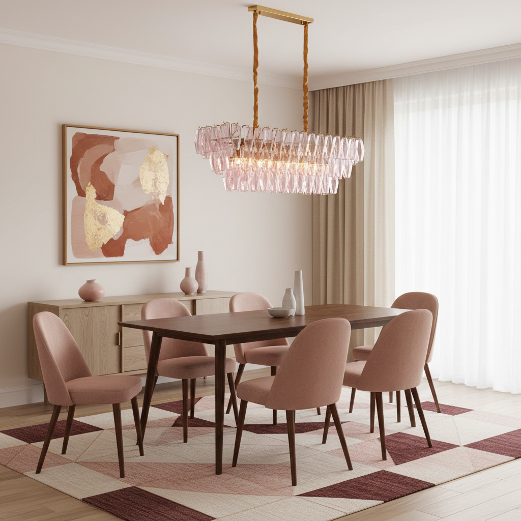 Evoking the poetry of twilight, the Lunvara Chandelier reimagines luxury with a dreamlike twist. Each piece of faceted glass, delicately tinted in soft amber or blush, is meticulously hand-hung to form a cascade of gem-like prisms that shimmer with elegance.Ideal over a dining table or in a high-ceilinged foyer, Lunvara brings radiant texture, gentle color, and quiet opulence to contemporary interiors.