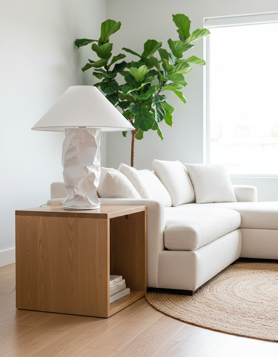 This unique table lamp beautifully blends traditional and modern design elements, combining the classic lampshade shape with contemporary aesthetics. Each shade is handcrafted in our factory, ensuring that each piece is one-of-a-kind. Made from DuPont paper, it not only provides soft, glare-free lighting but also features subtle, intentionally designed creases, adding a touch of artistry.