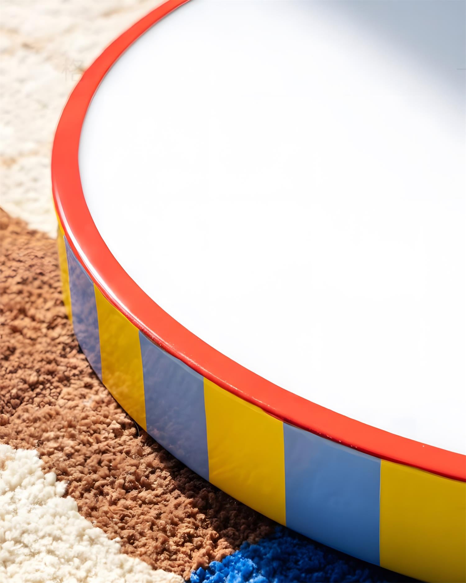 The Modulo Stripe Ceiling Lamp brings a playful architectural rhythm to the ceiling through its clean circular form and bold striped detailing. Alternating bands of color wrap the fixture like a modern graphic accent, framing a soft, evenly diffused glow that fills the room without glare. Balancing precision and personality, Modulo Stripe transforms functional lighting into a statement element—perfect for creative living spaces, dining areas, or interiors that embrace color with confidence.