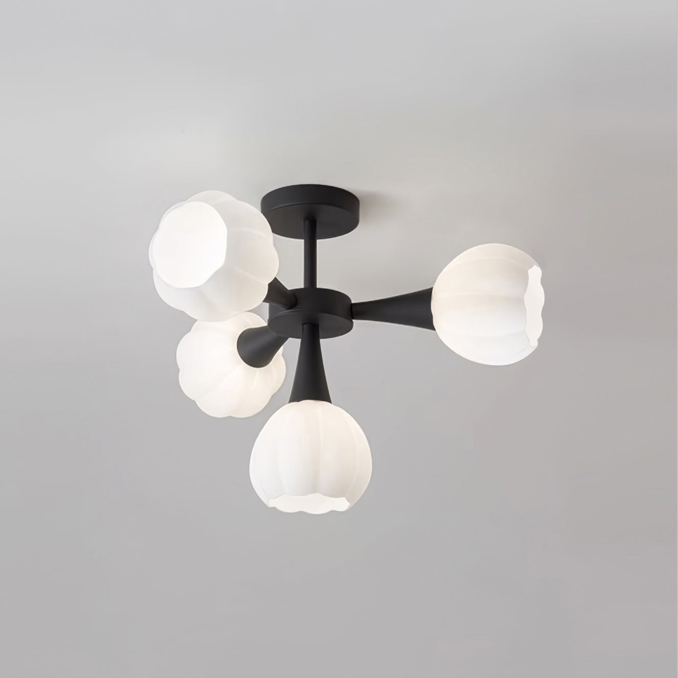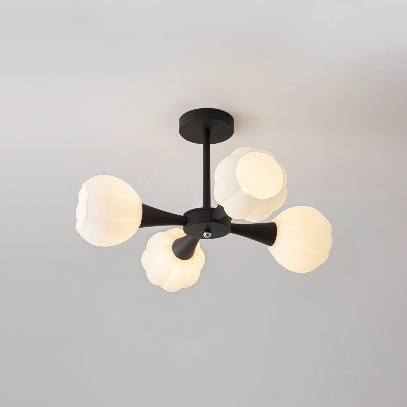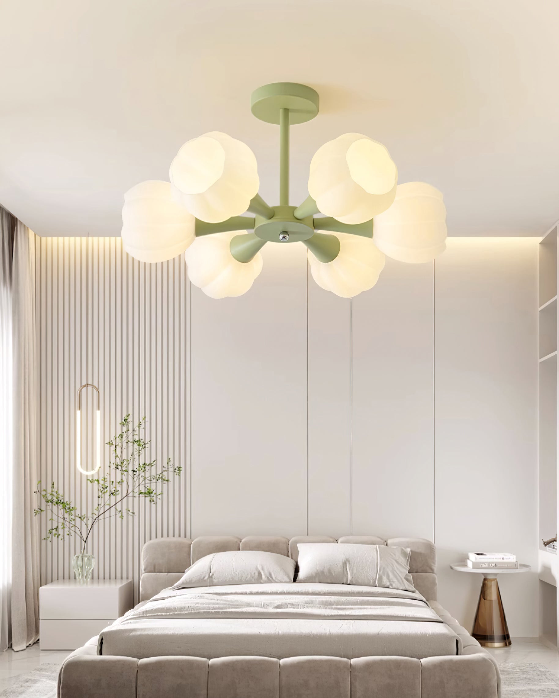 The Bethel Pumpkin Chandelier features a cast iron frame and a white glass shade, giving it a sophisticated yet rustic look. Choose between two different colors: green and black. This chandelier is sure to light up your home with its classic yet modern style.