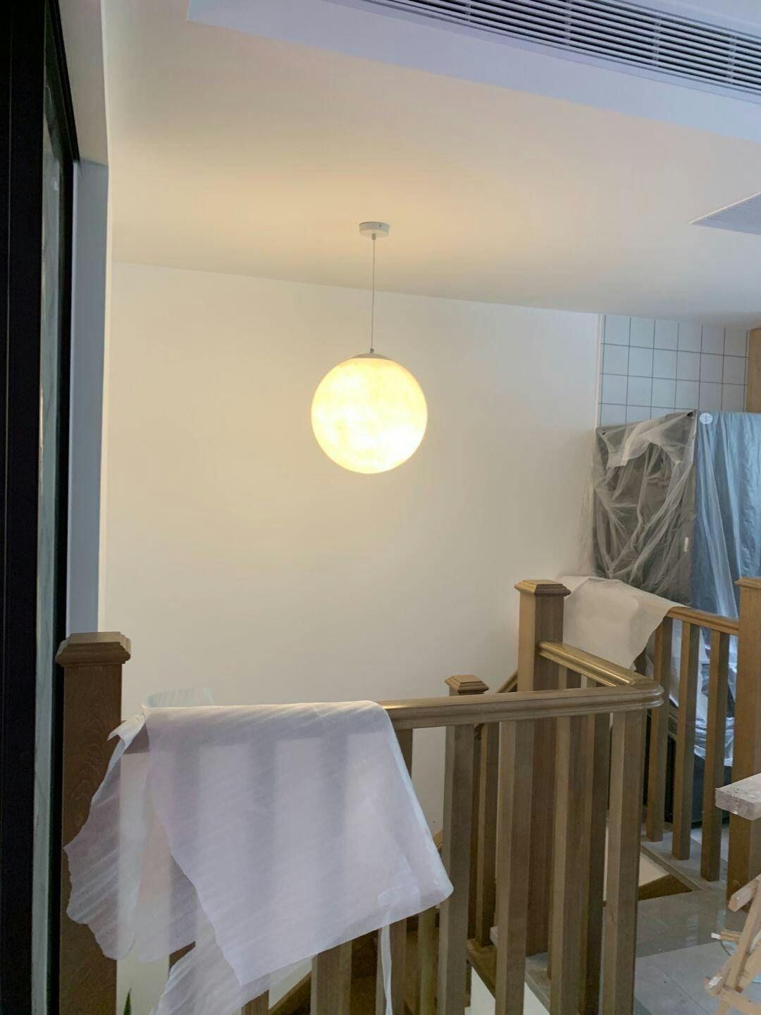 Create a unique and dreamy ambiance in any room with the Moon Pendant Lamp. Featuring a stunning, realistic sculpture of the full moon, this sophisticated piece is perfect for setting the mood for a special night, whether it's for romance or serene relaxation.