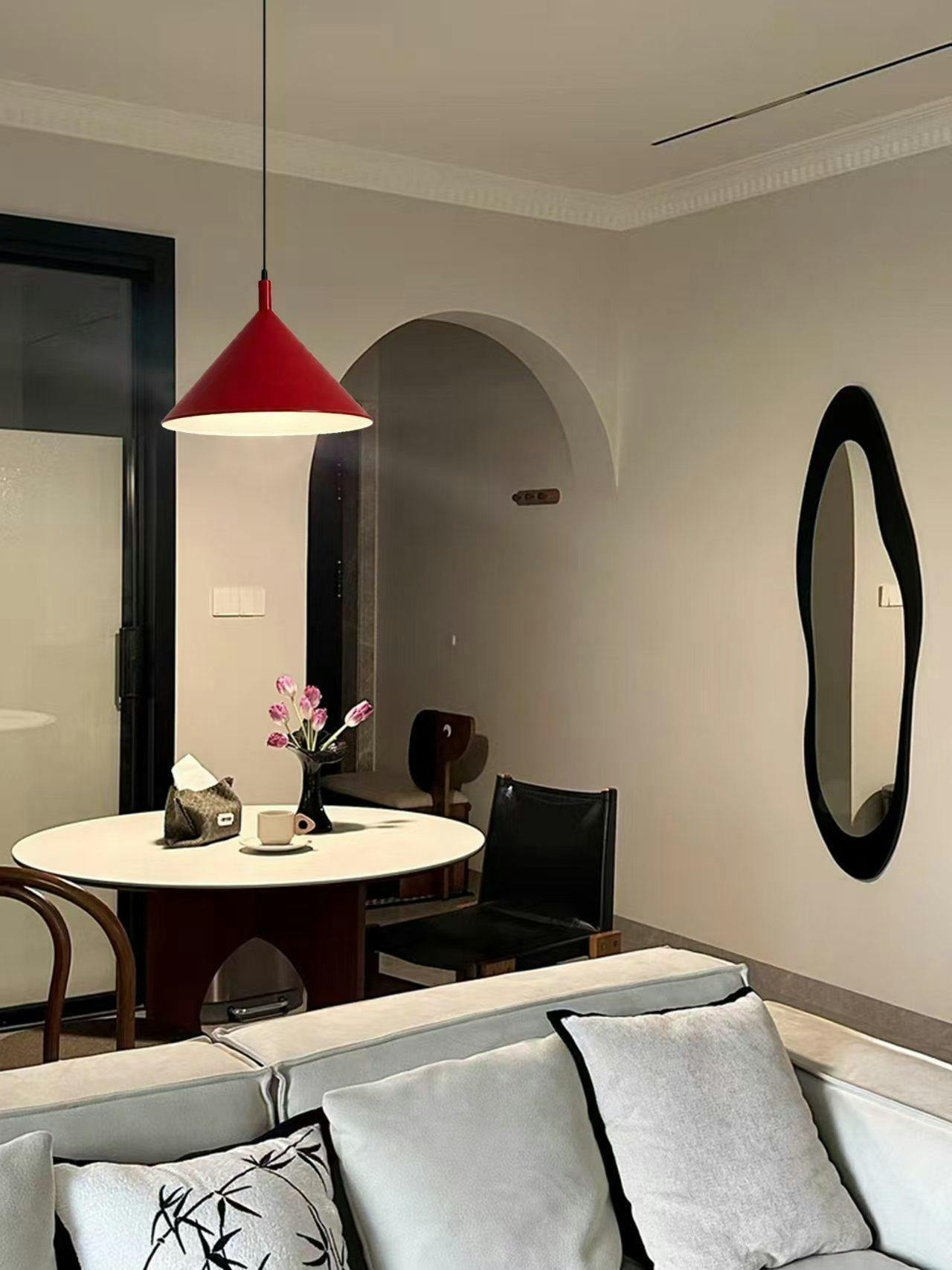 The Ruvio Pendant Lamp celebrates the essence of minimalism with its sharp geometric silhouette and bold color palette. Defined by its perfectly tapered conical shade, it offers a clean and striking presence that works as both a functional light source and a sculptural accent. The Ruvio Lamp brings a modern clarity to dining spaces, kitchens, and creative interiors.