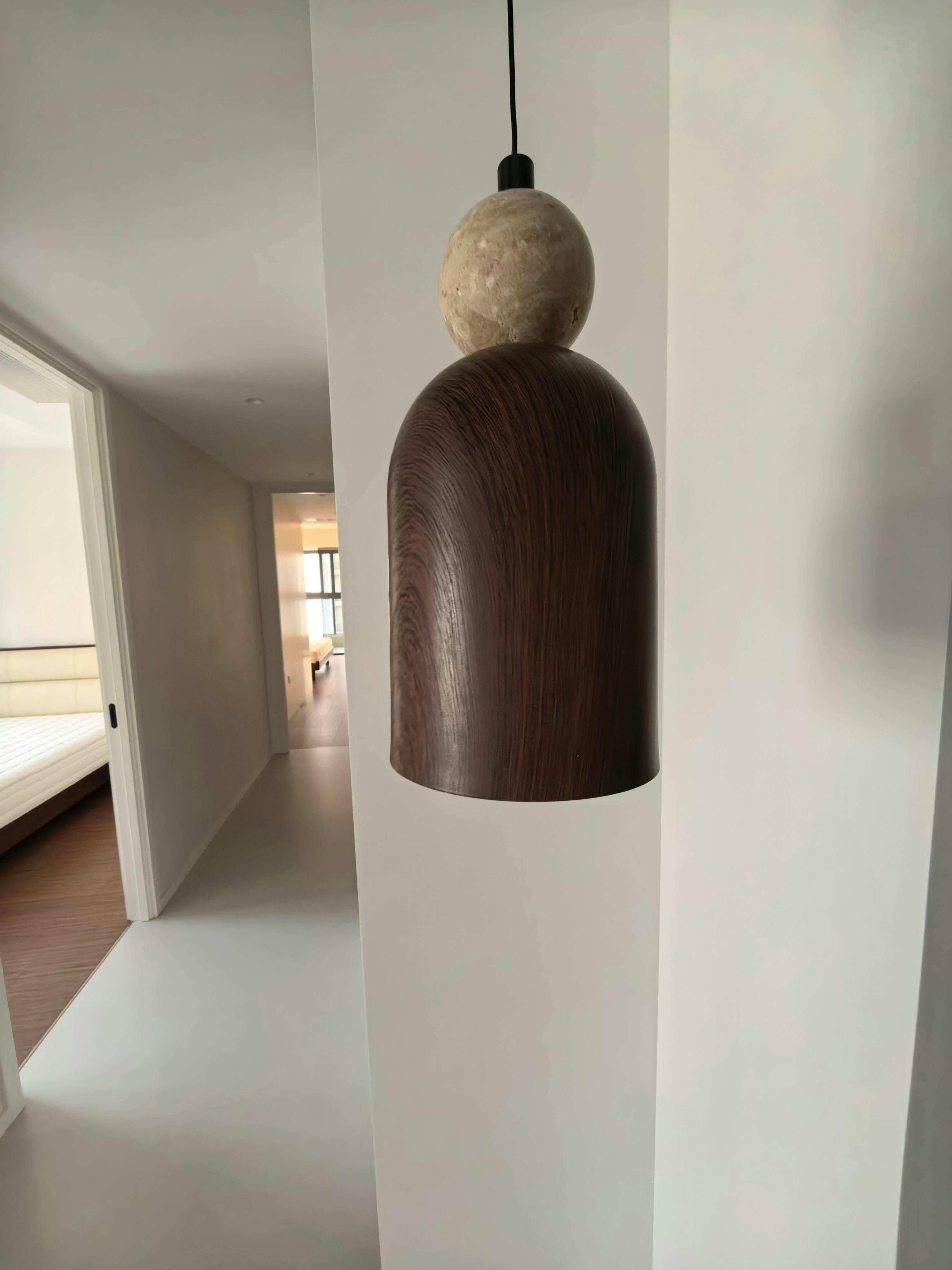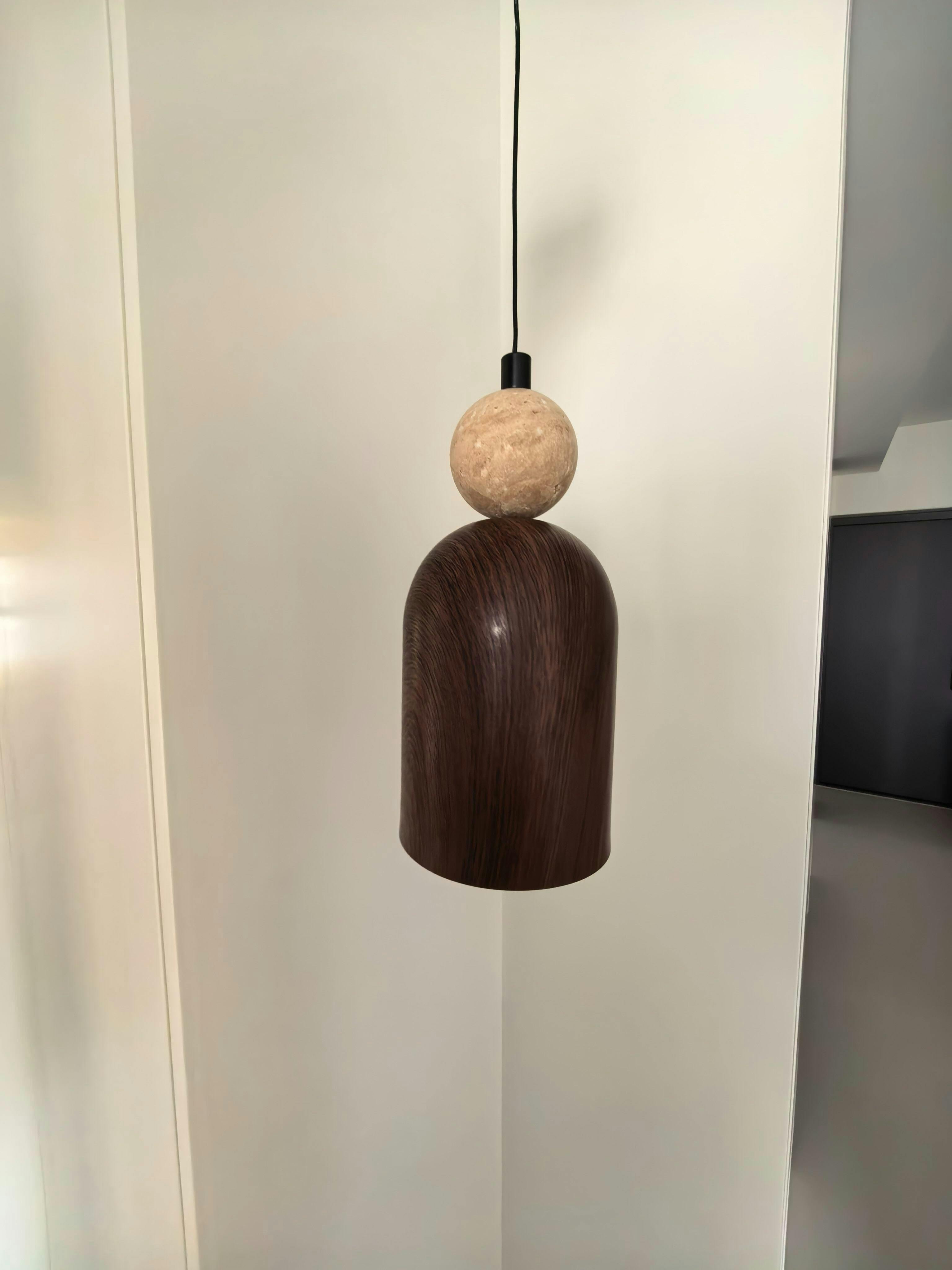 The Somira Pendant Lamp embraces minimal geometry as its core design language, where the curves and straight lines of the metal shade reveal a restrained elegance in the play of light and shadow. Paired with a natural stone sphere at the top, it brings a sense of warmth and balance to the composition. Whether displayed as a single piece or arranged in a cluster, it infuses the space with a modern yet artistic atmosphere—subtle, yet full of presence.