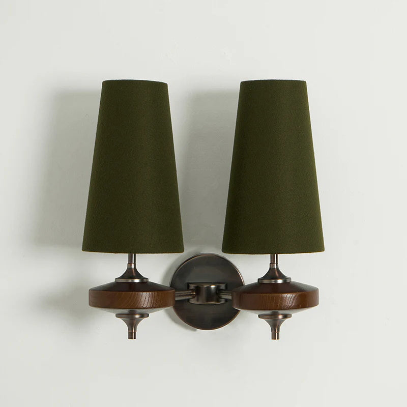 The Montera Wall Lamp embodies refined minimalism with a touch of classic warmth. Its elongated conical fabric shade, available in rich green, bold red, or timeless white, rests on a bronze-finished base that brings a sense of balance and sophistication. Combining understated charm with versatile style, the Montera Wall Lamp seamlessly bridges modern simplicity and traditional grace.