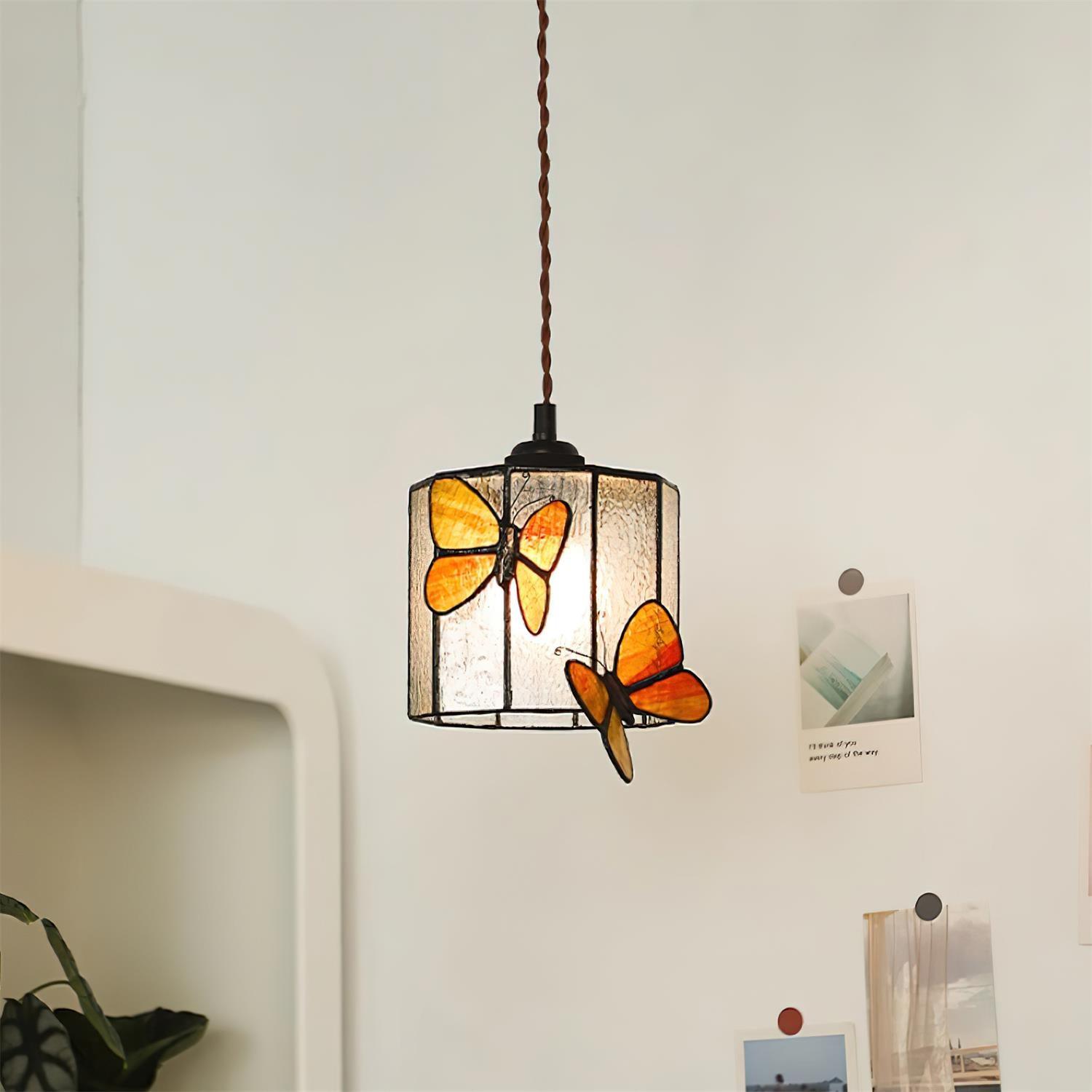 Die Briandy Tiffany-Hängelampe verleiht modernen Innenräumen einen Vintage-Touch. Mit ihrem Buntglas im Tiffany-Stil bietet die Hängelampe sowohl künstlerischen Reiz als auch funktionale Beleuchtung. Das leuchtende Glas filtert weiches Licht und erzeugt einen wunderschönen Farbton, der jedem Raum Tiefe und Farbe verleiht. Das Design integriert nahtlos geometrische Formen mit zarten Schmetterlingselementen und ist damit perfekt für diejenigen, die sowohl Natur als auch modernes Design schätzen.