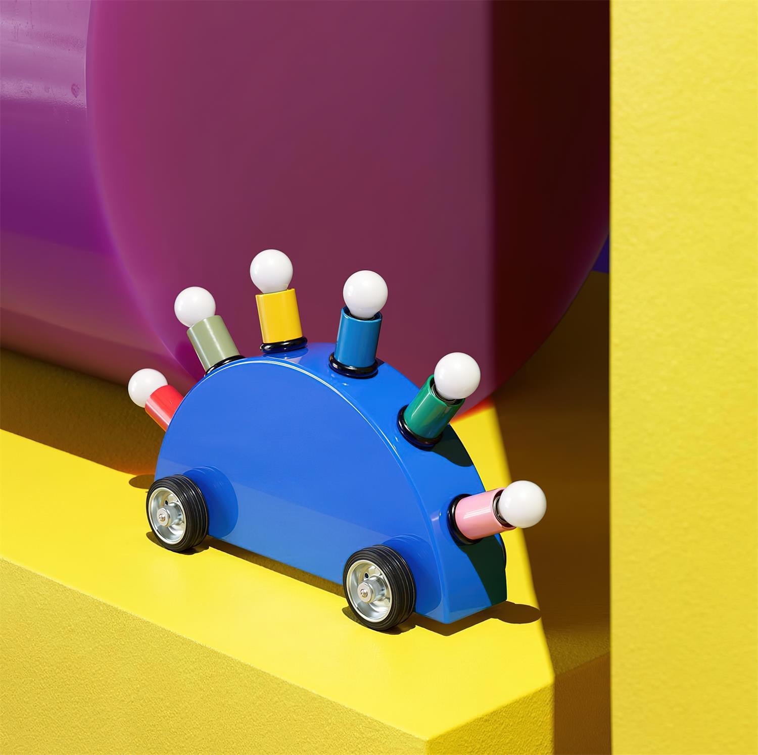 Die Cartoon-Auto-Tischlampe ist nicht nur eine Lichtquelle, sondern ein skurriles Kunstwerk. Diese Tischlampe hat die Form eines lebendigen Autos und ähnelt einem kleinen Regenbogen in Bewegung, der Freude und Energie in jeden Raum bringt. Ihr farbenfrohes, gewölbtes Design, ergänzt durch mehrfarbige Glühbirnen, erhellt jeden Raum mit einem Gefühl von Spaß.
