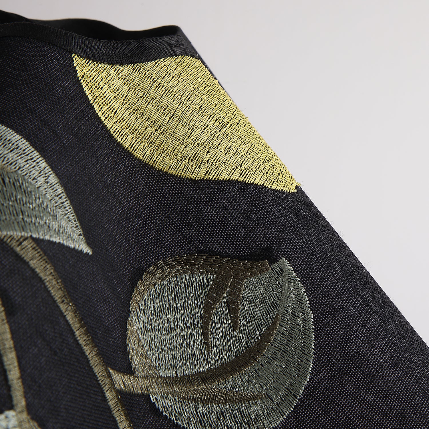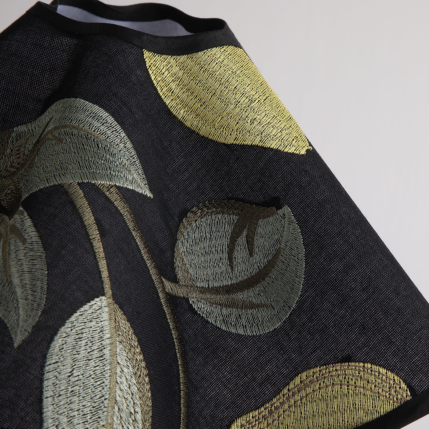 The Zerina Table Lamp is a poetic blend of natural warmth and artistic detail, featuring a smooth wooden sphere base crowned with a fabric shade embroidered in delicate floral and leaf motifs. Its flowing silhouette and soft light create a sense of intimacy and charm, making it both a decorative statement and a comforting presence on any table, desk, or bedside.