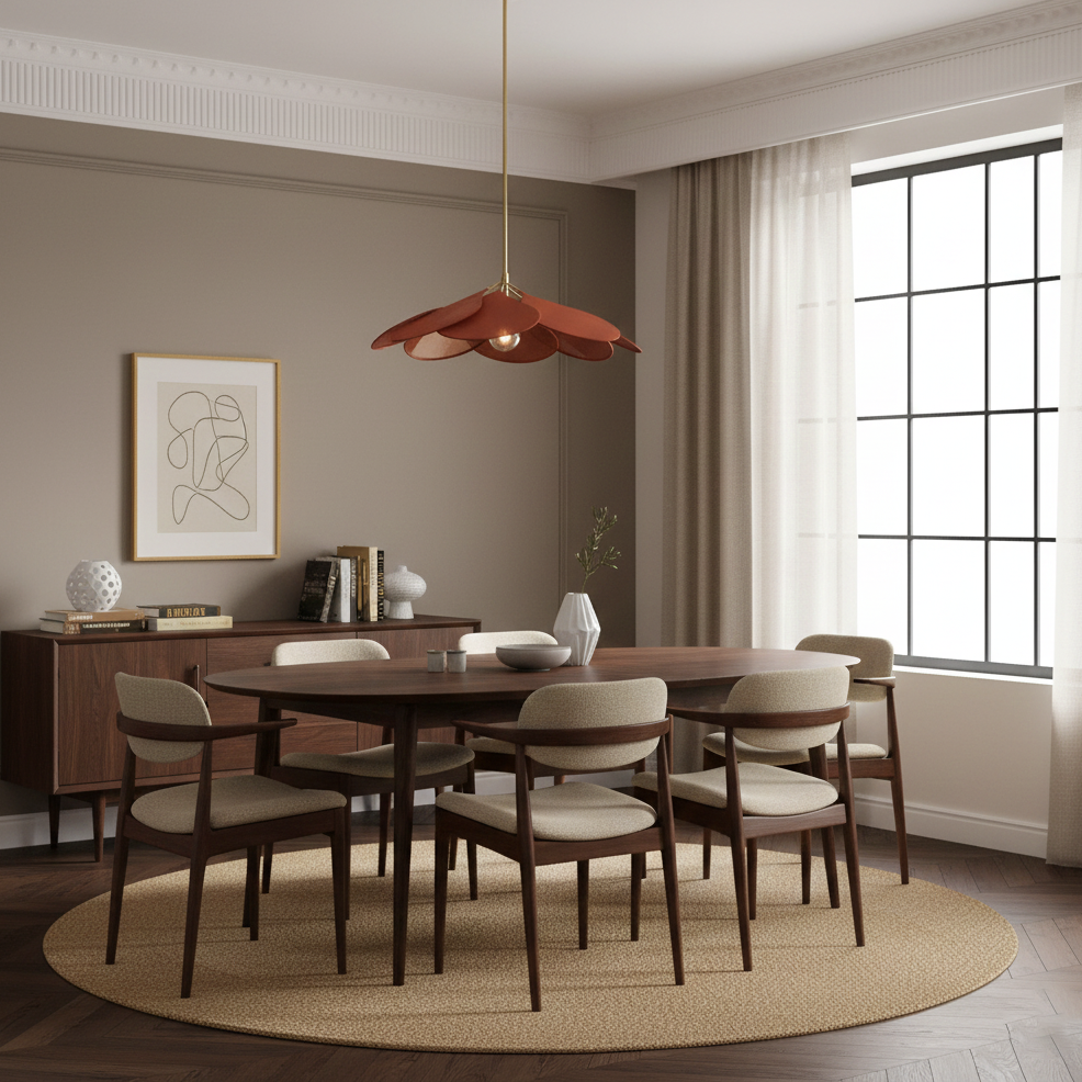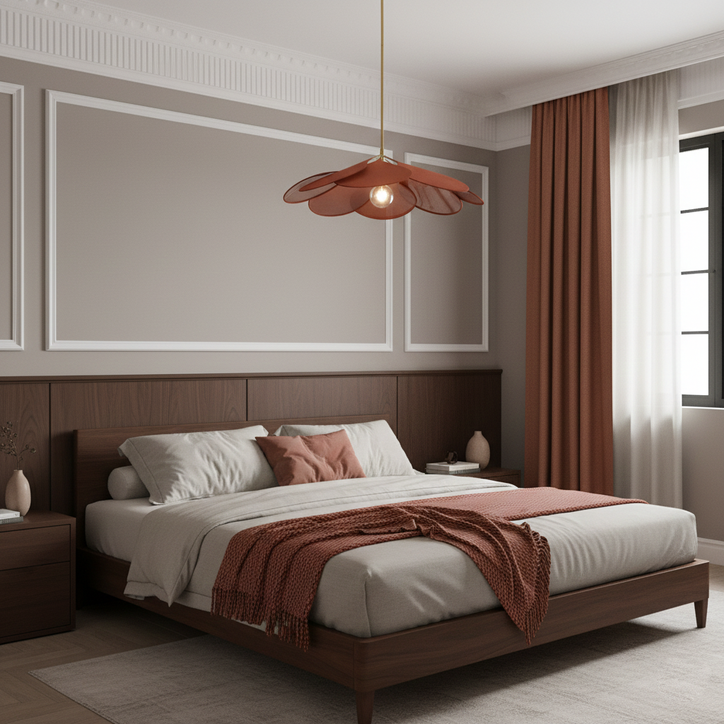 Die Pendelleuchte Cosmo Petals verleiht jedem Raum eine luxuriöse Note. Ihre einzigartige Mischung aus poliertem Messing und Stoff erzeugt eine luftige, florale Silhouette und verschönert Ihr Zuhause mit sanfter, gedämpfter Klarheit und zarten Schatten. Ihr retro-inspiriertes, tropfenförmiges Blütenblatt weckt geflüsterte Erinnerungen an Schlafzimmer mit Lamellen und sorgt für eine elegante und exklusive Atmosphäre.
